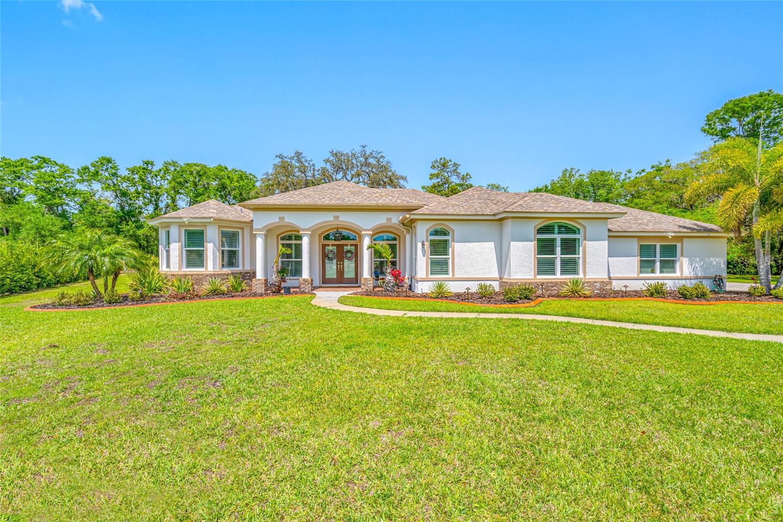 Welcome home to your HGTV Dream Home in the VERY EXCLUSIVE Moss Branch Acres community! SERENE views of MOTHER NATURE (including deer), from this EXCEPTIONAL EXECUTIVE home, with UPGRADES GALORE, nestled on a PREMIUM lot OVER ONE ACRE on a CUL-DE-SAC with NO CDD, LOW HOA (only $500/year) and A-Rated schools! Immediately notice the GORGEOUS curb appeal, MANICURED landscaping with lighting, LONG driveway, and true 3-CAR GARAGE. This home is IMPECCABLY maintained (IMPACT RESISTANT WINDOWS, DOORS, SLIDERS, & GARAGE DOOR + Whole Attic Ductwork 2022 + Pool RESURFACED & Re-Tiled 2025)! Upon entering the MODEL-LIKE home through the BEAUTIFUL DOUBLE DOORS, be OVERWHELMED with the OPEN FLOOR PLAN + WOOD-LIKE TILE THROUGHOUT the main living areas + PLANTATION SHUTTERS + CROWN MOLDING + tons of NATURAL LIGHT. FANTASTIC OUTDOOR living space GREAT for ENTERTAINING! Splash into the AMAZING POOL with WATERFALL SPA or enjoy the SPACIOUS LANAI decorated with STUNNING PAVERS & PICTURESQUE VIEWS! DESIRABLE floorpan with 4 Bedrooms (PRIMARY SUITE includes SPA-LIKE primary bathroom with CLAW FOOT TUB, MAGAZINE-LIKE SHOWER, DUAL SINKS, WALK-IN CLOSET) + 3 FULL BATHROOMS (including a POOL BATH)! CUSTOM GOURMET eat-in kitchen has GRANITE countertops + BEAUTIFUL BACKSPLASH + RANGE HOOD + HUGE ISLAND + BREAKFAST BAR + STAINLESS STEEL appliances. Access to the HUGE lanai from the Living Room, Family Room, & Master Bedroom all through IMPACT sliders! Separate Dining Room ready for any gathering! Even the INSIDE LAUNDRY ROOM has been REMODELED (2022). Conveniently located near restaurants, shopping, and the Veterans. Schedule your private showing today!