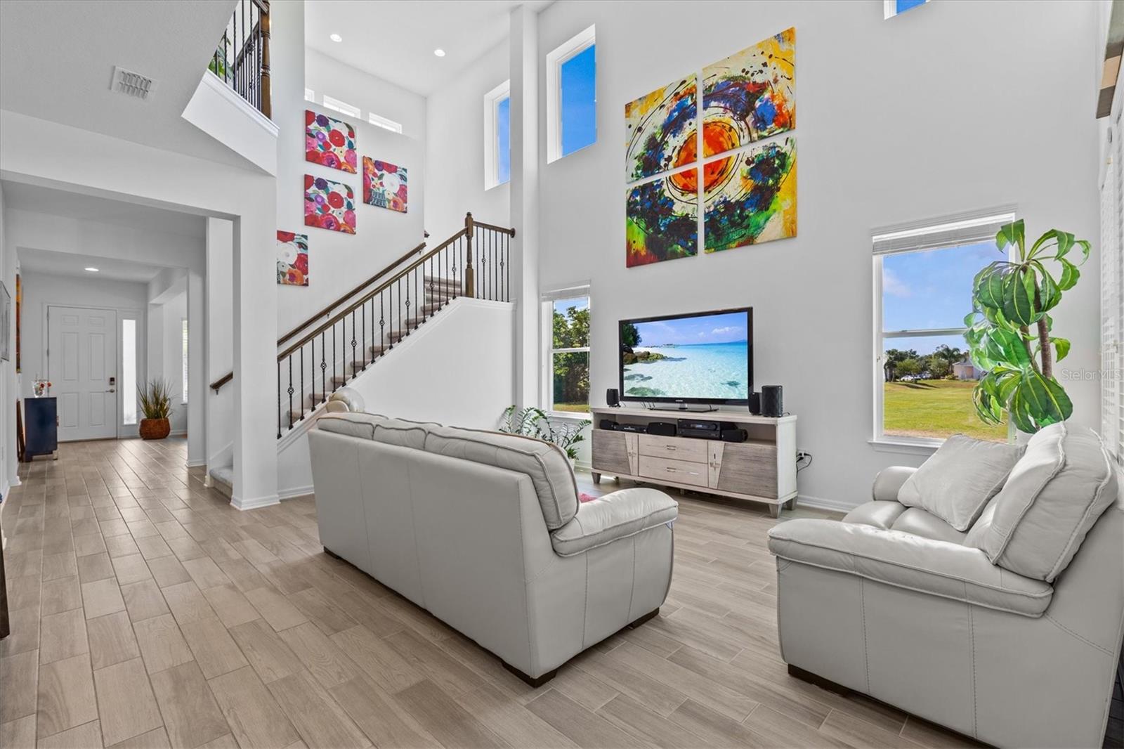 Welcome to your dream home in the heart of beautiful Tarpon Springs! This exquisite 5-bedroom, 3.5-bathroom residence offers the perfect blend of luxury, comfort, and convenience—all without the need for flood insurance. Ideally located just minutes from the pristine Gulf beaches, the iconic World Famous Sponge Docks, and the vibrant charm of downtown Tarpon Springs, this home offers an unparalleled lifestyle. Built in 2018 and nestled at the end of a tranquil cul-de-sac, this sprawling 3,388 sq ft masterpiece showcases thoughtful design and meticulous maintenance throughout. From the moment you enter, you'll be captivated by soaring ceilings and expansive windows that bathe the home in natural sunlight, creating a bright and inviting atmosphere. The open-concept floor plan is perfect for both relaxed everyday living and elegant entertaining. At the heart of the home, the gourmet chef’s kitchen is sure to impress with its sleek stainless steel appliances, oversized island with bar seating, abundant cabinetry, walk-in pantry, and seamless flow into the spacious dining and living areas. On the main level, a versatile office or flex space offers work-from-home potential, while a generously sized second primary suite or private in-law quarters features its own luxurious en-suite bath, large walk-in closet, and even a dedicated stackable washer and dryer for added independence and comfort. Upstairs, the primary suite is a private sanctuary, complete with a cozy sitting area, spa-like en-suite bathroom featuring a soaking tub and walk-in shower, a massive walk-in closet, and an expansive 300+ sq ft private balcony—perfect for sipping your morning coffee or enjoying serene Florida sunsets. The upper level also includes a flexible loft space, three additional bedrooms (each with walk-in closets), a stylish full bath, and a well-appointed laundry room for everyday convenience. Additional highlights include a 3-car garage with professionally epoxied floors, offering plenty of room for vehicles, storage, or a home workshop. Step outside to a huge covered, pavered patio, ideal for hosting gatherings or relaxing in your own private oasis. With low HOA fees, no CDD, and no flood insurance required, this property presents an exceptional value in a highly desirable area. Every inch of this home has been thoughtfully designed and lovingly maintained, offering light-filled interiors, modern updates, and timeless appeal. Don’t miss your chance to make this one-of-a-kind home yours!