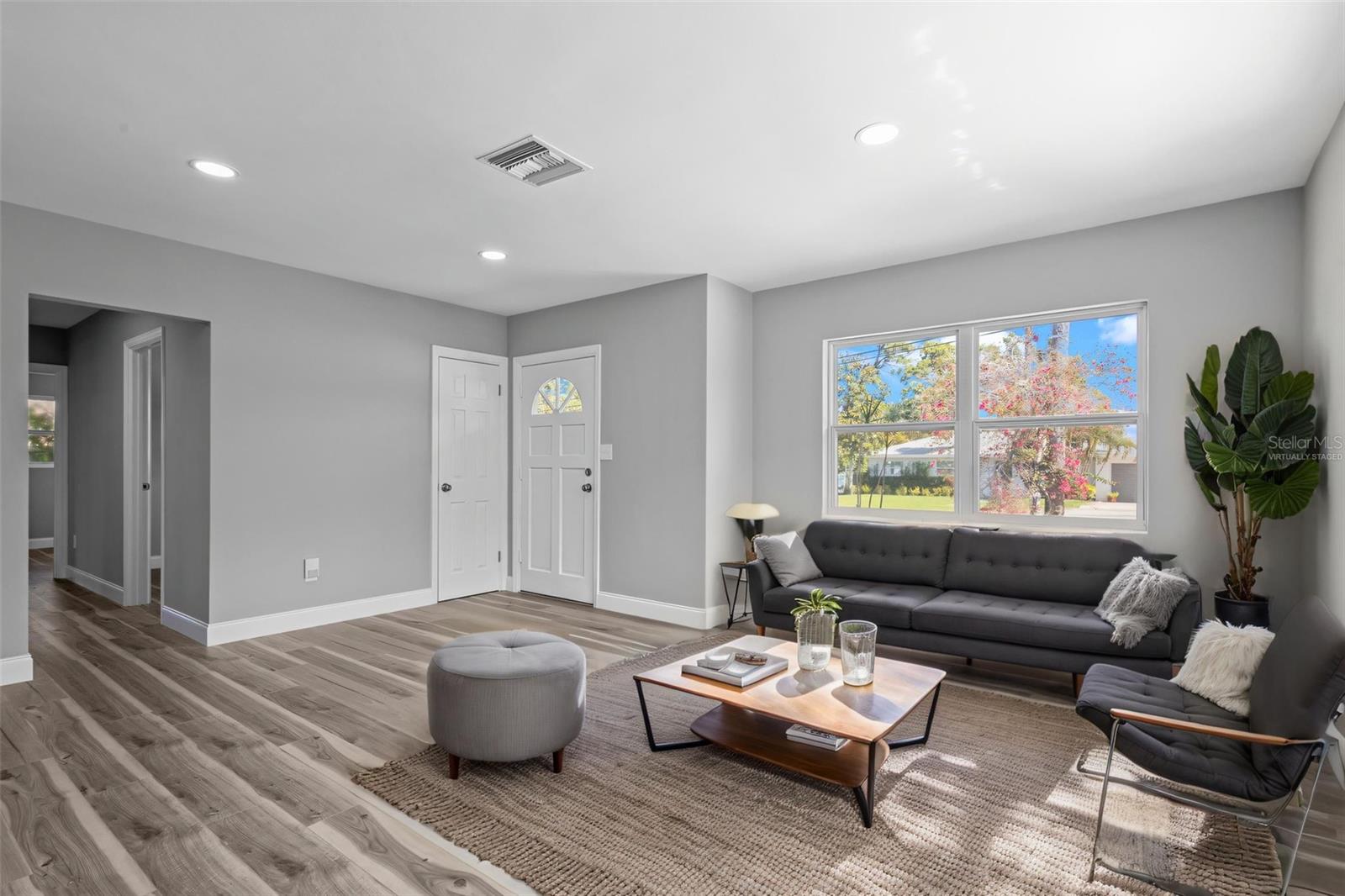 One or more photo(s) has been virtually staged. ***Price Improvement!*** Welcome to your dream home, perfectly situated in the vibrant heart of Tarpon Springs! This completely remodeled 3-bedroom, 2-bath single-family residence combines modern design with everyday comfort — offering a truly move-in ready experience. Step inside and fall in love with the open and airy layout, featuring brand-new luxury vinyl plank flooring that flows seamlessly throughout the home, beautifully complemented by elegant 5" baseboards for a fresh, stylish finish. New recessed lighting brightens the main living area, enhancing the home's spacious and inviting feel. The stunning kitchen has been fully updated with brand-new cabinetry, granite countertops, a classic subway tile backsplash, and brand-new stainless steel appliances — ready for your first home-cooked meal! Both bathrooms have been completely renovated with new vanities, designer tilework, and updated fixtures, blending modern style with everyday functionality. Curb appeal shines with fresh new grass installed in the entire front yard, while a brand-new roof adds incredible peace of mind. Located just minutes from historic downtown Tarpon Springs, the famous Sponge Docks, waterfront parks, and top-rated schools, this home offers the perfect blend of character, convenience, and the relaxed Florida lifestyle. *No flooding /damage from hurricanes , new AC and electrical panel