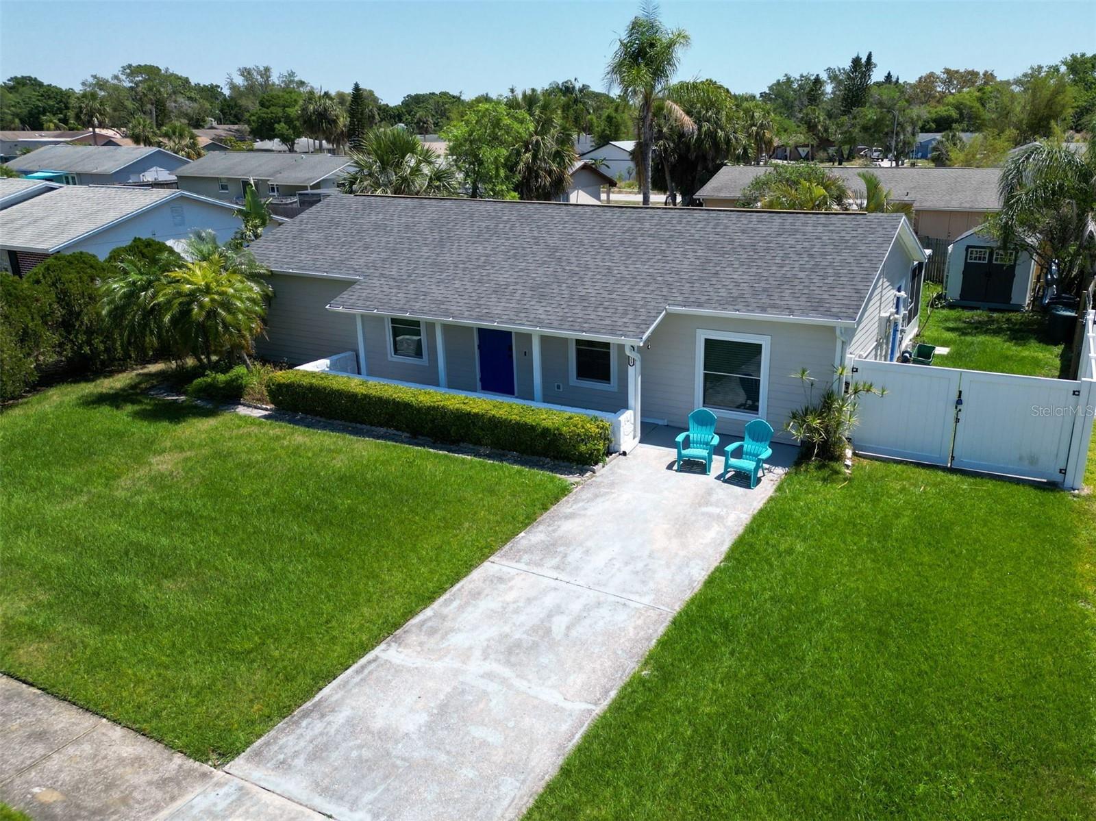 Coastal Elegance Meets Modern Convenience in Tarpon Springs! Nestled high and dry on a tranquil cul-sac and situated just over a mile from the beach, this impeccably, completely updated 3-bedroom, 2-bath home perfectly combines style, functionality, and location. Revel in modern enhancements throughout, including new impact-resistant windows and doors, durable Hardie board siding, net metering solar panels, an upgraded electrical panel, and an EV charger, ensuring both energy efficiency and peace of mind. The home features no carpeting, boasting new porcelain tile throughout. The fully renovated kitchen includes new appliances, new ceiling-height cabinets, and a reverse osmosis system. The hallway bathroom offers a luxurious soaking tub, while the spacious laundry provides ample storage, complemented by a new washer, dryer and water heater. Outdoor living is made effortless with a spacious screened tiled lanai, with an open-air paver patio ideal for entertaining or relaxing. The spacious side yard has a 12 ft gate offering ample room for parking an RV, boat, or electric vehicle. The additional exterior features include a fully fenced rear yard, new irrigation system and well for landscaping, a new gutter system, and a sturdy shed with new straps. This turnkey property delivers everything needed for convenient, eco-friendly living. Tarpon Springs is a charming coastal city known for its rich heritage, historic sponge docks, and vibrant waterfront. Located along the Gulf of Mexico, it offers a unique blend of culture, cuisine, and natural beauty. Visitors and residents alike enjoy many festivals, concerts and strolling through the quaint, historic downtown, exploring, restaurants, art galleries and antique shops. With its scenic beaches, warm climate, and strong sense of community, Tarpon Springs is a distinctive destination full of character and coastal charm.
