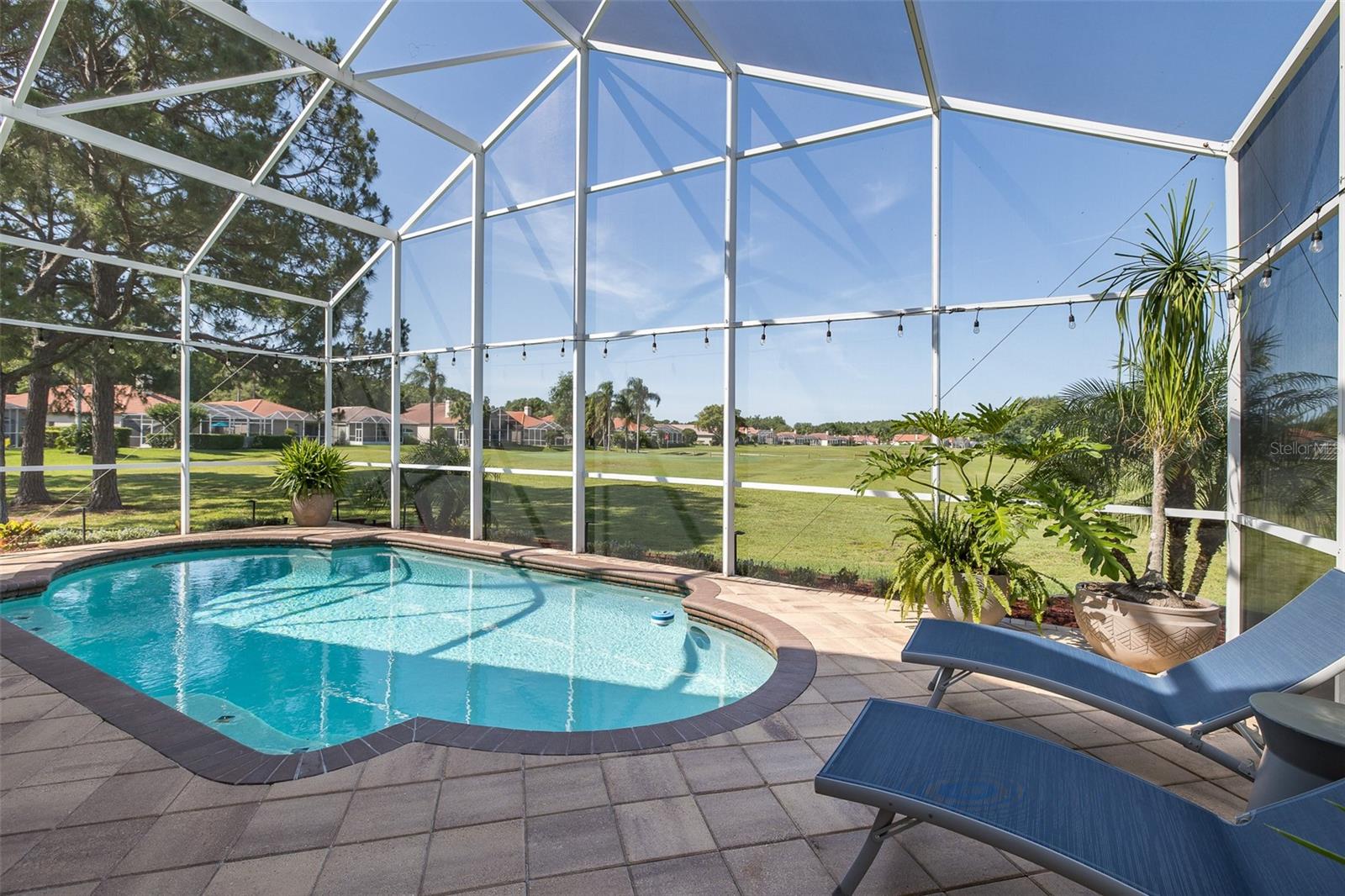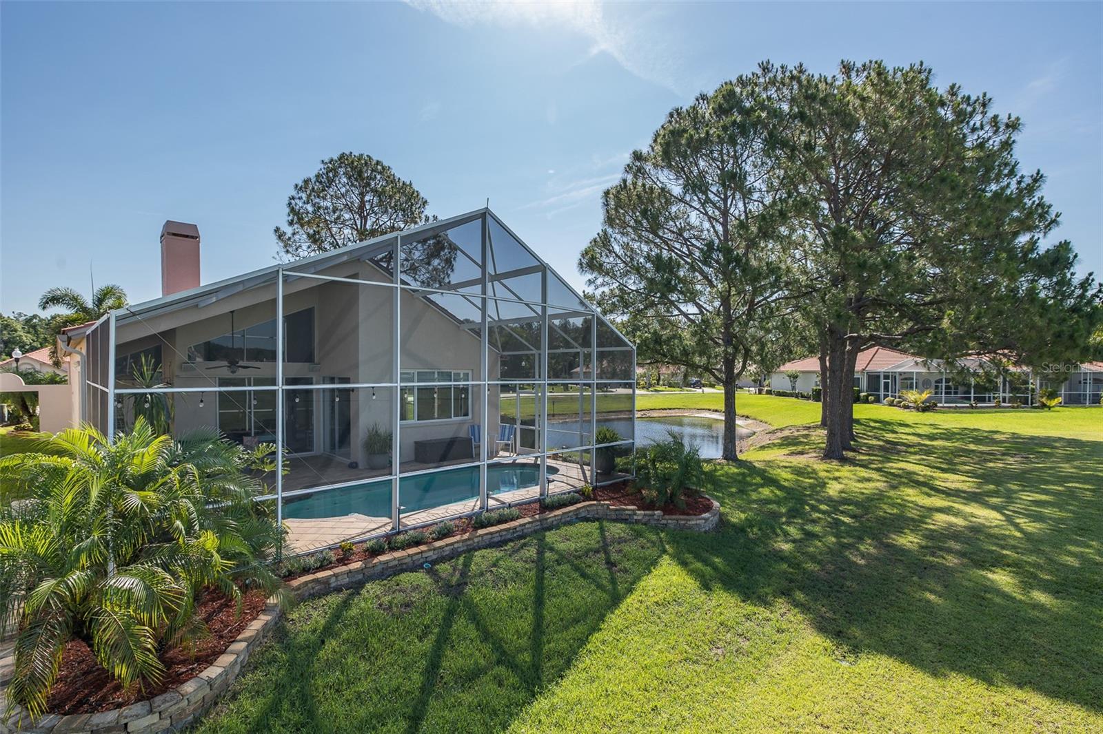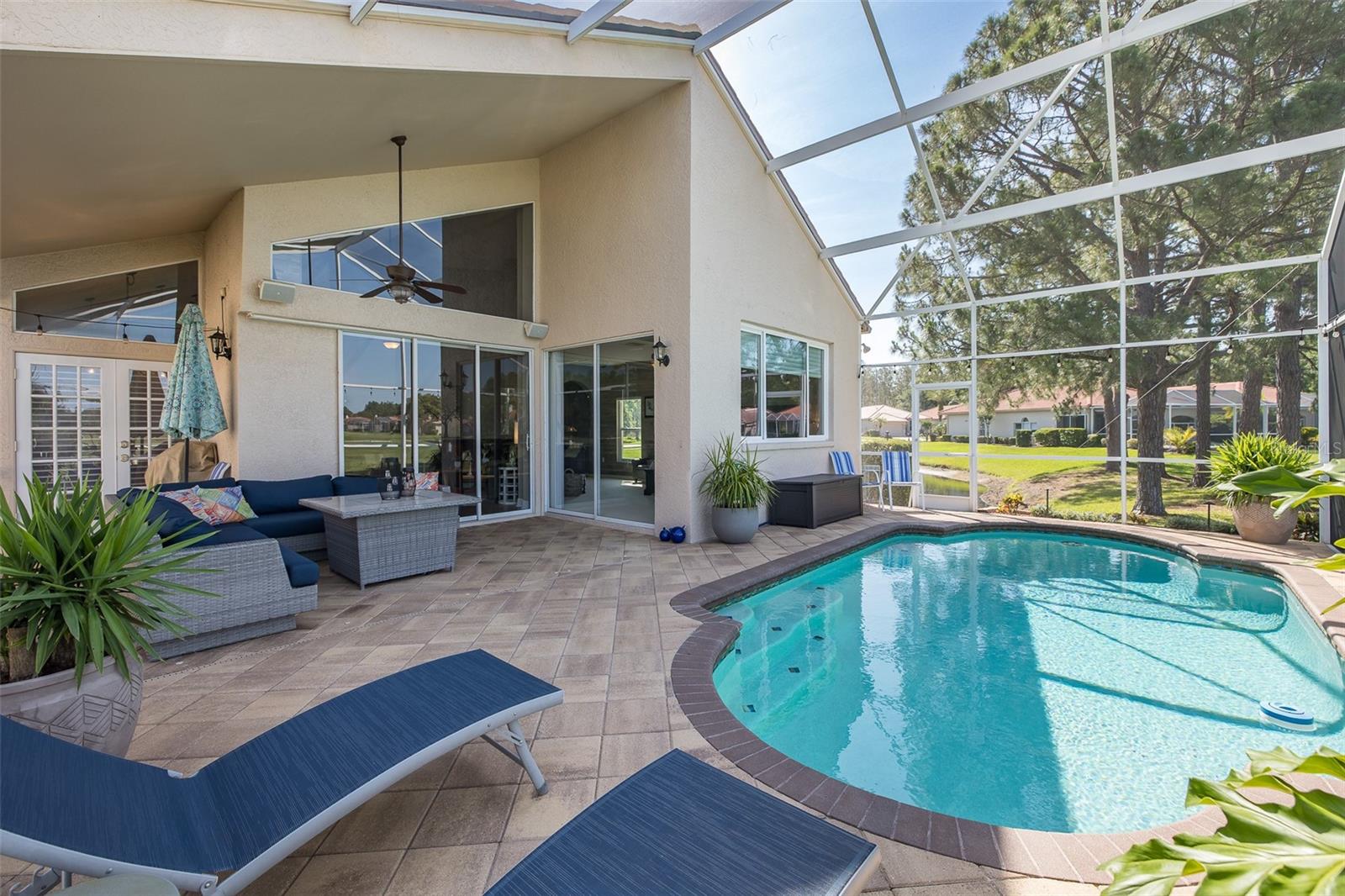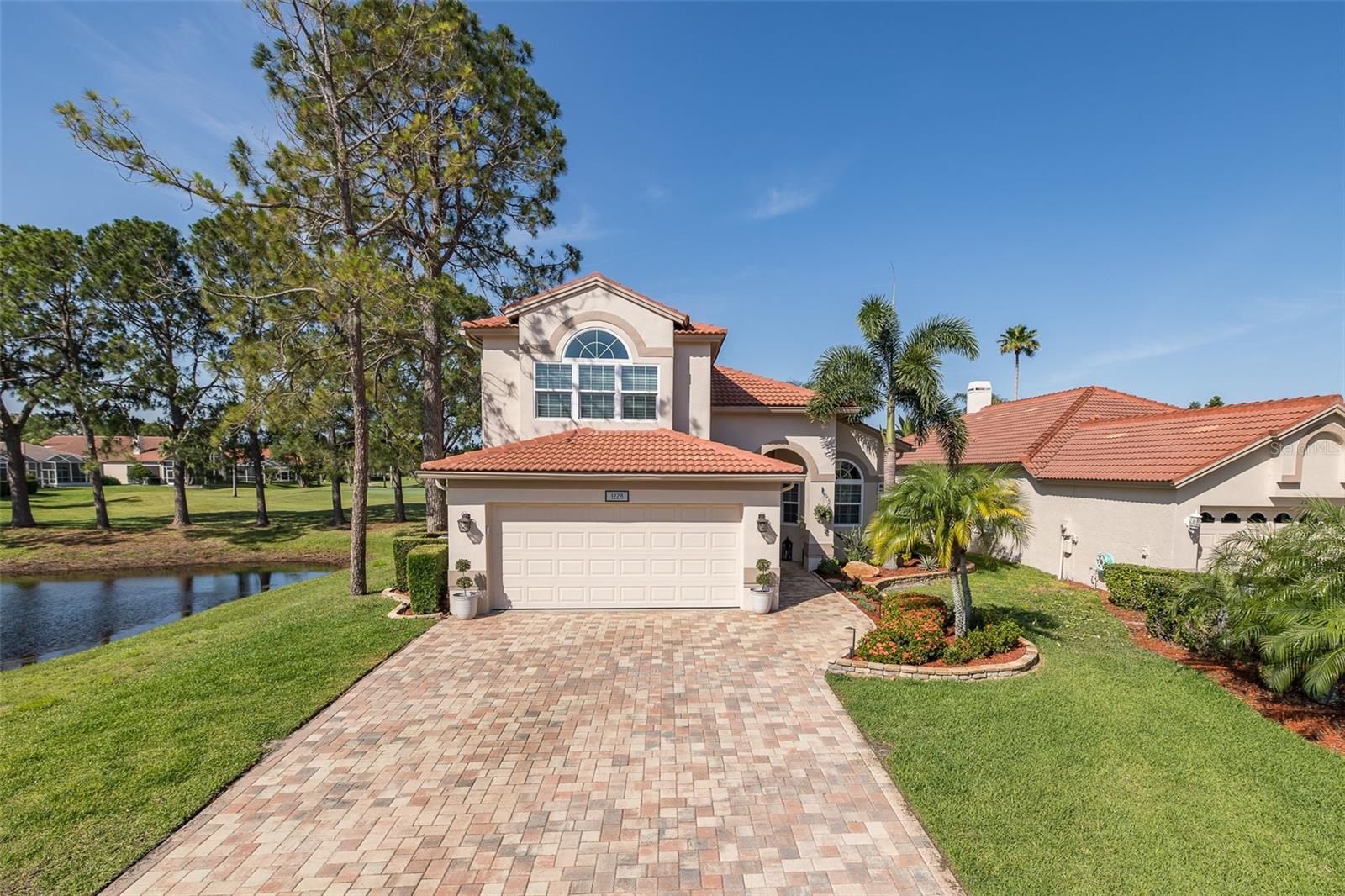 Under contract-accepting backup offers. STUNNING says it all! Luxury maintenance free single family home with 3 true bedrooms, 2 1/2 bathrooms, heated pool plus breathtaking, panoramic views of the golf course, pond and sunsets. Garage Door 2022, New TILE ROOF 2015, New 15+ seer variable speed A/C 2016 in addition to New Windows 2010 make this home energy efficient! Complete kitchen remodel offers an open concept floor plan with a double island, Jenn-Air stainless steel appliances, custom wood cabinetry and granite countertops all overlooking the great room with a focal point being the remodeled wood burning fireplace. Breakfast nook off of the kitchen offers french doors to the lanai grilling area. A separate formal dining room is great for entertaining (currently being used as office). Brand new Luxury Vinyl flooring through-out. The first-floor master suite is completely remodeled and offers a walk-in closet with custom organizers, walk-in shower, dual vanity, wood cabinets and granite countertops. Relax on the expansive lanai with brick pavers, screen enclosure and great views. Electric and manual shades compliment the windows and sliding doors in this home adding privacy while preserving the views. The large first-floor laundry room has a utility sink, granite folding shelf and cabinetry. The maintenance fee includes painting the exterior of home, mowing lawns, watering lawns, mulch, trimming shrubbery, lawn fertilizer. An itemized list of the updates to this home is available upon request. The community offers an active Golf and Country club with a full restaurant and events, plus a Tennis Club and 24 hour manned gated guard house. A true lifestyle!