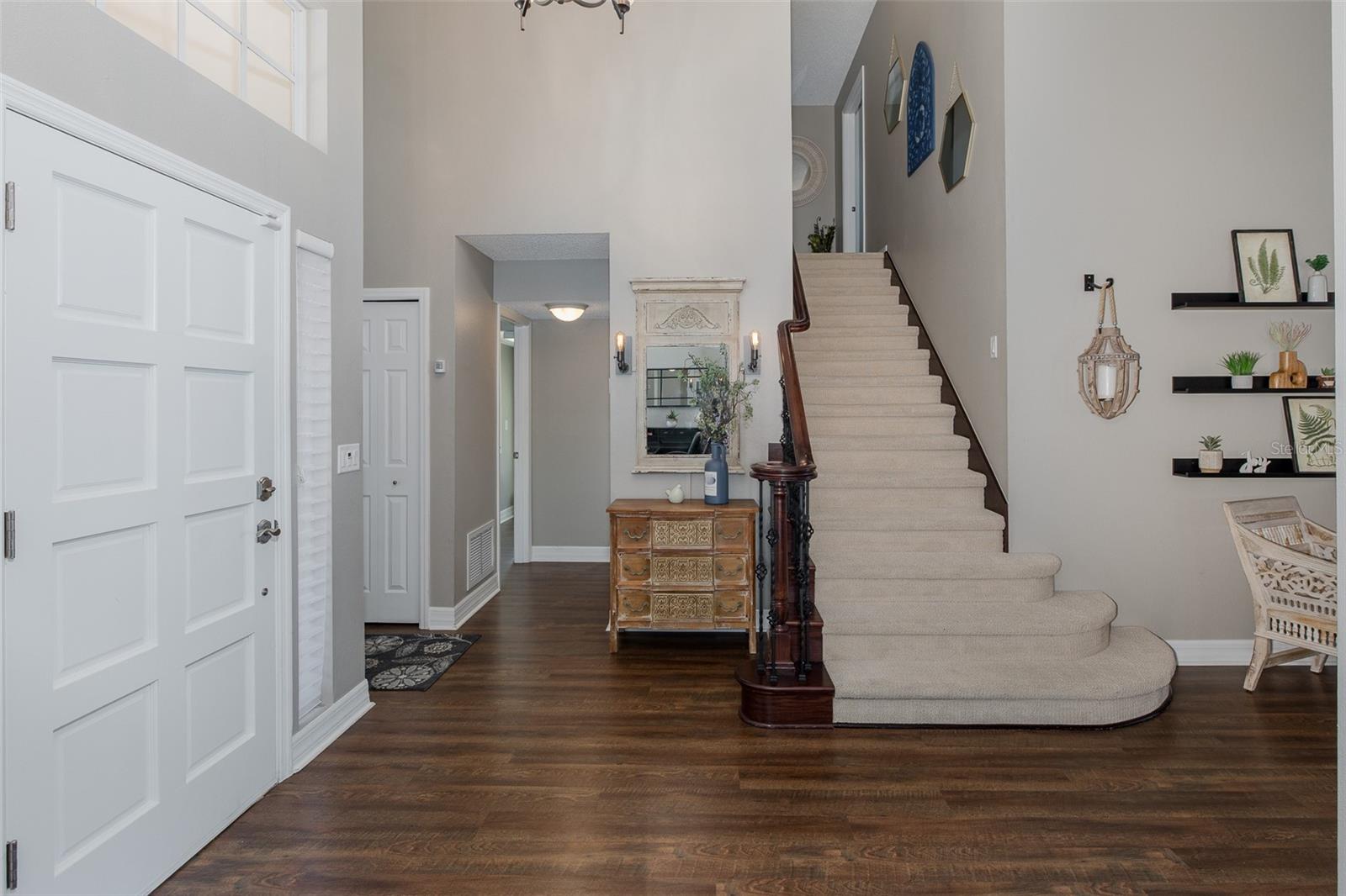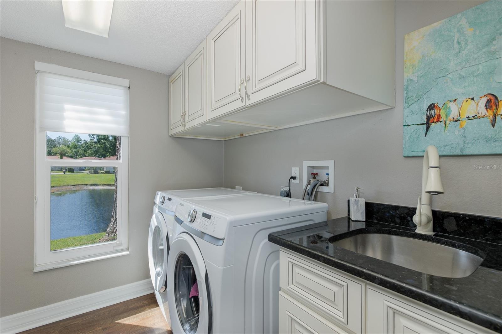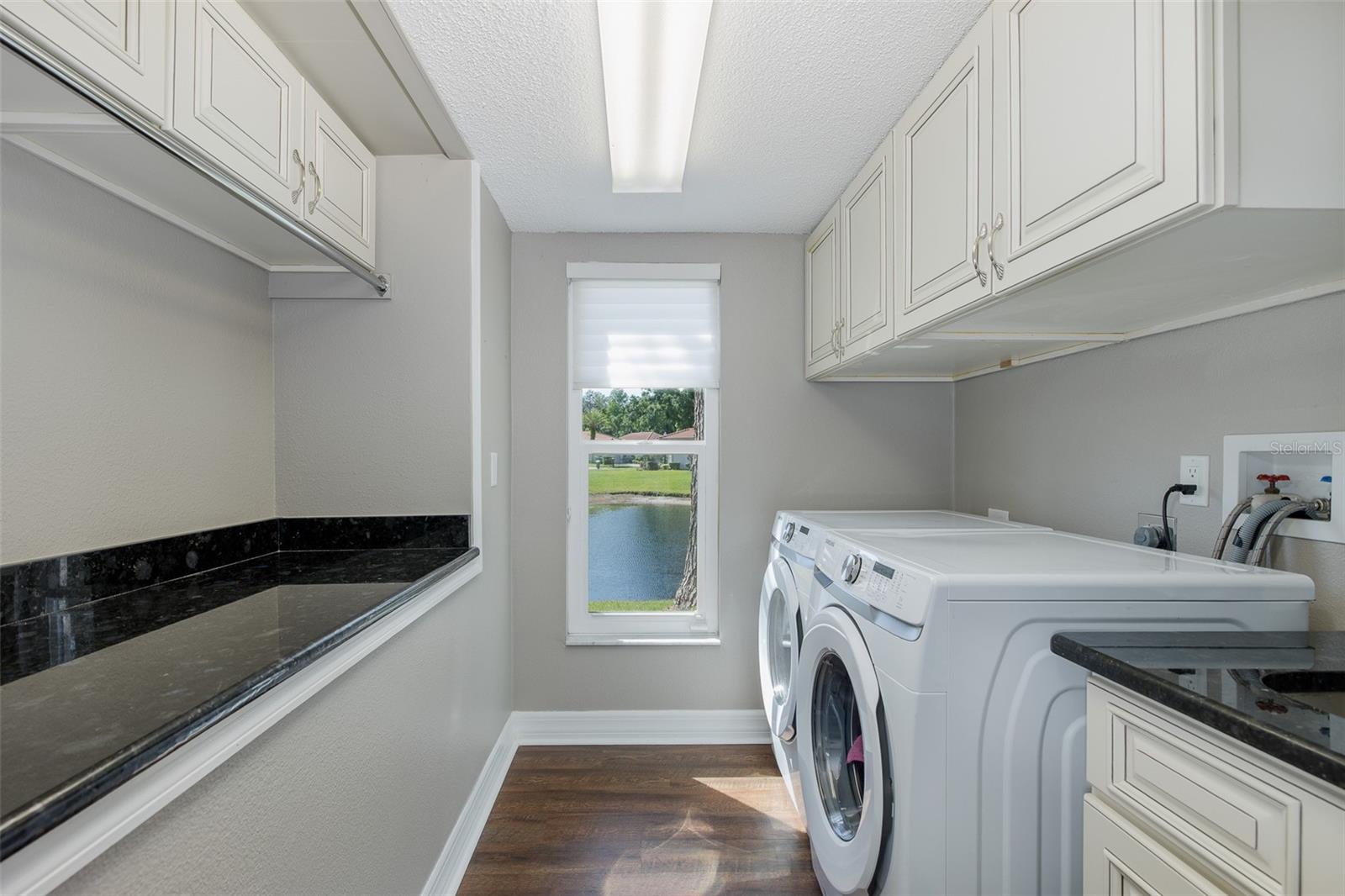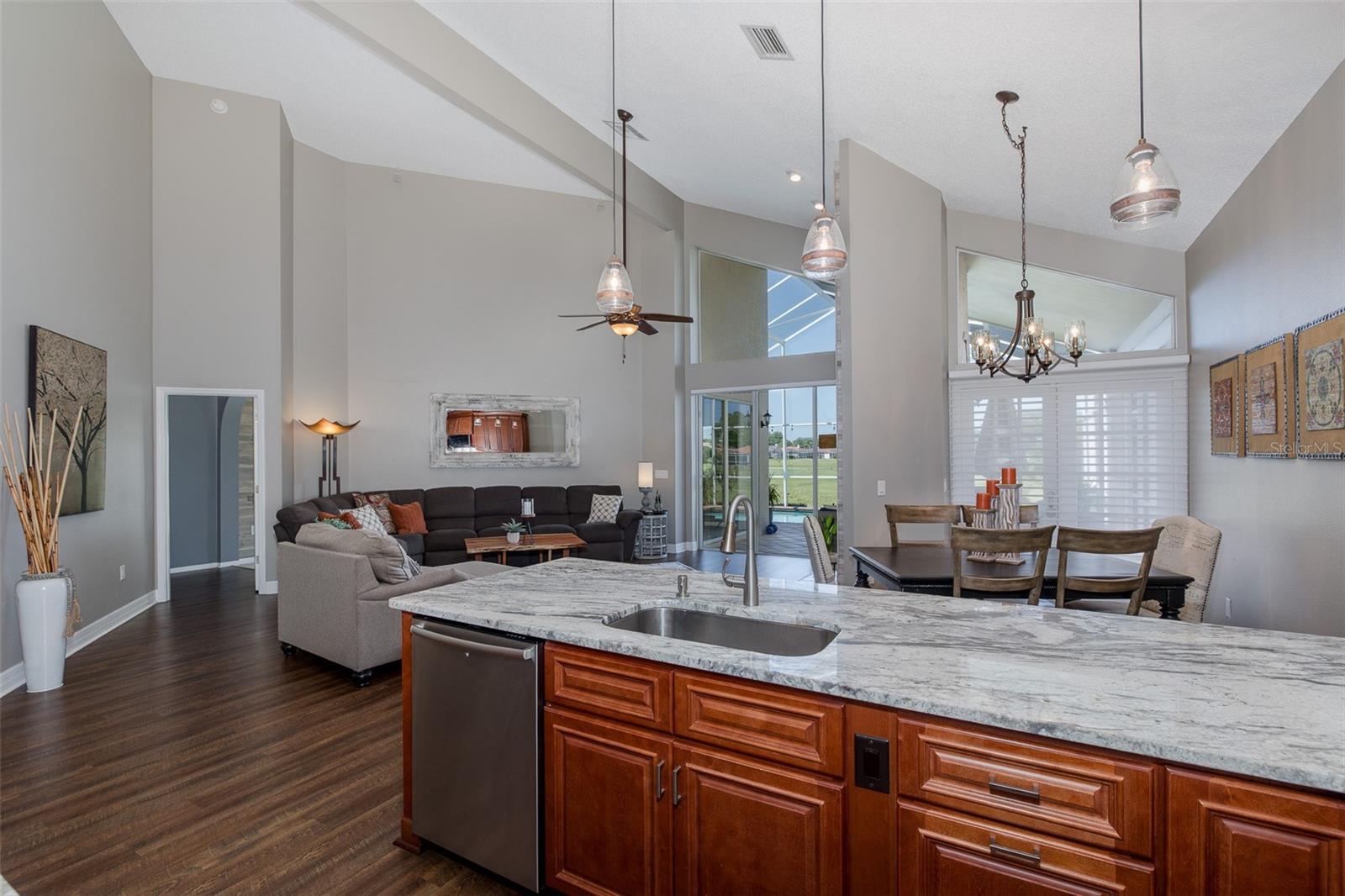 Under contract-accepting backup offers. STUNNING says it all! Luxury maintenance free single family home with 3 true bedrooms, 2 1/2 bathrooms, heated pool plus breathtaking, panoramic views of the golf course, pond and sunsets. Garage Door 2022, New TILE ROOF 2015, New 15+ seer variable speed A/C 2016 in addition to New Windows 2010 make this home energy efficient! Complete kitchen remodel offers an open concept floor plan with a double island, Jenn-Air stainless steel appliances, custom wood cabinetry and granite countertops all overlooking the great room with a focal point being the remodeled wood burning fireplace. Breakfast nook off of the kitchen offers french doors to the lanai grilling area. A separate formal dining room is great for entertaining (currently being used as office). Brand new Luxury Vinyl flooring through-out. The first-floor master suite is completely remodeled and offers a walk-in closet with custom organizers, walk-in shower, dual vanity, wood cabinets and granite countertops. Relax on the expansive lanai with brick pavers, screen enclosure and great views. Electric and manual shades compliment the windows and sliding doors in this home adding privacy while preserving the views. The large first-floor laundry room has a utility sink, granite folding shelf and cabinetry. The maintenance fee includes painting the exterior of home, mowing lawns, watering lawns, mulch, trimming shrubbery, lawn fertilizer. An itemized list of the updates to this home is available upon request. The community offers an active Golf and Country club with a full restaurant and events, plus a Tennis Club and 24 hour manned gated guard house. A true lifestyle!