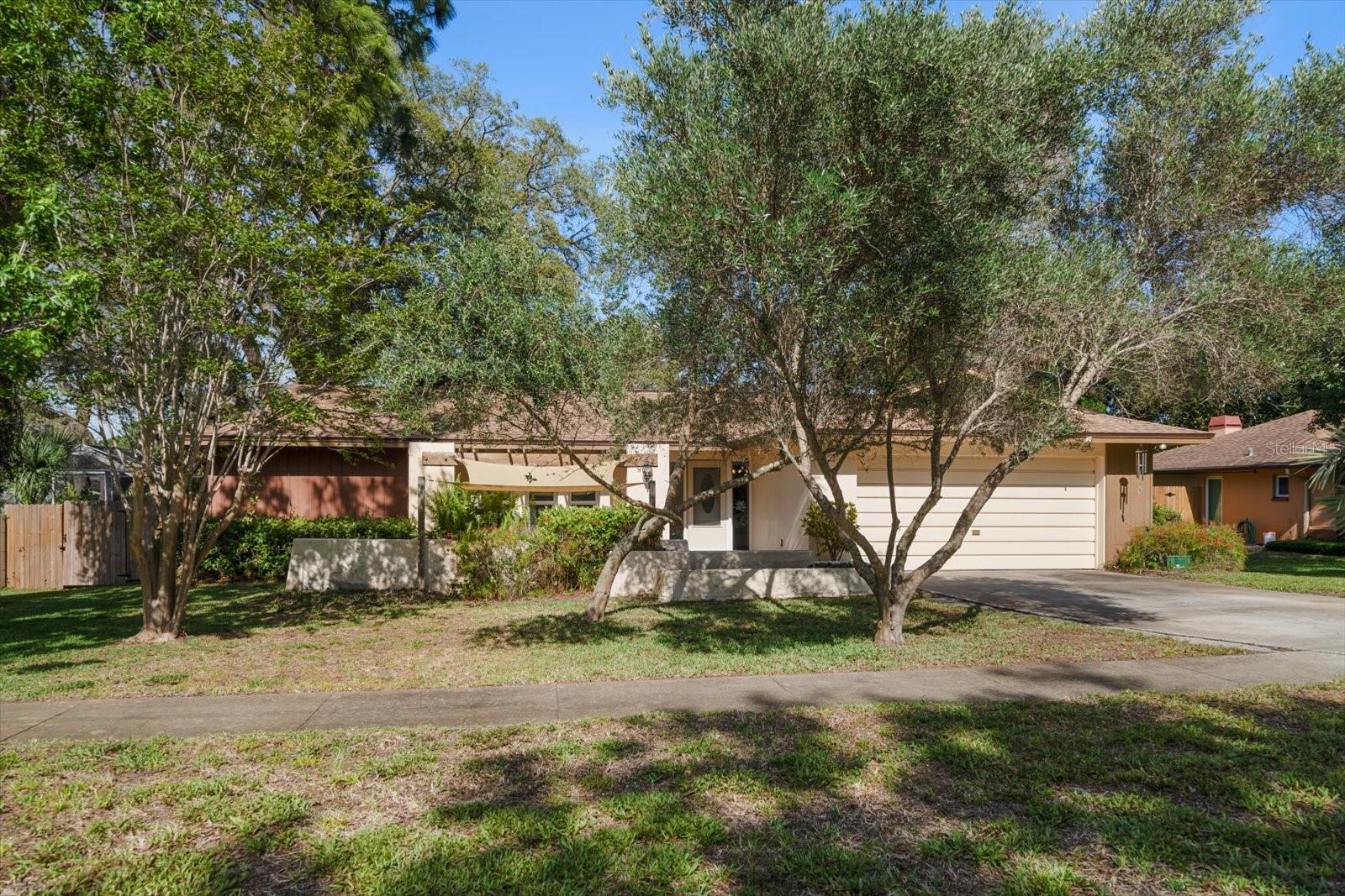 Charming 4-Bedroom Home with Serene Outdoor Spaces & Prime Location! Welcome to this beautifully maintained 4 bedroom, 2 bath split-bedroom home, offering both comfort and functionality. Featuring tile flooring throughout, this home boasts a spacious living area that flows seamlessly into a large screened patio—perfect for indoor-outdoor entertaining. The well-appointed kitchen is open to the cozy family room, complete with a classic brick fireplace and an ample supply of firewood, ideal for relaxing evenings. The private master retreat includes a generous walk-in closet and a luxurious ensuite bath. Step through elegant French doors onto the screened rear porch or enjoy the open-air deck leading to a peaceful backyard patio. The fully fenced yard is shaded by mature trees, offering a tranquil and private outdoor setting. A stocked koi pond at the front entrance welcomes you home with charm and serenity. Located just minutes from Gulf beaches, the famous Sponge Docks, and beautiful Craig Park, this home combines natural beauty with unbeatable convenience. Don't miss this exceptional opportunity—schedule your private showing today!