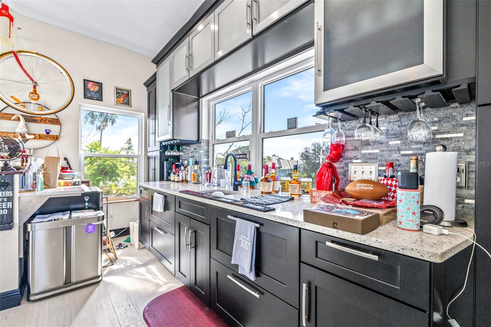 OFFERING this CUSTOM three story waterfront home, on the Gulf of America. Large front yard leading to this incredible home with all the amenities for enjoying the Florida lifestyle. The first floor includes the attached two car garage (brand new hurricane “smart” garage door with opener and camera) which enters into the laundry and kitchen areas. The laundry has custom cabinetry and granite countertops with sink. All new ceramic flooring throughout the home takes you into a custom-built kitchen, which includes the cabinetry, quartz countertops, custom hood and Café Designer Appliances. Continuing from the kitchen to the dining area and living room to the view through the pool area to the gulf and boat dock. Out of the elements is a 7’x15’ fiberglass pool and area within the home. Above the pool room is a loft for additional storage, office or guests. A fantastic place to enjoy the “privacy” of an enclosed indoor pool, or a choice to open the sliding 9 panes of hurricane sliding doors to have an open view of the gulf. The master bedroom has a waterfront view and contains a new walk-in closet and master bath completely remodeled. Around the corner is the second bedroom and second bathroom, updated in 2021. The next level, accessed by a stairway, leads you to the third bedroom. A recently added third floor is the ultimate entertaining room with panoramic water view, walk out observation deck and hurricane windows. Currently is set up with a bar and gaming table. Pay attention to ALL the custom details on your way through the house, such as the exotic canary wood windowsills. On entry to the dock is a 24’x14’ custom deck surrounding two majestic Australian Pines. Great for relaxation and watching the amazing gulf sunsets. Custom 8000 lb. boat lift installed in 2021 and NEW marine grade, maintenance free “wear decking”. The dock also contains custom lighting and an outdoor” manatee” shower. It is approximately a 15-minute boating experience to the Anclote sandbar and channel. As an added area for outdoor enjoyment is a firepit entertainment area at waterfront. Newly installed, Hurricane Rated "Smart" garage door. You can boat to Captain Jacks, downtown Tarpon Springs Sponge Docks, Rusty Bellies, Miss Vicki’s, and Ozona Blue, to name a few. It is also a short boat or bike ride to Howard Park. For your RV or guests, the driveway has a 50 amp hook up and sufficient depth for a 40 ft coach. This is truly THE property to enjoy the Florida lifestyle!
