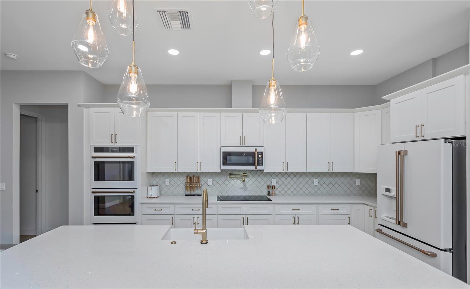 New Price Reduction $$$ - Custom-Built Elegance with Luxurious Touches Throughout Discover timeless sophistication in this exquisite two-year-old custom-built residence, designed to blend luxurious comfort with effortless style. From the moment you enter, you’ll be captivated by the attention to detail and high-end finishes throughout. The expansive primary suite offers a private retreat, highlighted by an oversized wet room with a rain shower, bench seating, and a deep soaking tub—perfect for unwinding. Step directly into a Sex and the City-inspired custom closet that balances function with fashion. Ideal for entertaining, the gourmet kitchen boasts top-of-the-line Café Collection appliances, double wall ovens, and a massive 9-foot island with quartz countertops (which also continues throughout the entire home) that seats six comfortably. Open-concept living continues through collapsible patio doors to the walk-out lanai, where a heated saltwater pool and hot tub await. With both gas and electric heaters, you’ll enjoy year-round relaxation in your private outdoor oasis. The pool also features modern conveniences including automatic refill when water levels are low, auto-dump to prevent overflow during heavy rains or hurricanes, and dual control panels—one conveniently located in the primary suite and another at the pump for ease of maintenance. The guest wing features three generously sized bedrooms, a full bath, and a well-appointed laundry room with direct access to the oversized 3-car garage, which includes walk-up attic access for convenient storage. Charming gas lanterns at the front entrance offer a warm, inviting glow, while hurricane impact windows and doors provide peace of mind throughout. Additional upgrades include a 16-channel security camera system, a hardwired fire detection system, and an underground drainage system, all supported by a GENERAC whole home generator for your piece of mind. The home is also fully prepped for an outdoor kitchen, with existing hookups for gas, electric, plumbing, and a vent hood. Less than one mile to the Gulf of Mexico and outside of an HOA, this home offers added security, sitting 14.5 feet above flood level and in flood zone X which means its location is outside of the flood plains. This great home and location provides both confidence and savings with no flood insurance required. This isn’t just a home—it’s a lifestyle of elevated comfort, thoughtful design, and modern convenience