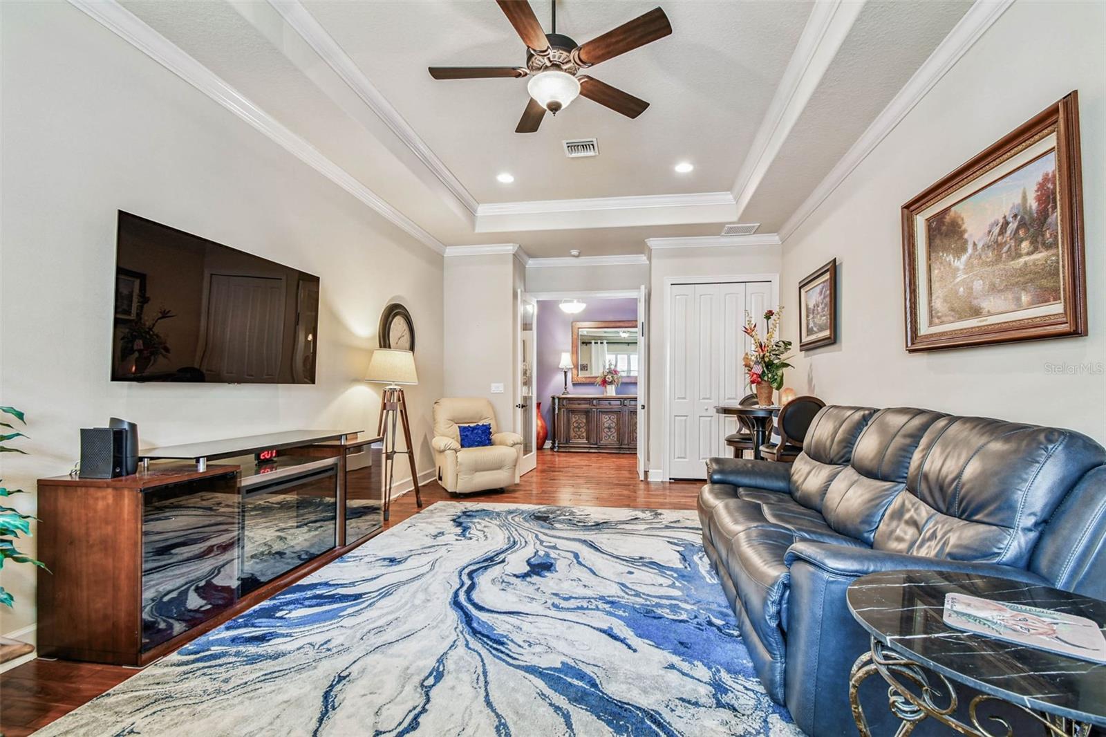 Welcome to the exclusive gated community of Wentworth, where luxury living meets timeless elegance. This Yorkshire model, crafted by premier builder Deeb, offers 3,152 square feet of thoughtfully designed living space with 4 bedrooms + BONUS ROOM and 3 full bathrooms. Inside, refined details set the tone, including plantation shutters, crown molding, tray ceilings in the living room and primary suite, a large primary suite closet with a custom cabinetry and a island, and custom built-ins in all closets. A versatile bonus room offers the perfect space for a private office, media room, or den. The gourmet kitchen features a gas range, under-cabinet lighting, and new stainless steel appliances (2024), including a refrigerator, dishwasher, and microwave. A stone gas fireplace adds warmth and charm, while energy-efficient Low-E insulated windows and doors enhance comfort throughout the home. Recent exterior updates include new lighting, fresh landscaping with decorative curbing, a 2024 irrigation well, a water softener (2023), a reverse osmosis system, a gas water heater (2021), and a new air conditioning system (April 2025). Outdoor living is a highlight, featuring a sparkling pool, expansive lanai, and a three-car garage that offers ample storage for vehicles and golf carts. Wentworth residents enjoy 24-hour security, a clubhouse with dining, and a lifestyle designed for both relaxation and recreation. This home combines timeless design, modern upgrades, and resort-style amenities in one of Tampa Bay’s most desirable gated communities. FLOOD ZONE X and EVACUATION D