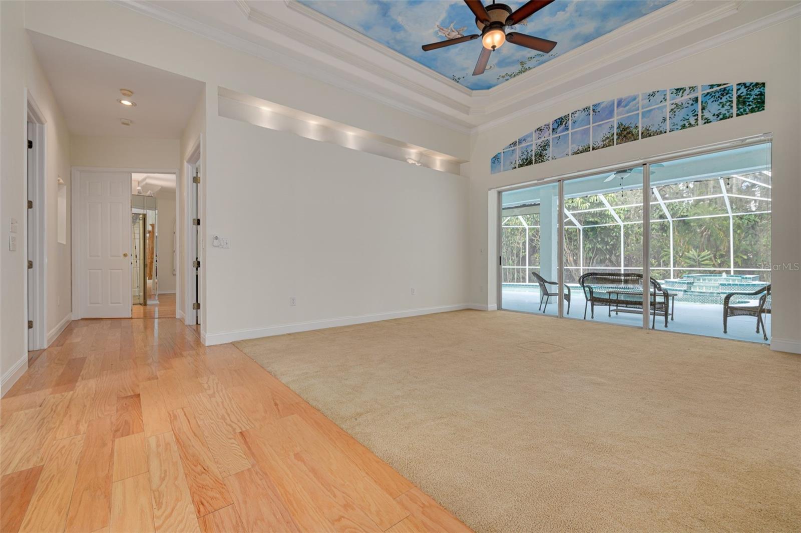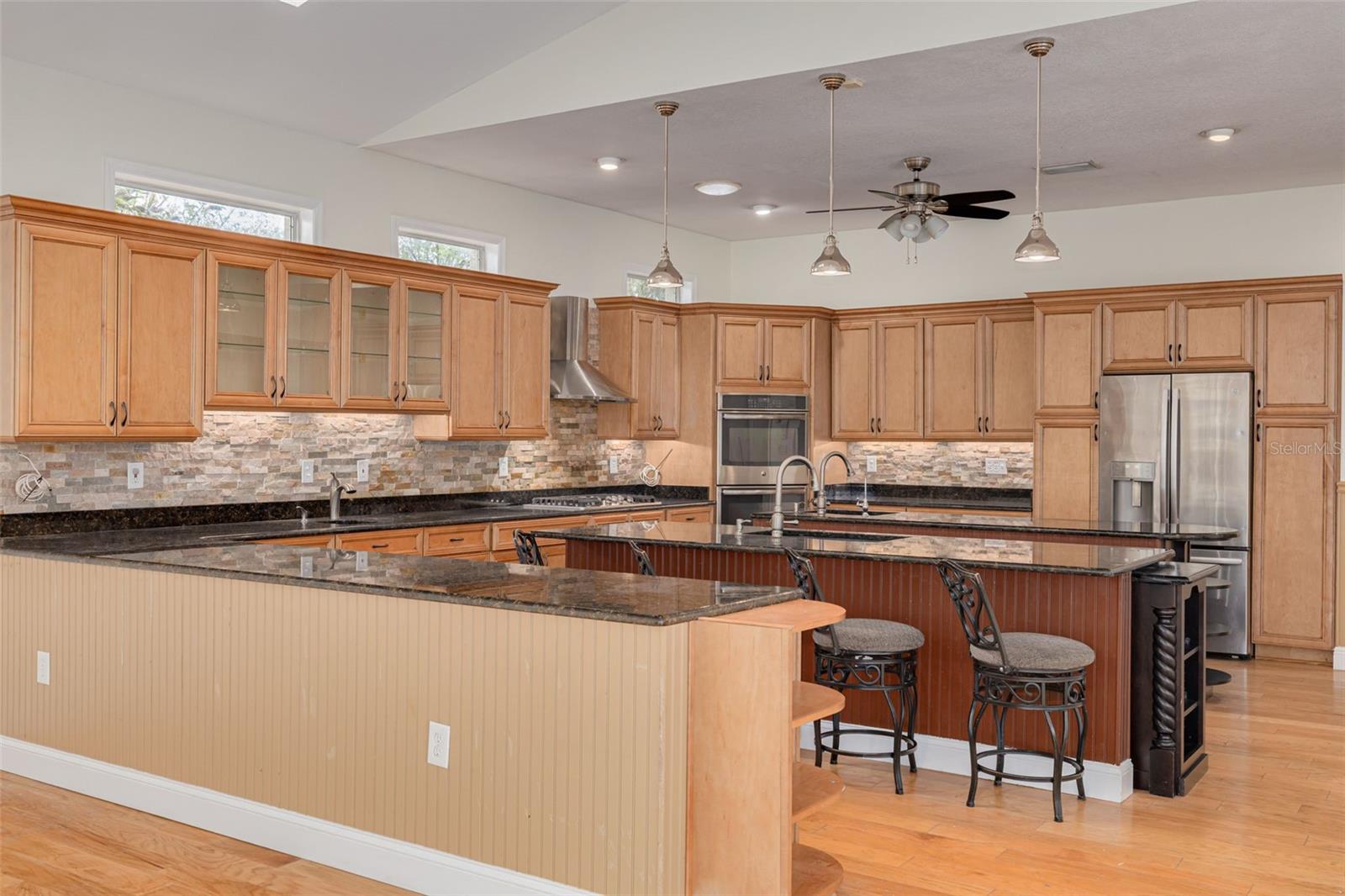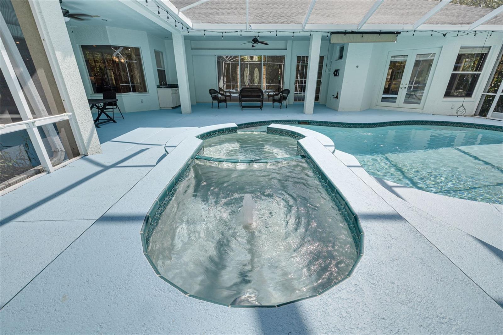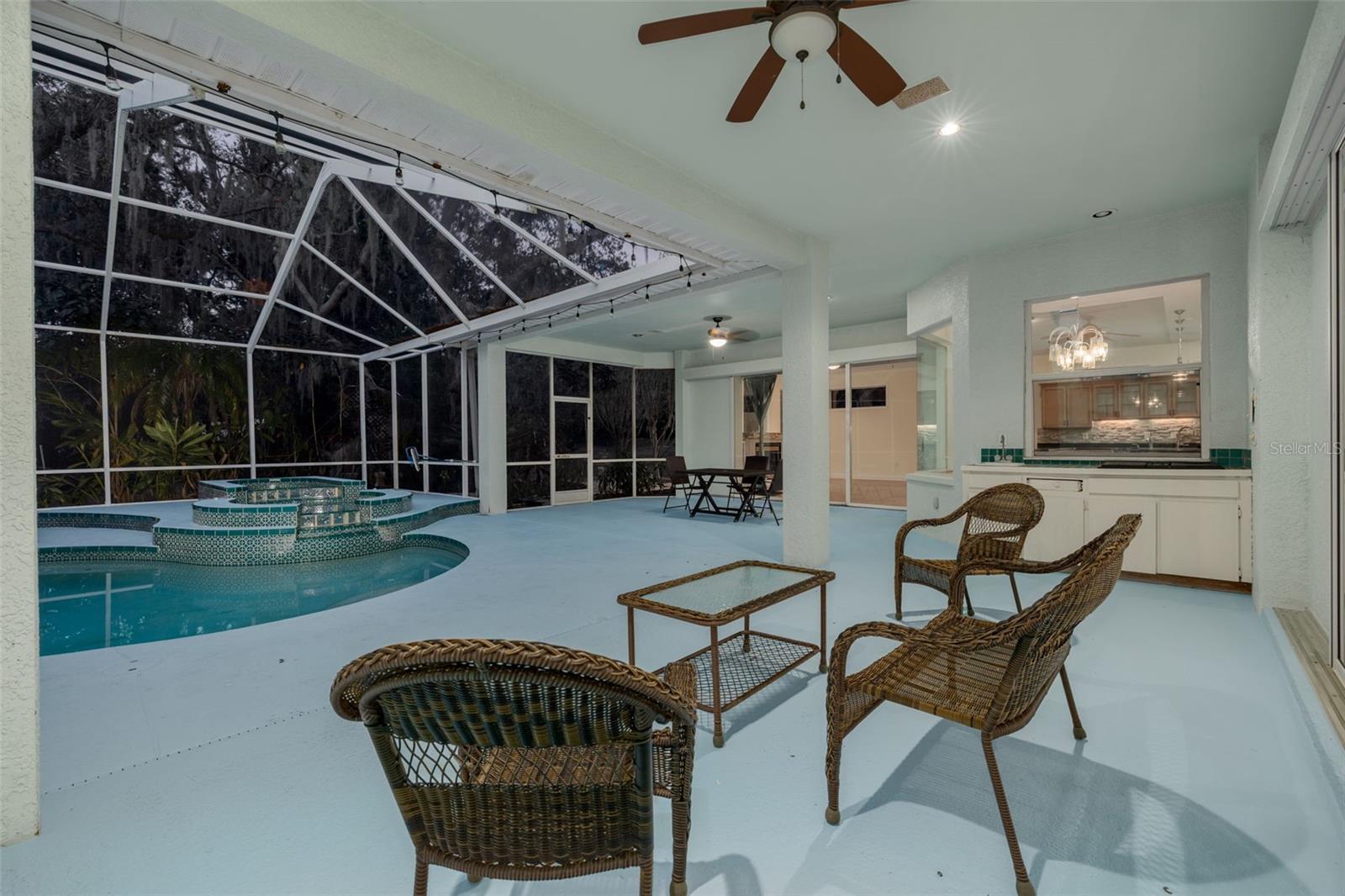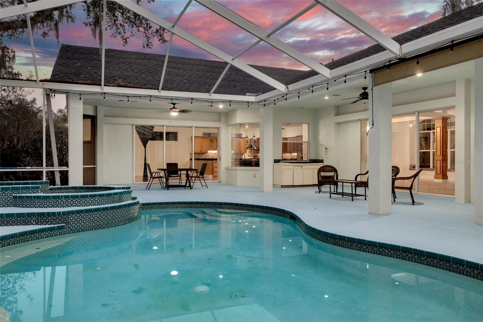 Welcome to your private oasis in the exclusive Cypress Lakes Estates! This stunning 4-bedroom, 4.5-bathroom home offers over 4,500 square feet of luxurious living space on an expansive 0.86-acre lot, surrounded by lush landscaping and a canopy of oak trees. A grand circular driveway and three-car garage with built in storage create a memorable first impression. Step through the large French doors into a beautifully designed living and dining area featuring cathedral ceilings, elegant chandeliers, murals, and large telescopic sliders that open to the pool lanai—creating a perfect flow for entertaining. The primary suite, conveniently located on the main level, features his and hers closets and an ensuite bathroom with dual sinks, a garden tub, a walk-in shower, and a private water closet for added comfort and privacy. Adjacent to the primary suite, the sunroom invites relaxation with a gas-burning fireplace, wet bar, and direct pool access. The home office boasts built-in shelving and ample space for working or studying from home. The gourmet kitchen is a chef’s dream—complete with dual kitchen islands, a breakfast bar, a dry bar, multiple prep sinks, stainless steel appliances, a gas cooktop, built in dual ovens, and abundant pantry storage. The kitchen flows seamlessly into the breakfast nook and family room, creating an inviting hub for everyday living. A secondary bedroom with ensuite bathroom is also located downstairs, ideal for guests or multigenerational living. Upstairs, you’ll find two additional bedrooms, a bathroom, a loft area, and a screened, covered balcony—perfect for enjoying serene views of the grounds. Outside, the resort-style pool area features a spillover spa, outdoor kitchen, and spacious lanai, ideal for gatherings or quiet evenings under the stars. The fenced backyard offers plenty of room for gardening, play, or simply enjoying the Florida sunshine. With 30-foot setbacks ensuring 60 feet between each home, you’ll love the peace and privacy this neighborhood provides. Located in one of the area’s most desirable neighborhoods and zoned for top-rated schools, this home combines elegance, privacy, and convenience—all in one exceptional package.