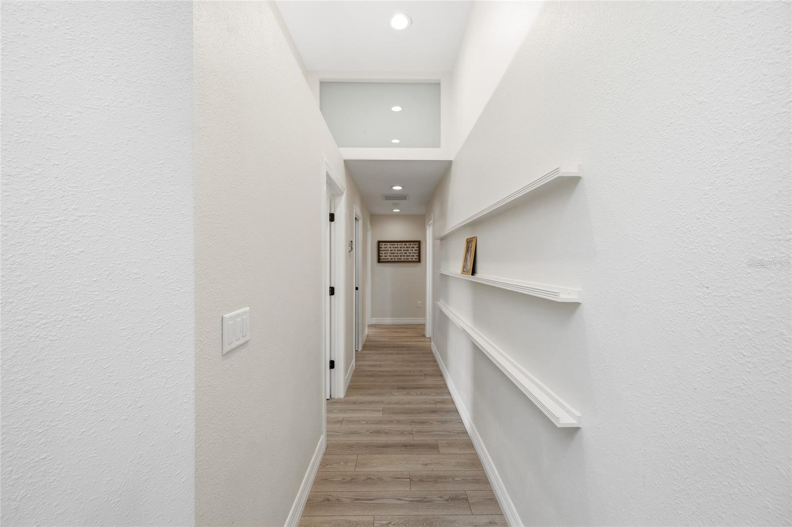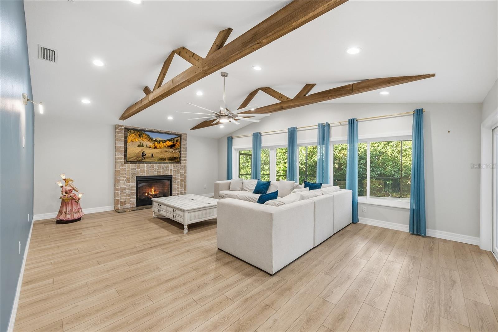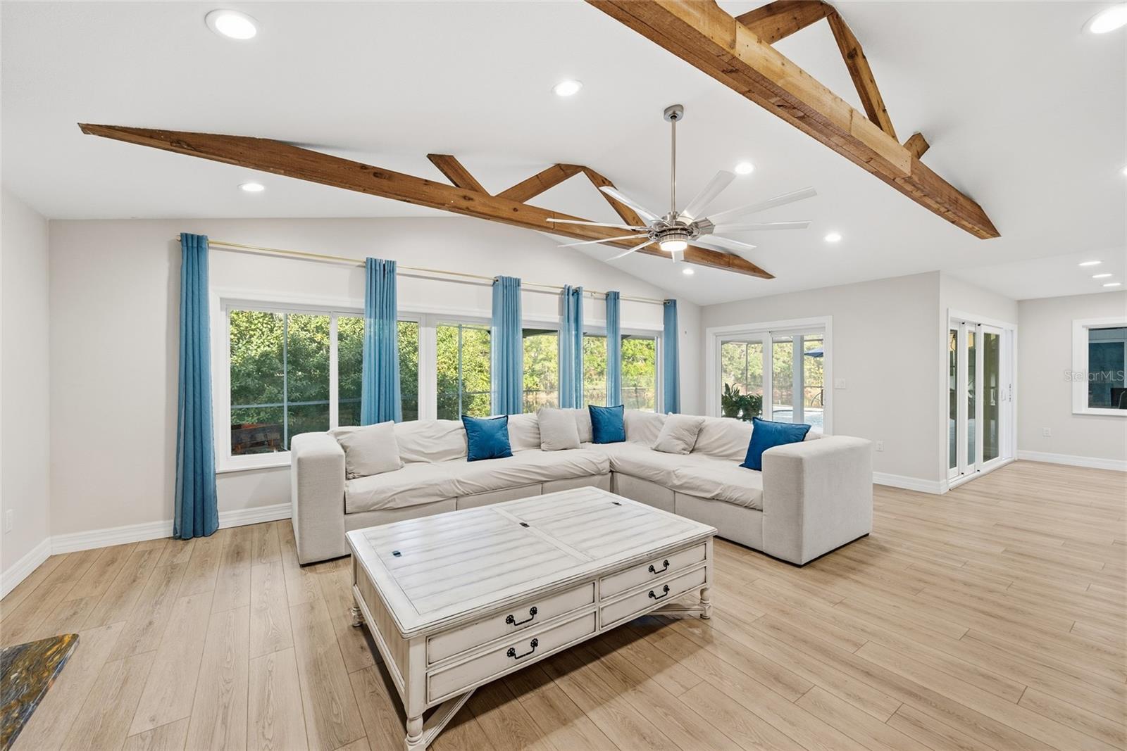 Welcome home to your luxurious pool home situated on an oversized waterfront conservation lot. Your new sanctuary sits on a sprawling .73 acre fenced corner lot. Roof 2019, and dual A/C systems. Double door entrance into an expansive open floorpan with the central hub of the home harmoniously joining your dining room, kitchen and living room together into the ultimate entertainer's home! Slide the pocket doors into the wall and seamlessly join your enormous lanai areas for even larger gatherings. Imagine the parties you can host here, or simply enjoying your the peace and serenity of calling this amazing space "home". Your saltwater pool offers a beach entrance on to a large sunshelf for relaxing as you enjoy the surrounding natural beauty of the pond and conservation views. Color changing LED pool light, two lighted bubblers and dual umbrellas on the sundeck all are indicative of the "extras" you an expect to find inside the home too! Too many to list here! A half bath as well as an outdoor shower, complete with hot water, help to keep your interior in pristine condition! Just outside of your screened cage there is a paved grilling station and then a large 20' by 20' open concrete pad for true outdoor living where you can add swings, a playset, hammocks, a canoe storage rack, etc. Yes, you can canoe on the pond in your new backyard! Your kitchen features quartzite counters, dual islands, one of which can be raised to bar height via remote, ample cabinetry, live edge camphor tree open shelving, and a very nice walk in pantry. Living room has a gas fireplace for those cozy nights! You'll appreciate the split bedroom floorpan with high ceilings and waterproof LVP flooring throughout all main areas, with tile in the bathrooms only. Master suite has a sumptuous private ensuite bath as well as a private sauna! The palatial master closet is to be envied, and has its own security keypad! Adjacent to the master suite is a flex room that can be a gym, dance studio, crafters haven, "man cave", home business center, second office, etc. At the front entrance is an office space that can easily be used as a 4th bedroom. Down the hall are 2 additional bedrooms along with a second full bath, another half bath and an interior laundry room with great storage that also opens to your garage. All of the windows and doors are hurricane rated or have hurricane panels available, kept in the back storage room, so you can actually use the garage for your vehicles! Speaking of vehicles, your driveway can comfortably accommodate 7! The enormous fenced in side yard with 10' wide dual gates offers ideal storage for any additional toys you may have! Your new home features a security system with cameras, DVR and monitor. Zoned for "A" rated schools! Whispering Lakes offers a community park with pickelball courts, basketball courts, and a pavilion for gatherings. This property offers a rare combination of privacy, natural beauty, and proximity to local amenities, such as the East Lake Sports Complex, Brooker Creek Preserve, the Pinellas Trail North, East Lake/Boot Ranch shops and restaurants, various Golf Clubs. It's just a short distance to the thriving downtown Tarpon Springs Sponge Docks, 2 international Tampa area airports, Clearwater beach, and more. Home was recently appraised and square footage reflects these recent measurements. Buyer to confirm. Call today so you don’t miss out on the opportunity to make this stunning property your own!