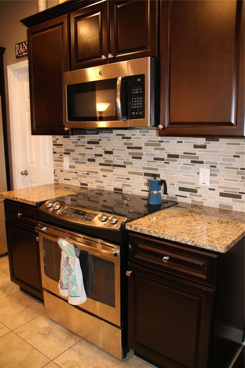 Discover the epitome of modern living at this meticulously crafted townhome built in 2017. This two story residence, nestled within a charming community, seamlessly marries style, functionality, and natural beauty. Step into the heart of the home - the kitchen - where tile flooring, granite counter tops, and a tiled back splash create a sleek and inviting space. Stainless steel appliances and a kitchen island elevate the culinary experience. The pantry walk-in closet will provide more than enough kitchen/cleaning storage. The living and dining rooms are adorned with engineered hardwood flooring. Adjacent to the dining room, a large walkout deck provides a scenic view of the natural conservation area, creating a serene backdrop for daily living. Ascend the stairs that have newer luxury vinyl tiles, guided by the charm of wrought iron spindles, leading to three bedrooms and two bathrooms. Granite counter tops in the upstairs bathrooms, ample storage and spacious closets enhance the functionality and comfort of the upstairs living spaces. Beyond aesthetics, this home embraces modern conveniences, including high ceilings, a double shower head walk-in shower in the primary bathroom, and a hurricane-rated garage door (other hurricane shutters included as well). The 240v outlet in the garage makes it electric vehicle-ready, while the bonus storage area under the stairs adds to the home's practicality. Enjoy the conveniences of high-speed internet readiness, and appreciate the thoughtful placement of the upstairs laundry eliminating the need to haul laundry between floors. Centrally located in Tarpon Springs, this townhome provides easy access to Fred Howard Park, shopping, dining, the Pinellas bike trail and the famous Sponge Docks just a short 2.6 mile drive away. Cap off your days by relaxing in the community pool - a refreshing way to unwind. Your future home awaits!
