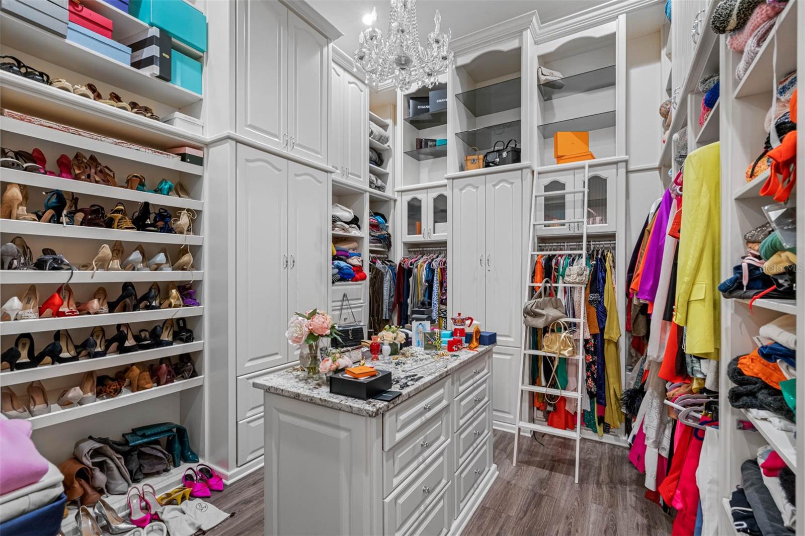 Designer Mediterranean Custom Estate in the Prestigious Wentworth Golf Course Community Welcome to this exquisite custom-built Mediterranean home, ideally situated in a serene cul-de-sac beneath stately oak trees within the famed Wentworth Golf Course Community—one of Tarpon Springs' most coveted manned-gated neighborhoods. From the moment you arrive, elegance and craftsmanship define every aspect of this home. A custom double walnut front door opens into a grand foyer, setting the tone for the luxurious finishes that continue throughout the residence. To the right of the foyer, you'll find an expansive formal dining room accompanied by a custom-designed wine room, capable of storing over 350 bottles and featuring a built-in humidor—perfect for the discerning collector. The gourmet kitchen is a chef’s dream, showcasing 42” cabinetry, top-of-the-line Monogram appliances, a large central island, and a cozy eat-in area—ideal for casual family meals or entertaining guests. The owner’s suite is a private retreat, complete with a sitting area and a custom-designed craftsman closet—a standout feature in both form and function. The executive office offers sophistication and productivity, featuring custom cabinetry and shelving. Upstairs, you'll discover a spacious guest suite or game room—the fifth bedroom—equipped with beautifully crafted built-in wooden cabinetry. Additional upscale features include plantation shutters, integrated surround sound, and meticulous attention to detail throughout. Step outside to your screened brick paver lanai, a true oasis that overlooks the 15th fairway and a peaceful conservation area. Enjoy year-round outdoor living with a outdoor kitchen, saltwater pool and spa, and generous covered seating areas. Just beyond the lanai, indulge in evenings by the stone fireplace, gather around the fire pit, or relax under the pergola surrounded by tranquil fountains. This home is a rare opportunity to enjoy luxury living in one of the area’s most exclusive communities—combining elegant design, functional spaces, and stunning outdoor amenities.