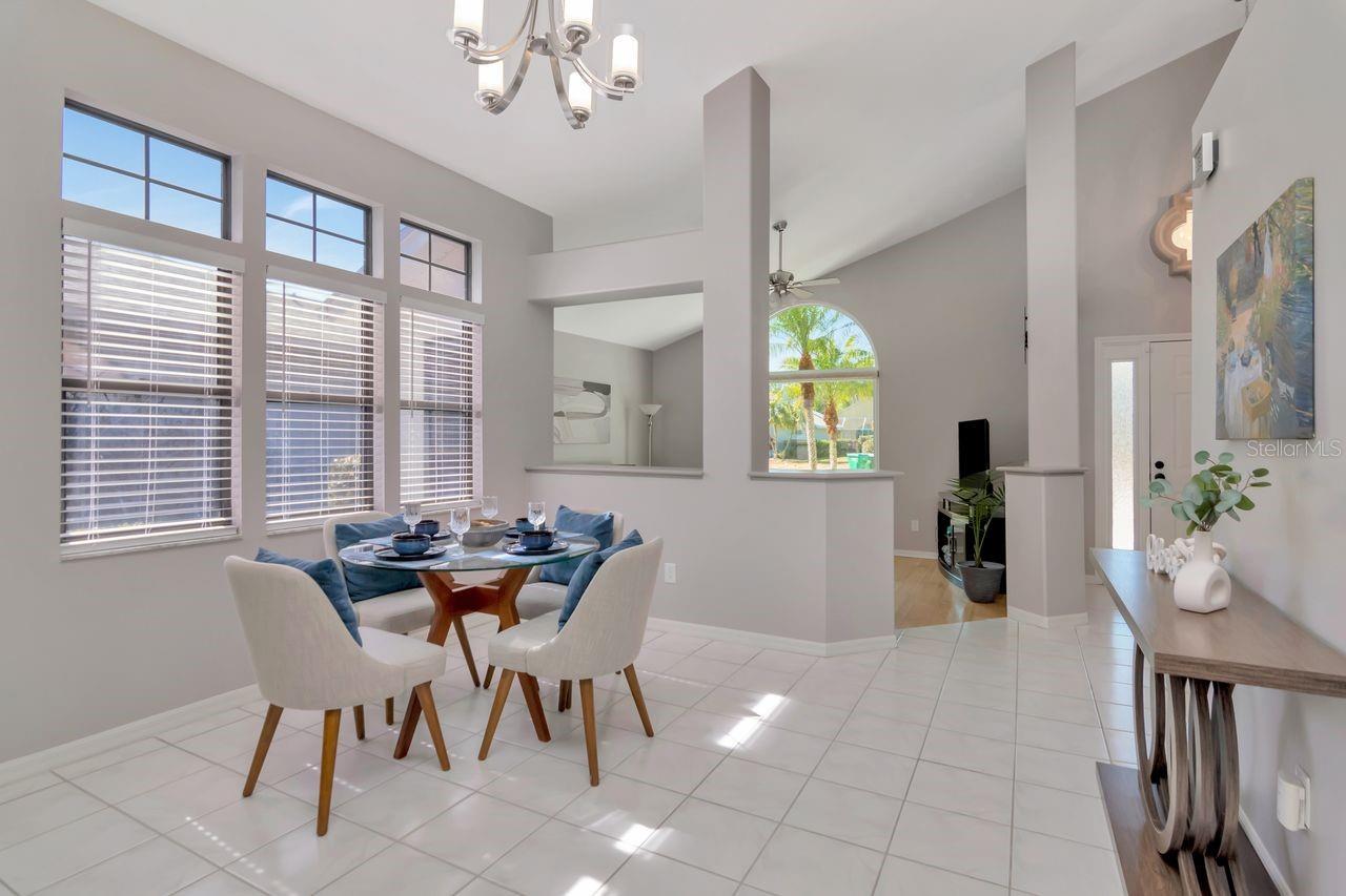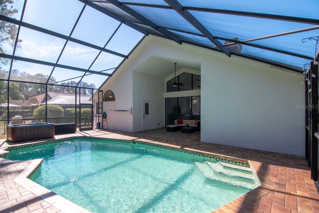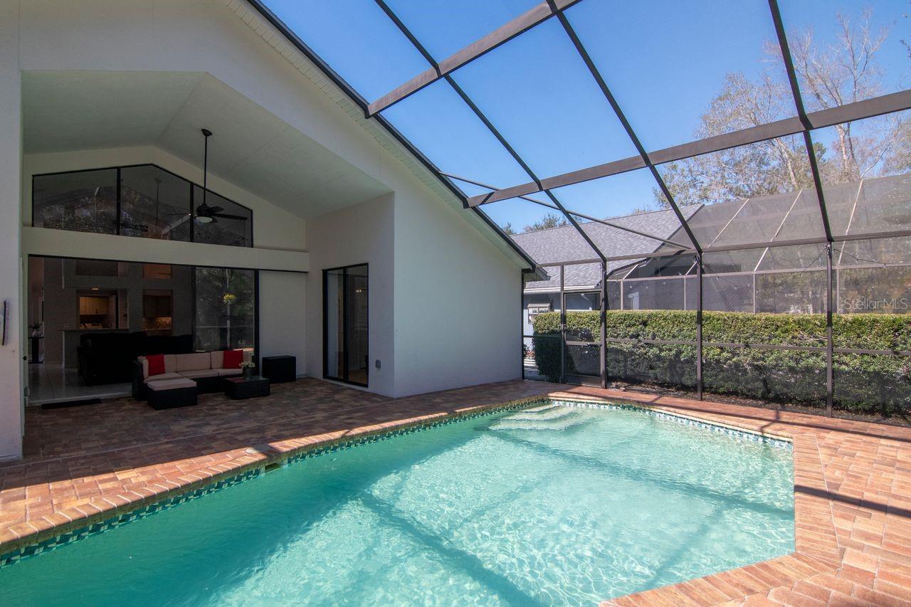Experience the pinnacle of modern living in Fieldstone Village at Woodfield with this impeccably clean, mint-condition 3-bedroom, 2-bathroom residence spanning 2,007 sq ft. Located in a non-flood zone with low HOA and no CDD fees, this home features a unique split floor plan highlighted by volume ceilings up to 15 feet and massive windows showcasing a lush private preserve. The chef-inspired kitchen is fully updated with quartz counters, painted hardwood flat-panel cabinets with soft-close and dovetail construction, undermount lighting, stainless steel appliances, abundant counter space, and French doors that flood the eat-in space with natural light. Modern architecture shines through with the removal of all popcorn ceilings for a smooth flat texture, complemented by bamboo flooring, modern tile, and all-new interior and exterior fixtures, hardware, and fans. The primary suite offers custom closet shelving and a refreshed bath with dual walnut cabinets, while the guest bath has been completely remodeled with a new tub, vanity, and designer tile. Exceptional upgrades provide total peace of mind, including owner-owned solar panels (2021), a new AC (2025), a new water softener (2025), hot water on demand (2024), and a new epoxy-coated garage floor. The outdoor oasis features new landscaping with outdoor decor lighting, and a beautiful pool with recently sealed pavers (2026), a free-standing spa, a newer pool pump (2023) and control panel (2025). Complete with new window blinds throughout and a seller-provided home warranty, this East Lake area gem is truly move-in ready. Easy access to the Pinellas Trail and Brooker Creek Preserve. Only 35 minutes to the airport and approximatley 20 minutes to the nearest beaches! Enjoy Florida living at it's best!
