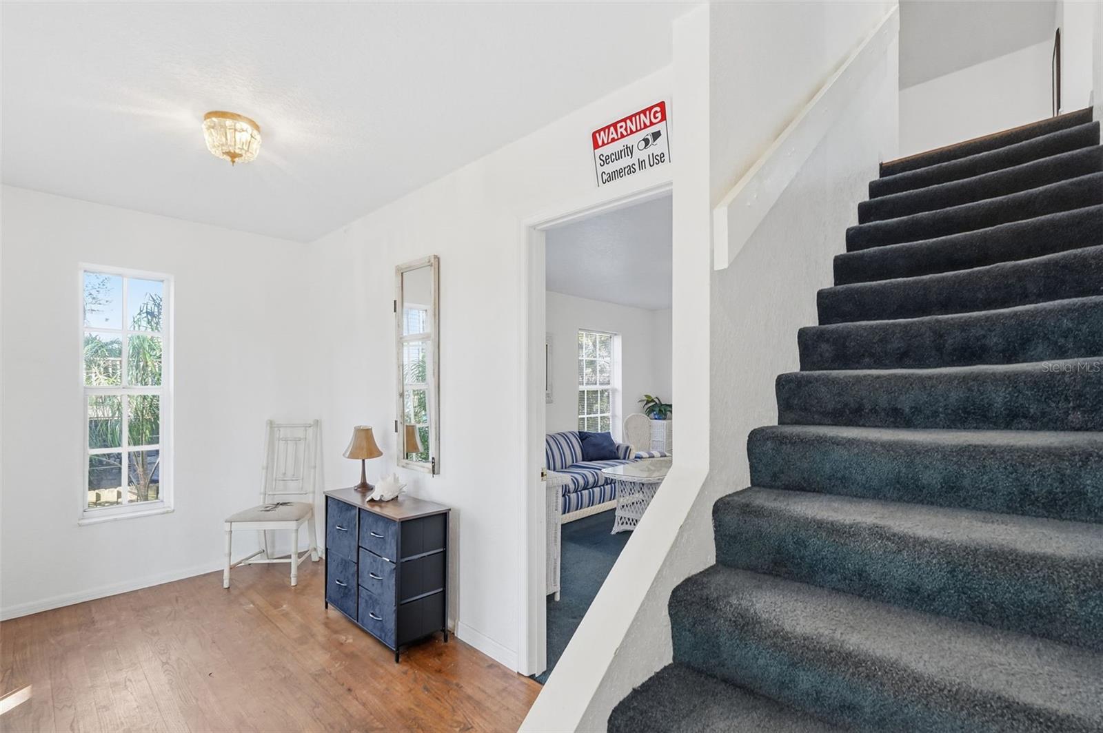 One or more photo(s) has been virtually staged. Welcome to this charming Charleston-style home tucked beneath mature trees on a quiet street in the heart of Tarpon Springs. With approximately 2,200 square feet across three thoughtfully designed levels, this unique residence blends character, space, and versatility—perfect for multigenerational living or those craving a true Florida lifestyle. The home features four spacious bedrooms plus a dedicated office that can easily serve as a fifth bedroom. On the first floor, a private suite with its own bathroom featuring a beautiful claw-foot bathtub, kitchenette, and deck access creates an ideal in-law suite or one-bedroom rental opportunity. The second level is warm and inviting, highlighted by vaulted ceilings, beautiful wood floors, and a wood-burning fireplace with a stone surround and hidden storage on both sides. French doors open to a large deck overlooking the trees, while the kitchen offers a breakfast counter, dinette area, and sliders to an additional outdoor deck—perfect for morning coffee or evening meals. A half bath, formal dining room, and office/bedroom complete this level. Upstairs, the primary suite is a true retreat with a walk-in closet, double vanities, large linen storage, and a Jacuzzi spa tub. Two additional generously sized bedrooms share a Jack-and-Jill bathroom, offering both comfort and functionality. Additional highlights include a metal roof, circular driveway, huge built-in overhead garage storage, low-maintenance yard, and a home warranty included for peace of mind. For added comfort and protection, solar security film was professionally applied in late 2005 to all top-floor windows and most second-floor windows (excluding front-facing windows), providing enhanced strength and heat reduction, though not hurricane-rated. The home sustained no damage during the 2024 hurricanes, and furniture is negotiable, making this a truly move-in-ready opportunity. Enjoy an unbeatable walkable location near top-rated schools, parks, tennis courts, and soccer fields, with easy access to Fred Howard Park Beach, Sunset Beach, and the iconic Tarpon Springs Sponge Docks—along with shopping, dining, and all the charm this coastal community is known for. This is a rare opportunity to own a character-filled, flexible home in one of Pinellas County’s most desirable coastal neighborhoods.