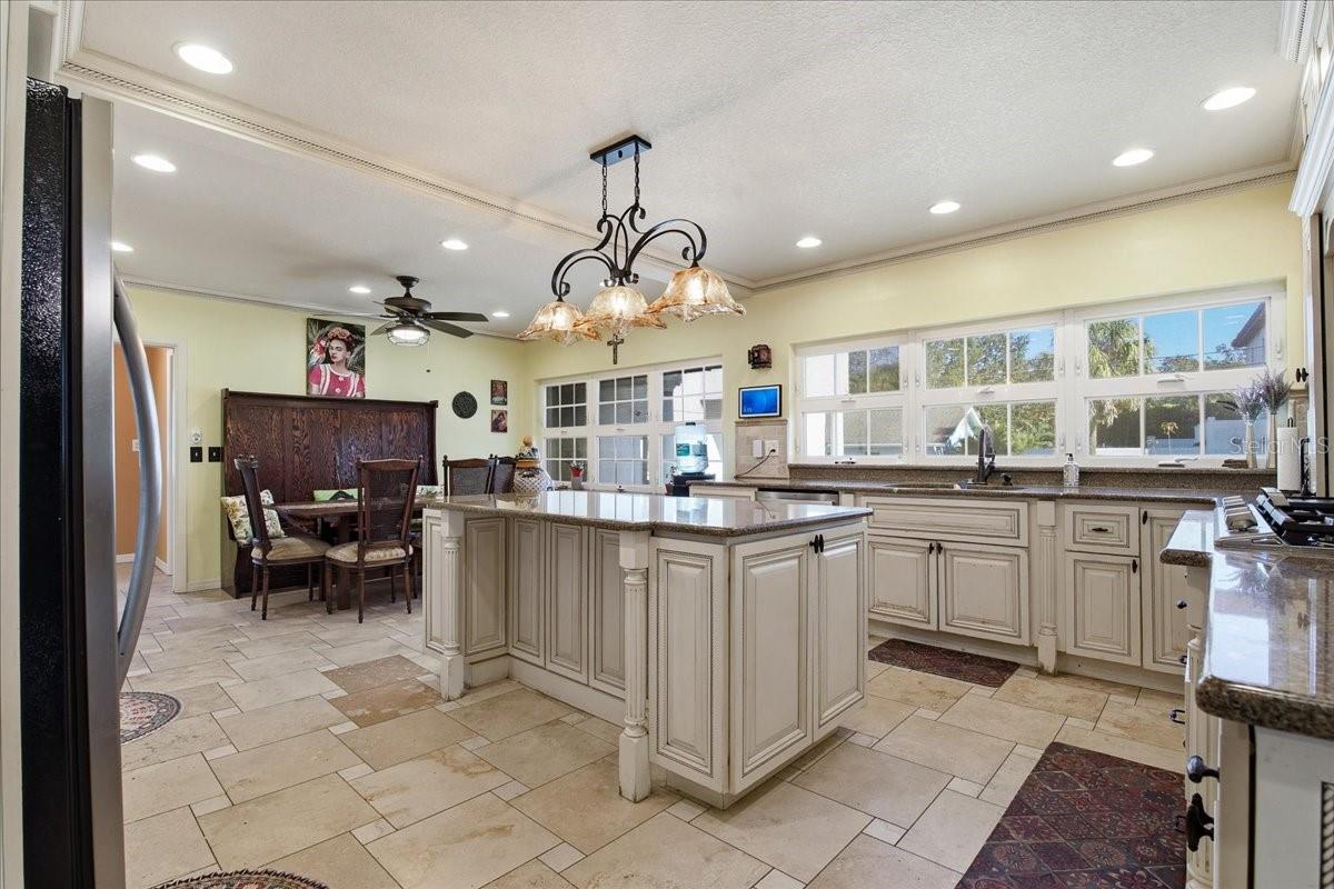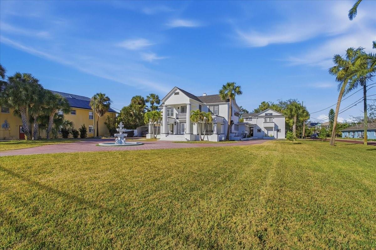 Try this Iconic location on Spring Bayou. This Winter home to countless Manatee is also the Historic setting for The Epiphany "Dive for the Cross". This home also lends its own bit of history to one of America's Best Small Towns of Tarpon Springs. Step inside and make Your own history in this extraordinary home. At first look, the magnificent fountain is framed by the New brick pavered driveway. This speaks to the awareness to accent the home according to the period of which it was built. Then the bold columns and front porch seating offers the opportunity to soak in the sun and the views of the bayou and the visitors who are admiring the beautiful setting. As you enter through the double doors you are welcomed into the Great room where you feel the light and views from every direction. While standing here, you truly sense the effort that has been put forth over time to uphold the rich heritage of this home which was originally built in 1920. One can't help but to be struck by the Grand staircase and double-sided fireplace. The original Hardwood floors have been refurbished and remain, tall baseboard, ten foot ceilings and antique stained glass all tell the story of this home. Offset to the left is the parlor (office or den to most). The rich wood accents show of sturdy craftsmanship and customary furnishings. It is most suitable as an office however could serve many functions. The Living room is opposite to this space. This wide open seating room is adjacent to the formal dinning room; certainly large enough for a 12 seat table and entertaining. Especially great for holidays! This is located traditionally connected to the kitchen through a swinging door. Once through, this is where modernization meets old world charm. This large open space suites the Chef in the family. The center island offers both seating and plenty of room for prep work. Cabinetry keeps with the period of an antique look with rope inlay design and offers the recently updated natural gas cooktop. Add the conveniences of a full size commercial Refrigerator and separate Freezer, walk in pantry and eat in kitchen seating and this has it all. There is a back door from the kitchen which leads to the pool bath, Laundry room and pavered pool deck. This is also an entertaining space with the Summer kitchen, Bar top, large pool deck PLUS flows right back into the Family & Game room. Belly up to the Bar, Shoot a game of pool or watch all of the football you can with the opportunity to have several TVs. The Main level has a half bath with (sauna Does not convey). Elevate upstairs to the 3 bedrooms Master to the left with an optimized closet and modernized bathroom and two other bedrooms plus bathroom down the hall. The main house is expansive YET THERE"S MORE!! With a private access through the garage, a staircase take you to the Guest quarters. This full in-law suite is complete with kitchen, Family room, Laundry plus 1 bed & 1 Bath and is a great multi-generational opportunity. The location is easy access to all restaurants and shopping of Tarpon Springs as well as just minutes to Fred Howard Park and Sunset Beach. Tour this peice of Tarpon Springs History today.