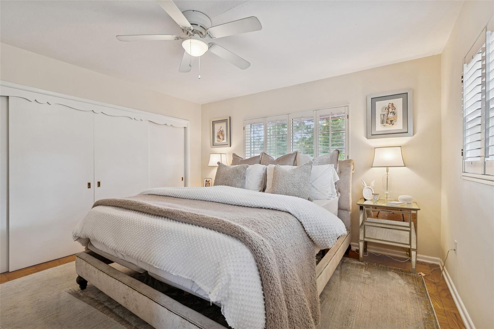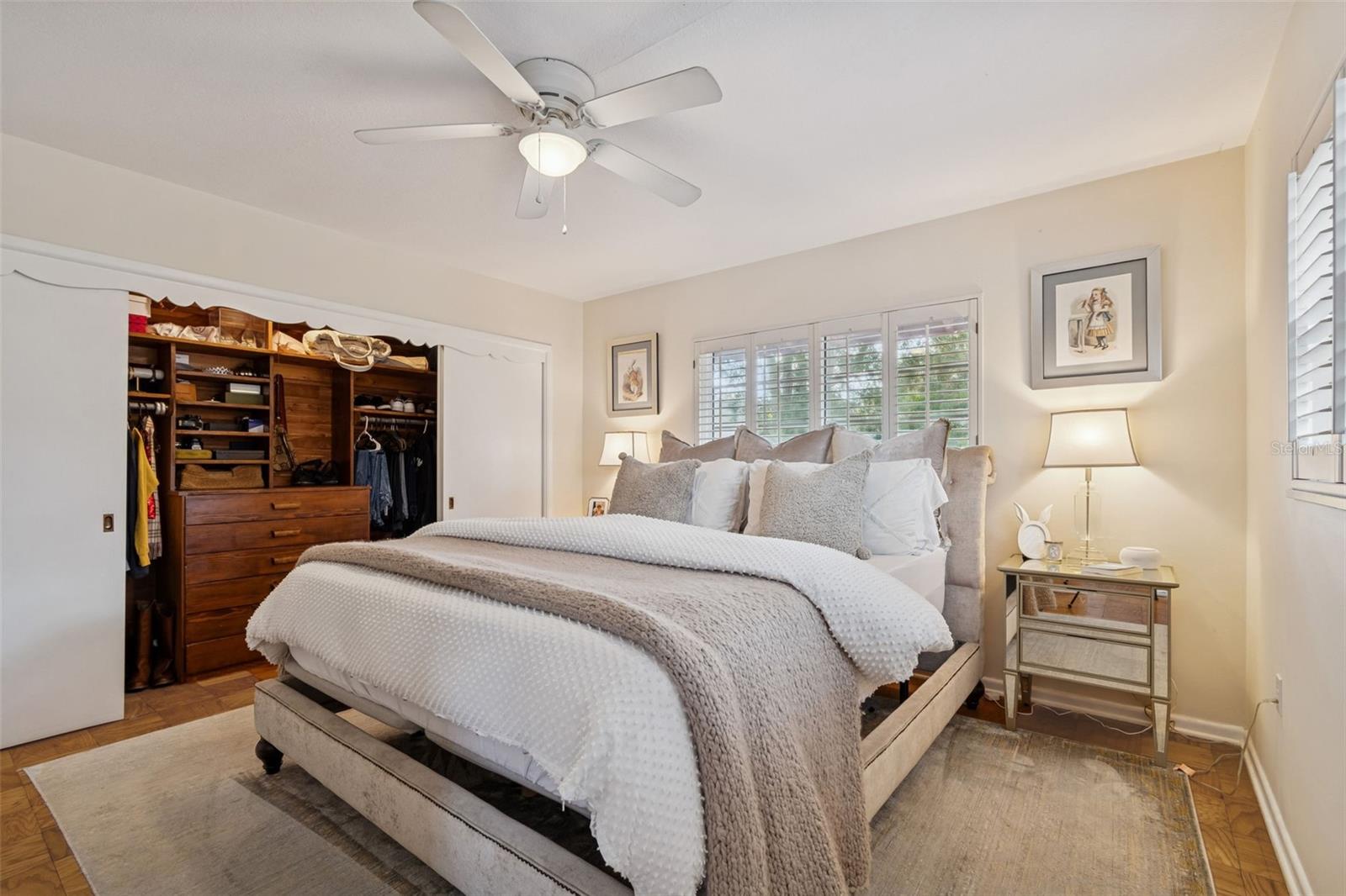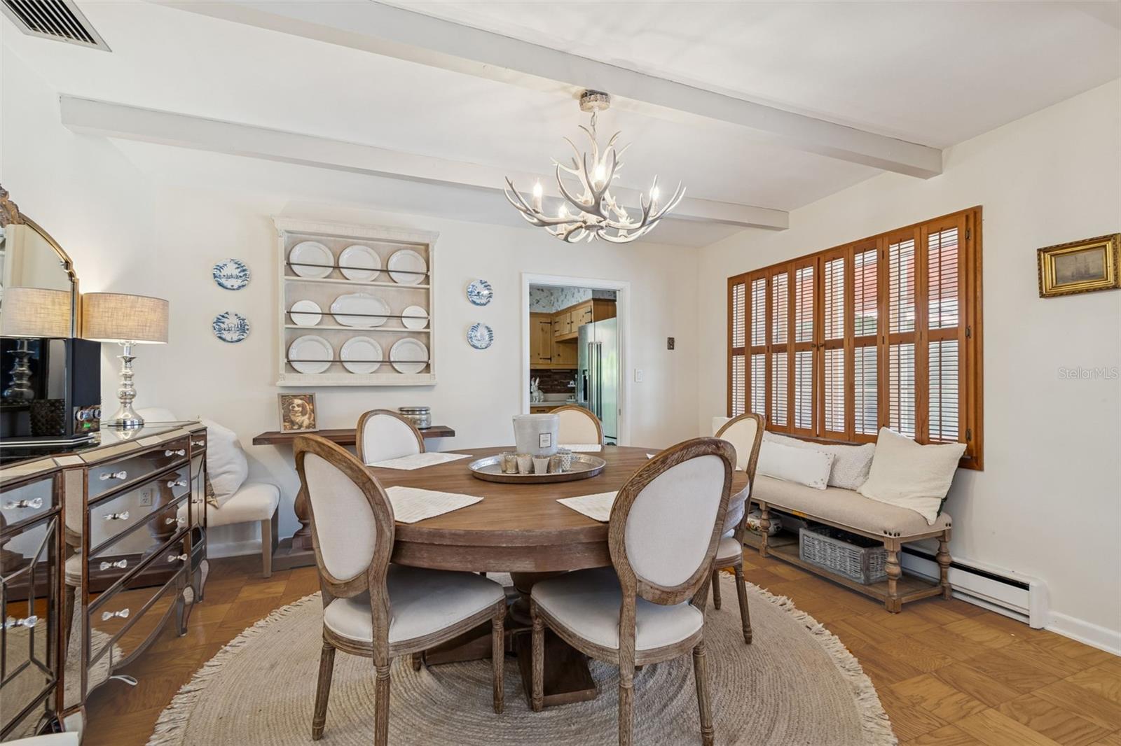 No Flood Zone - No Storm Damage! Nestled beneath mature trees on a generous double lot in one of Tarpon Springs’ most charming neighborhoods, this classic 3-bedroom, 2-bath cottage offers a rare combination of character, space, and peace of mind. With timeless brick architecture, a welcoming front porch, and thoughtful details throughout, this home immediately stands apart—beginning with the fact that it is not in a flood zone and was not affected by recent storms. The curb appeal is undeniable. A handsome brick façade, brick planters, and a built-in porch bench create a warm, inviting presence, while the huge driveway, adjacent double carport and attached storage shed that provides exceptional parking, storage, and flexibility. The expansive lot, framed by mature trees, offers privacy and a sense of permanence rarely found today. Inside, a beautiful entry foyer opens to a spacious formal dining room, perfect for gatherings both large and small. To the left of the foyer, you’ll step down just two steps into the home’s showpiece: an enormous sunken living room rich with character. Tall ceilings with exposed structural beams, real wood paneling, and a striking brick, wood-burning fireplace create a space that feels both dramatic and deeply cozy. Mini wood shutters filter natural light and add to the room’s timeless charm. Beyond the dining room, the kitchen blends warmth and functionality with solid pine cabinetry, a brick backsplash, electric cooktop, and built-in oven. A charming breakfast nook with a built-in corner booth provides a comfortable spot for casual meals, morning coffee, or a gather space for friends and family while entertaining. Nearby, the laundry area is neatly tucked away with upper cabinets for convenient storage. Down the hallway, you’ll find a large hall closet and pull-down access to a huge attic, offering abundant storage options. The primary bedroom serves as a relaxing retreat with space for a king-size bed, parquet flooring, and windows on two adjacent sides that fill the room with natural light. White plantation shutters and a large cedar-lined built-in closet add both elegance and practicality. The nostalgic primary bathroom, featuring classic gray and yellow tile and a walk-in shower, perfectly complements the home’s cottage character. Two guest bedrooms continue the theme of warmth and craftsmanship. The front guest room is oversized, featuring parquet floors, paneled walls, wainscoting, and mini shutters—ideal for guests or a home office. The second guest bedroom offers light from two sides, white plantation shutters, a large wall closet, and hand-made bookshelves that add a unique, personal touch. The guest bathroom features charming vintage finishes and a built-in vanity. Throughout the home, double-pane hurricane-rated windows enhance comfort, safety, and efficiency while preserving the peaceful interior atmosphere. Located in the desirable area of Inness Park, this home offers easy access to everything that makes Tarpon Springs so special—from the beautiful Historic District to sponge docks and Greek dining to waterfront parks, shopping, and nearby Gulf beaches. With convenient access to the greater Tampa Bay area, including major airports, this light-filled, cozy cottage delivers timeless charm, generous space, and an exceptional lifestyle in one of Florida’s most beloved coastal communities. Kitchen refrigerator does not convey.