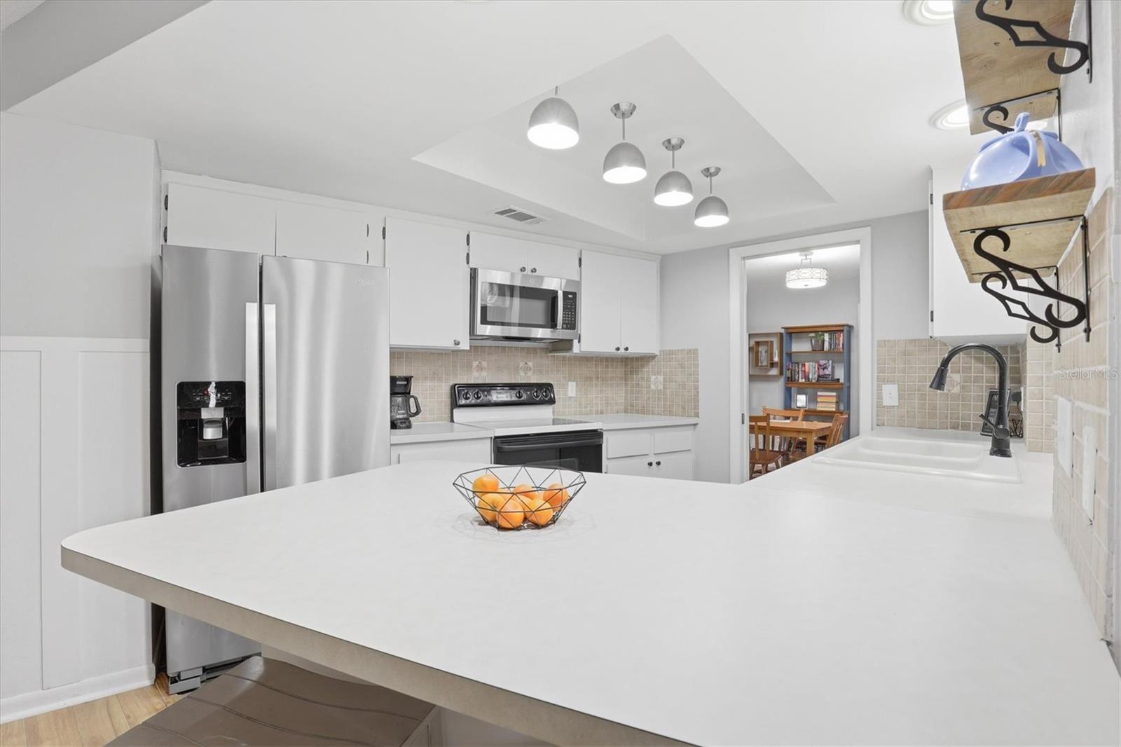 Tucked away on a quiet street in the hidden treasure community of Loch Haven, this charming 3 bedroom two bathroom Tarpon Springs home radiates warmth and comfort in every room. The inviting family room serves as a wonderful gathering space, featuring a large bay window, easy-care laminate flooring, and sliding glass doors that lead out to an enclosed porch perfect for entertaining. The well-equipped kitchen offers a convenient pass-through to the porch, a breakfast bar and opens into a formal dining room, where a picture window framed with custom treatments allows natural light to fill the space. For the owners, the private master suite provides a peaceful retreat, highlighted by rustic sliding barn doors that open to a beautifully finished en-suite with a tiled shower, dual sinks, and a walk-in closet. The functional layout also includes a convenient laundry room with a utility sink and extra storage, providing easy access to the garage. Outside, the large fenced backyard serves as a private oasis with a dedicated garden area and a shaded fire pit, offering the perfect backdrop for your landscaping dreams. This home is a true gem featuring a 2012 HVAC system, a newer garage door, roof 2022 and water heater 2024. Its prime location puts you just minutes from downtown Tarpon Springs, the historic Sponge Docks, local beaches, and Fred Howard Park. Best of all, this property requires NO FLOOD INSURANCE and has no HOA or deed restrictions, offering you total freedom in a sought-after neighborhood.