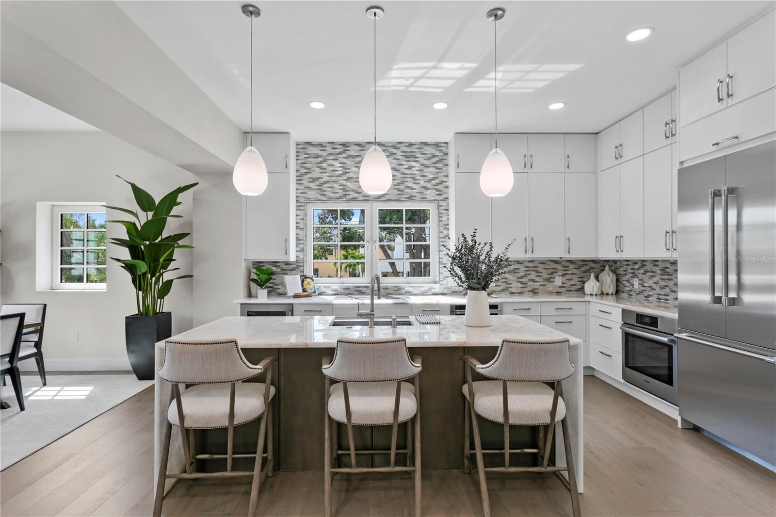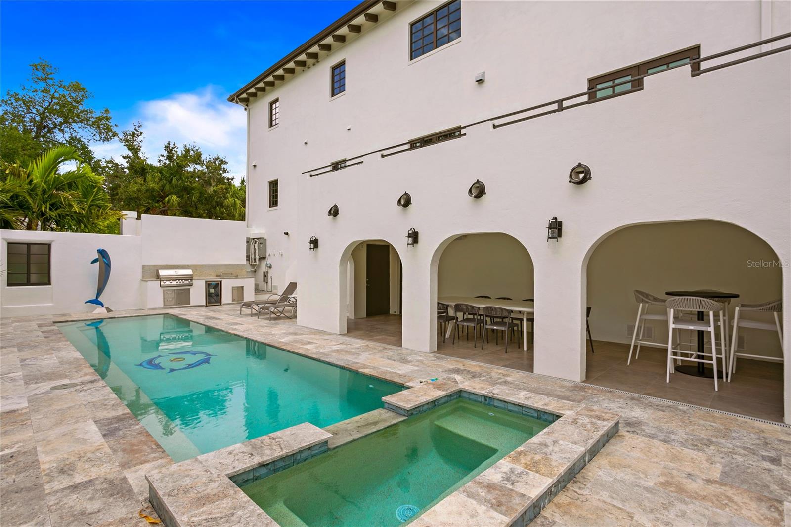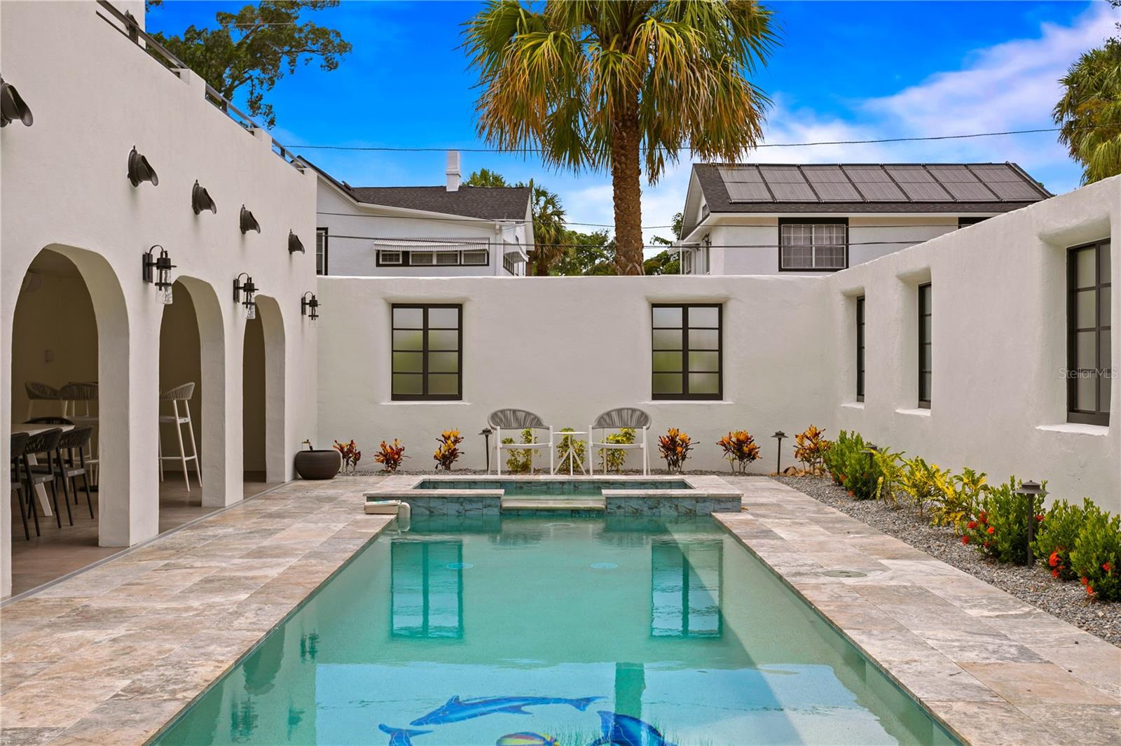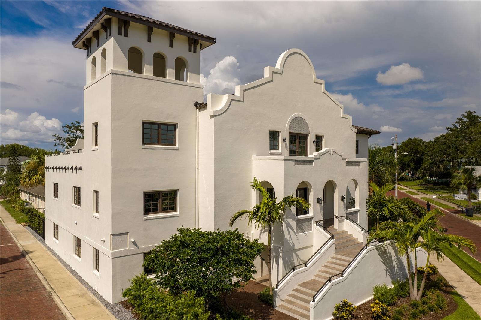 Are you looking for that hidden jewel of a place to live that has modern conveniences and old-world charm of Europe? Then we welcome you to Tarpon Springs to see this beautiful Mediterranean 12,000-square-foot villa in the historic district. Enjoy beautiful walks around the bayous, active saltwater life, breathtaking sunsets and many other historic homes brought to life. You will not see high rises here in this sleepy town that provides solace from the chaos and traffic we experience in the "real world". This is a once in a lifetime opportunity to own one of Tarpon Springs historical gems originally built in 1926 as Tarpon's First Baptist Church. It has been resurrected by the owner into a Mediterranean mansion, with two luxurious fully furnished five-star homes within it, with each key bedroom having its own balcony. This property holds over 7,000 square feet of air-conditioned, modernized living areas and every smart home feature one could possibly desire. On the first floor there's a 4,000-plus-square-foot garage that can handle up to 12 vehicles for the prestige car collector, plus additional spaces for a game room, gym or workshop. The best views in all of Tarpon can be had from the Bell Tower! You can live like royalty in your own private curved-walled resort or enjoy your spa-like outdoor living area that features a heated lap pool with spa, outdoor kitchen, lounging areas and covered patio with Wi-Fi and surround sound just waiting to be played. Go just outside your home and immerse yourself in this historic Greek-cultured town offering some of the best international food in Florida. Both downtown and the sponge docks have boutiques, breweries and gift shops in abundance, and are within a short walk. Two beaches are within a five-minute golf-cart drive, Spring Bayou and Craig Park are all within distance too. This beautiful white historic structure was designed to create the feeling of living in an opulent villa on the Greek Island of Kalymnos where many of the Greek in Tarpon originally came from in the late 1800s and continue to come. Tarpon is proud to have the largest percentage of Greek Americans in the U.S. Tarpon Springs will always retain this Greek culture and is one of the few towns in America where this international culture is available to enjoy into perpetuity. 160 Read Street home can easily service the needs of the most modern of families or is also ideal as a multi-generational home where all your family and friends can visit, and all of you can retain your privacy when desired. All rooms in this home are an opulent size reminiscent of the stately mansions in Europe, but with warmth created by the beautiful interior furniture and art pieces, most of which are included in the sale. This smart home features Lutron lighting, electric gates, a security system and entertainment system throughout the home, garage and pool areas. Lastly, everything of importance in this home is new and no detail was overlooked from the 50-year metal roof to the high-end appliances. This is a must-see for you, you will find that this dream could be your reality. Call and schedule your private tour today.