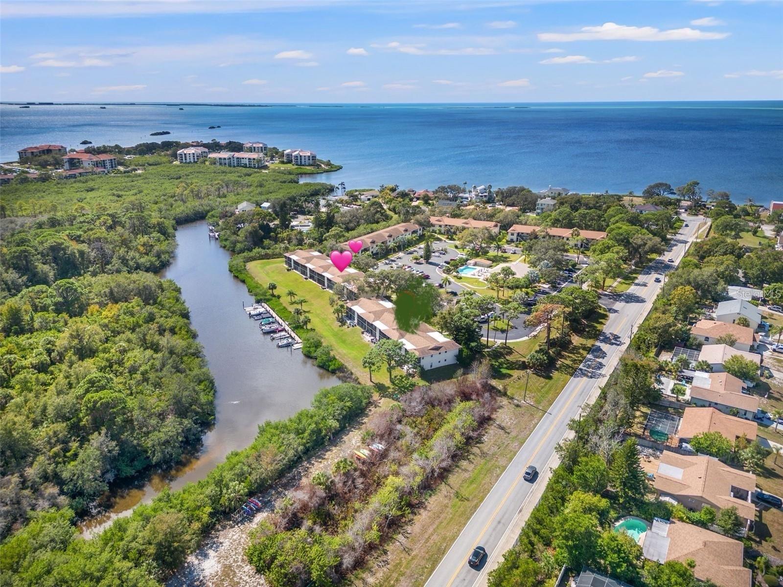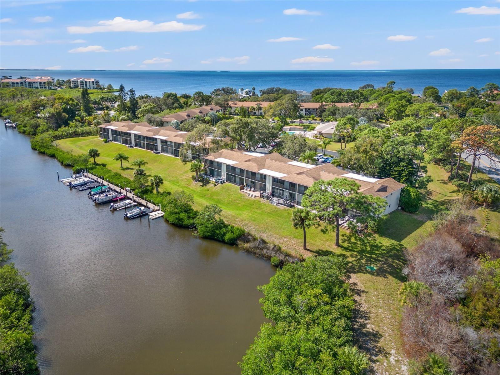WOW!! WHAT A GORGEOUS AND RELAXING PRIVATE VIEW!! You won’t want to miss this super deal in the All Ages, Pet Friendly Waterfront and private, no rear neighbors preserve view! NO FLOOD ZONE! As you enter you will see right through to the beautiful waterway which accesses the Gulf and nature! You will be drawn out to the screened patio that traverses the width of the condo and accessible via sliding glass doors. Imagine morning coffee or book reading here! This is a 2/2 condo boasting light bright high vaulted ceilings you can only enjoy being a 2nd floor unit. Inside laundry room so no taking laundry out, 1070sf, open floor plan, split bedroom with the primary master bedroom also facing the beautiful waterway with sliding door access from this bedroom. The master en-suite has step in shower and a big walk in closet. Comfortable guest bedroom and hall bath at the front. You won’t miss the views while in the kitchen either! It features a large breakfast bar, big closet pantry, solid wood cabinets that easily can be painted, and all the conveniences. Enjoy watching the fish jump, sea birds soaring, occasional dolphin or manatee visits. If you enjoy kayaking there is a storage rack with water access and direct paddle access to the Gulf in minutes! There is secured Bike storage room in the community so you can enjoy leisure rides to nearby Sunset Beach or Fred Howard Park. Tile flooring in main areas, carpet in guest room and newer LPV in the master bedroom. NEAT and CLEAN and ready for you to enjoy full time, as a vacation get away or investment! Seascape condos enjoys a perfect location for easy travel to the beaches nearby, Tarpon Sponge Docks for dining and shopping, Dunedin Honeymoon Island park beach and the downtown. Innisbrook PGA Golf Course also very nearby for golf lovers! Clearwater Beach or the Airport or hospitals all within 30 minutes. HOA Fee is $489.50 and covers your water, sewer, trash, cable TV and Internet.