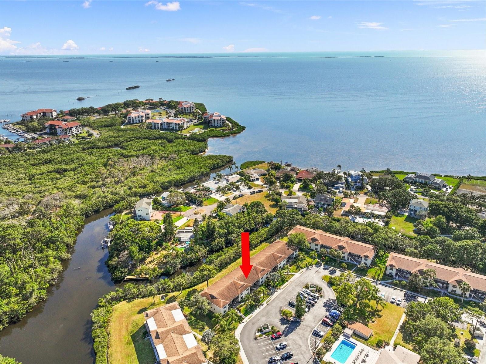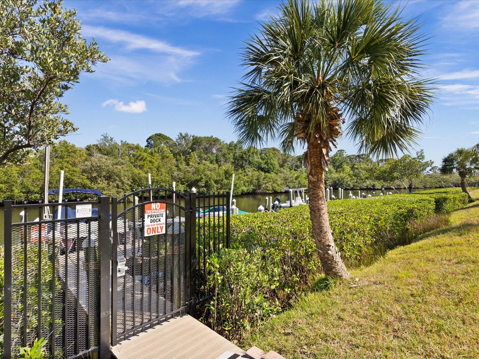 BOAT DOCK-GULF ACCESS!!! Rarely available! Welcome to a meticulously maintained FULLY FURNISHED 2-bedroom, 2-bathroom condo nestled in a serene waterfront community boasting Gulf access. Situated in a peaceful enclave of just 68 units, this property offers an all-ages environment with a low HOA fee and a warm embrace for your furry companions. What sets this apart? Your very own private deeded boat slip, awaits – a dream for any boating enthusiast! Launch your boat within minutes for a leisurely fishing expedition or to witness breathtaking sunsets over the Gulf. Indulge in dining experiences or escape to popular destinations like Anclote Island for a tranquil retreat. Recently renovated, the dock provides water access, fish cleaning facilities, and exclusive usage for only 14 fortunate dock owners. Emanating a sense of tranquility, this ground-floor unit offers captivating views of the estuary creek and nature preserve from the moment you step inside. Revel in the screened patio – an idyllic spot to savor sunrise vistas, feel the gentle Florida breeze, observe marine life, or catch a glimpse of playful dolphins. The generously sized master suite, featuring a walk-in closet, en-suite bathroom with a step-in shower, and ample vanity space, also opens onto the patio. For added privacy, the split bedroom layout ensures comfort for guests. With tiled flooring, carpeted bedrooms, and vaulted ceilings, the interior exudes an airy ambiance. Community amenities abound, including kayak storage, bicycle racks, a heated pool, an inviting clubhouse with an exercise room, and a welcoming neighborhood atmosphere. Conveniently located 1-2 miles from Sunset Beach, Fred Howard Park Beach, and the Tarpon Sponge Docks, this residence offers easy access to an array of dining, shopping, and recreational options. Plus, rest easy knowing you're not in a flood zone! HOA fees cover water, sewer, trash, cable TV (including Disney+), and internet services. Whether you seek a winter retreat or year-round blissful living, this is an unparalleled opportunity for carefree coastal living.