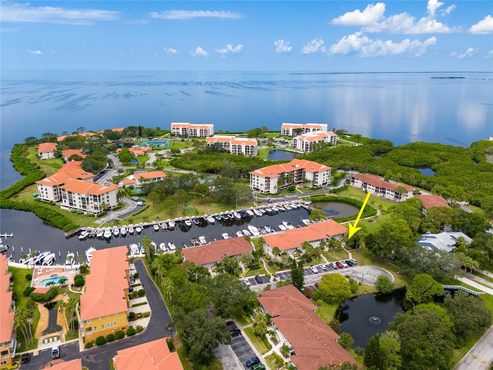 This desirable end-unit condo is light and bright, featuring 2 bedrooms, each with its own en suite bathroom. The condo has easy care tiled floors throughout, upgraded kitchen cabinets, and Black Slate Samsung stainless steel appliances. The guest bedroom is thoughtfully designed with built-in shelves and a Murphy bed, while the primary bedroom offers stunning views of the water and marina. You'll appreciate the ample storage in the primary bedroom, including two closets—a walk-in and a beautifully updated bathroom. Floor-to-ceiling sliding doors provide a full view of the marina, and a spiral staircase leads directly from your unit to the docks. The condo also features a welcoming front courtyard, perfect for relaxing and unwinding. Additional conveniences include a large pantry, a spacious laundry closet with a water softener, and a reverse osmosis filtration system. Located on a Gulf-front peninsula, Tarpon Cove offers a maintenance-free lifestyle with top-tier amenities. As you enter through the 24-hour gated entrance, you’re greeted by beautifully landscaped grounds. The community includes a nature trail, a 61-slip marina, two pools, a hot tub, tennis courts, a clubhouse with a fitness center, and BBQ areas. The clubhouse serves as the social hub, with seating for 80, a media system, dance floor, and kitchen. Nearby, a large pool and Jacuzzi provide relaxation, while a smaller pool near the marina offers a peaceful swim. Boaters will love the deep channel with no bridges, providing quick access to the Gulf of Mexico. The marina offers low monthly fees, covering electricity and water, and boat slips are available for lease on a first-come, first-served basis. Additional amenities include a fishing pier, fish cleaning station, and kayak storage with a launch. Explore nearby sandbars and islands, including award-winning Honeymoon & Caladesi Islands, Anclote Island with its lighthouse, and Three Rooker Island. The location is ideal—just minutes from beaches, golf courses, restaurants, and downtown Tarpon Springs, known for its historic Sponge Docks. Dunedin, Fred Howard Beach, Sunset Beach, Clearwater Beach, and two major airports are also within easy reach. Quarterly condo fees cover cable, internet, water, sewer, trash, reserve funds, management, roof, exterior painting, grounds maintenance, guard gate, pest control, and building insurance, including flood insurance. Tarpon Cove is also small pet-friendly. Experience the serenity of Gulf Coast living in your new Tarpon Cove home. Schedule your private showing today—you won’t be disappointed!