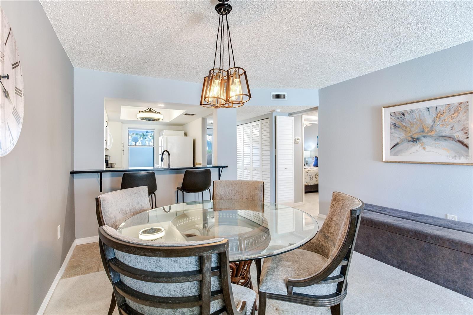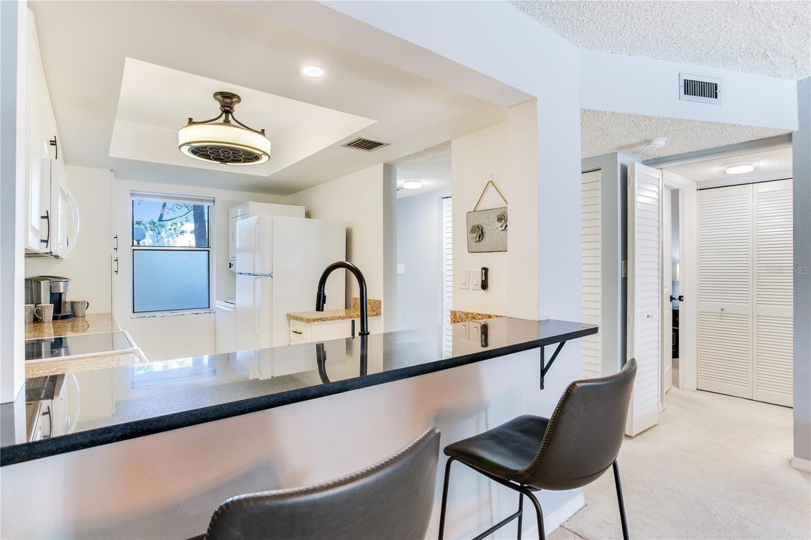 FULLY FURNISHED MOVE-IN-READY CONDO LOCATED IN THE BEAUTIFUL LAKE TARPON SAIL & TENNIS CLUB. THIS HOME HAS BEEN WELL CARED FOR. Upon entering this furnished two bedroom two bathroom 970 sqft you will find a beautifully updated kitchen with ample storage granite countertops and all white appliances a eat at bar great for entertaining. This open floor plan is filled with natural light! The dining room is conveniently located close to the kitchen and passthrough. The living room is large in size. Off the living room you have a Florida Room which is not included in the square footage but if you open the sliders you get plenty of air conditioning to utilize the space all year long, a wonderful bonus. The primary is a great size with an updated ensuite bathroom. Guest room is equipped with two closest and in the front of the unit giving your guest their own space. The guest bathroom has also been updated. This beautiful unit comes with one covered parking space and ample guest parking. Easy access to the pool and community amenities include tennis and pickleball courts, fitness center, ramp to launch kayaks & canoes. Enjoy the beautiful scenery of Lake Tarpon. Close to shopping, bike trails & the Gulf of Mexico beaches.