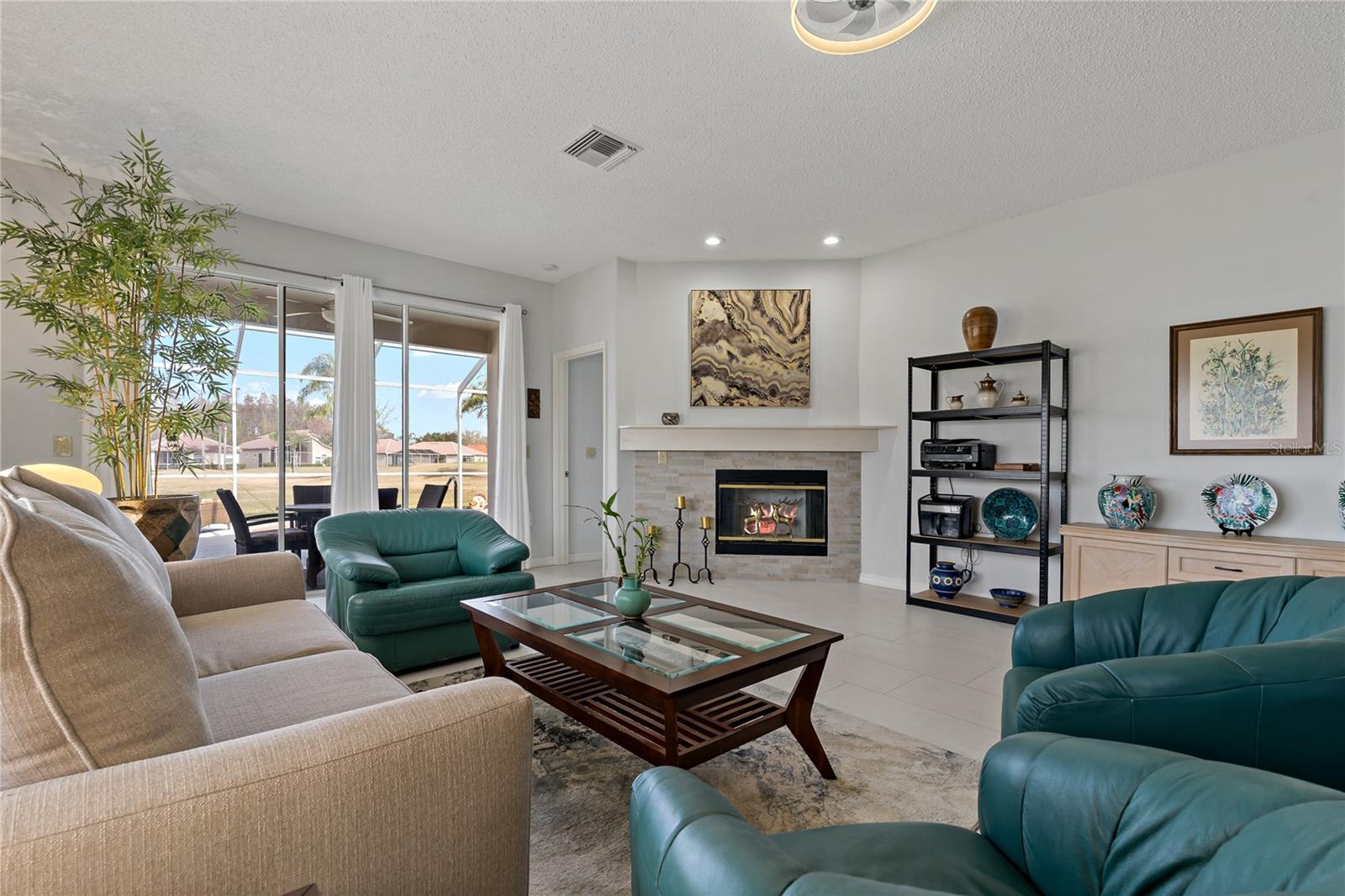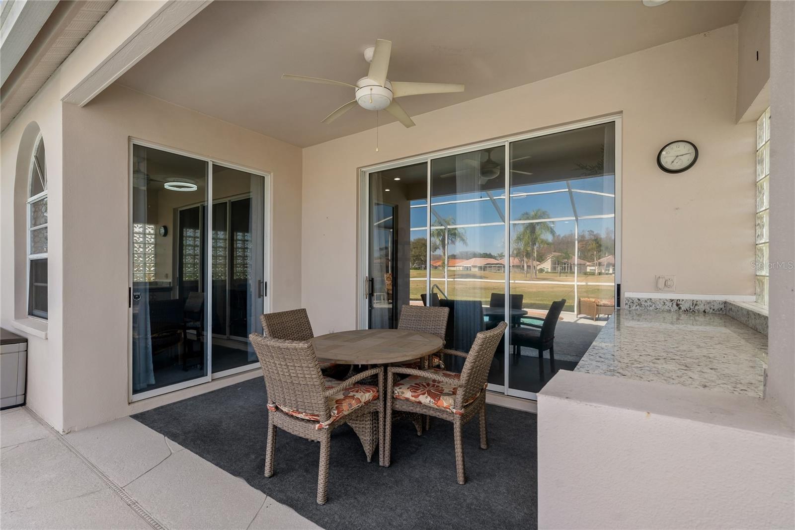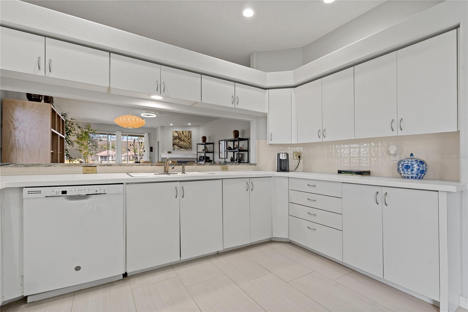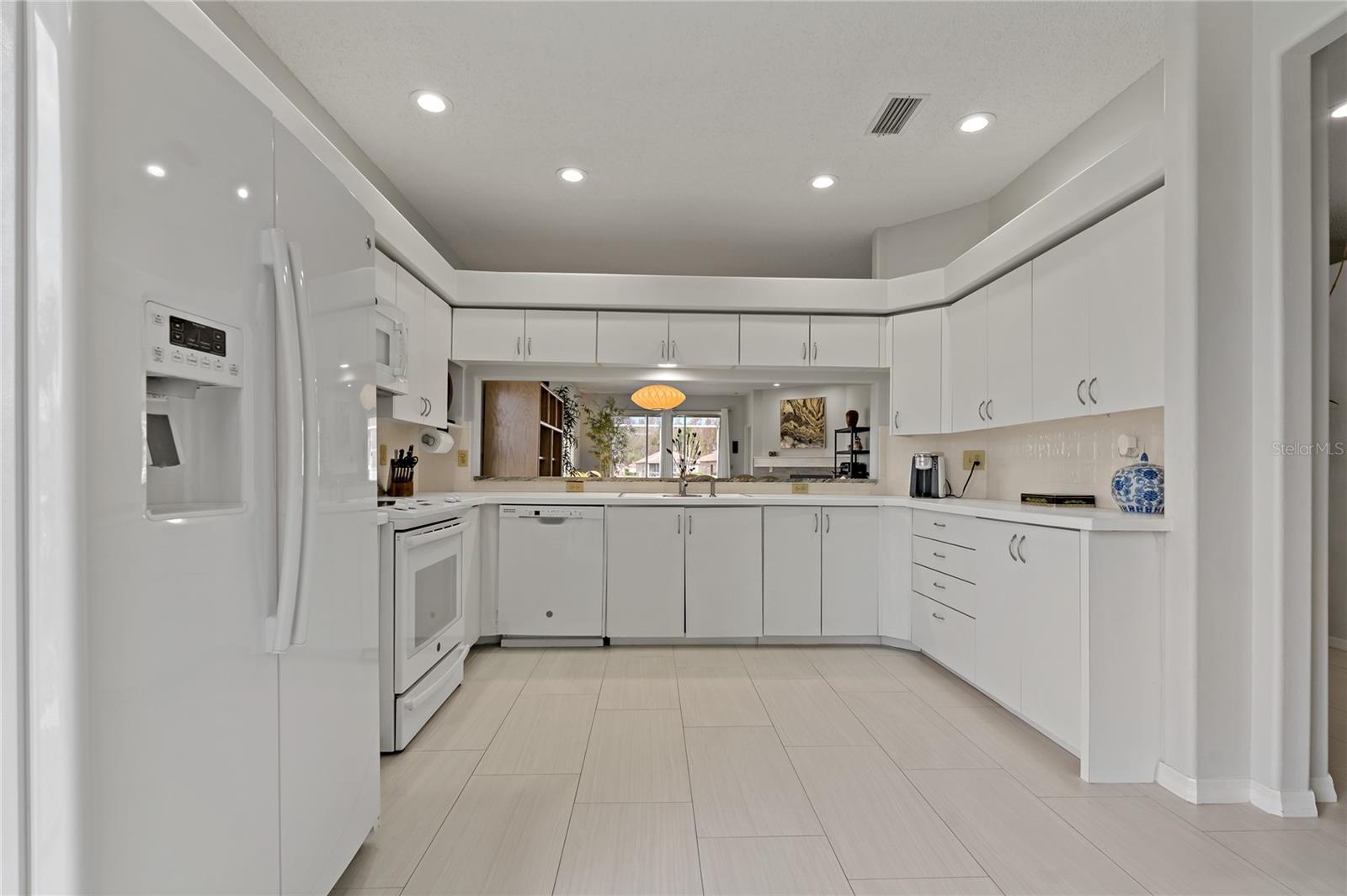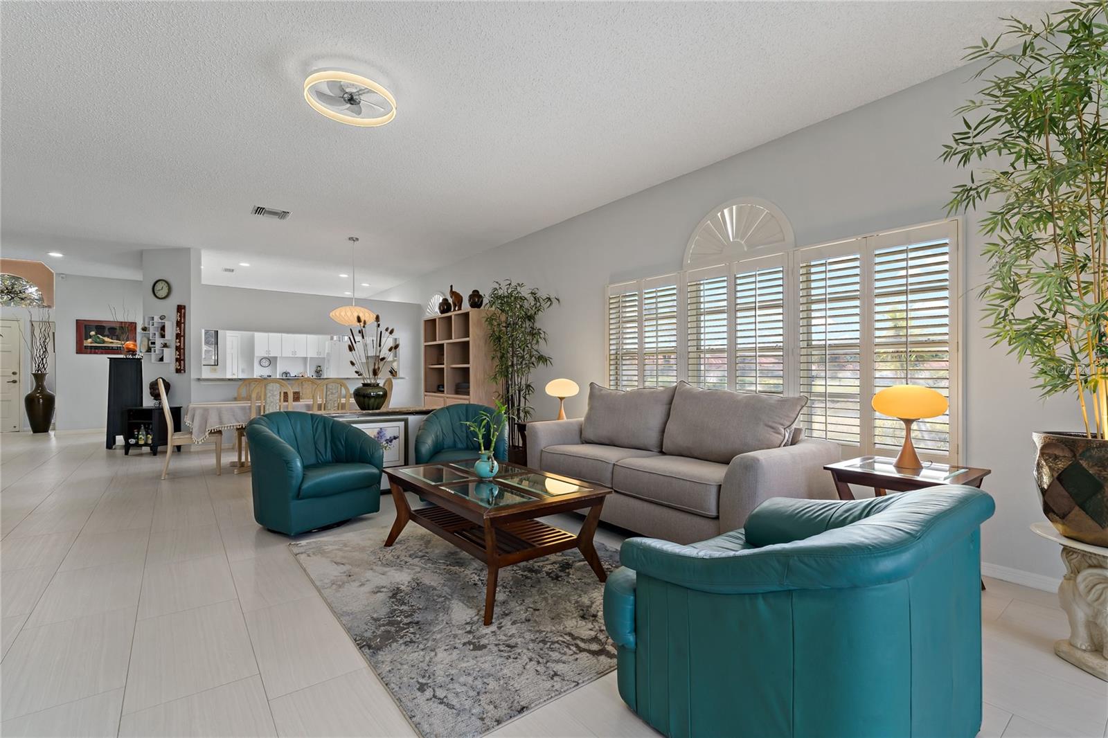 Exquisite Villa for Sale on Large Lot with Water Views on the 17th Hole of Crescent Oaks Golf Course Awaits You! This unique end lot, boasting vast amounts of land on each side, is a rare find within the community. This 1996 sf. home features an open floor plan that includes 2 bedrooms, 2 full baths, a den (can be converted into the 3rd Bedroom), and a private swimming pool. The large kitchen is outfitted with an abundance of cabinets and countertop space, plus a dinette area that overlooks the pond. Modern, large porcelain tiles provide easy maintenance throughout the entire flooring system. Step onto the lanai and bring the outdoors in with the pocketing sliding glass doors. The covered area is large enough to accommodate a patio table with chairs and includes a dry bar. The pool, surrounded by nature, complements a separate side pad that is perfect for additional seating and a BBQ area. Recent upgrades to the property include a hot water heater (2024), A/C (2022), tile roof (2009), and appliances (2018). Enjoy the benefits of low HOA fees and no CDD fees. Crescent Oaks is a 24/7 guard-gated golf community that not only offers a safe and fun place to live but also provides an array of amenities to enjoy year-round, including an 18-hole golf course, pickleball, tennis courts, a restaurant, a bar, and a banquet facility. Conveniently located close to several local beaches, eateries, shops, and attractions, and just a 30-minute drive from Tampa International Airport (TIA) and St. Pete-Clearwater International Airport (PIE). The property is also near Tarpon Springs' world-famous Sponge Docks. Don’t delay in scheduling a showing, as pool homes in this development tend to sell quickly!