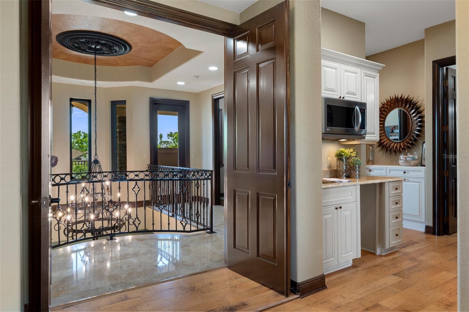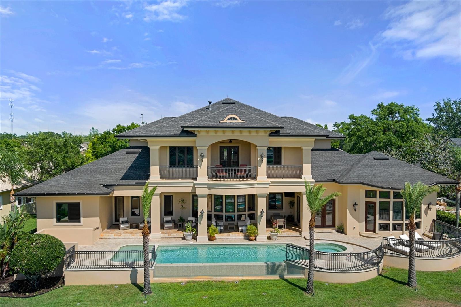 Discover elegance, comfort, and serenity in this stunning 4-bedroom + den/office, 4.5-bathroom estate with 4-car garage, located in the highly sought-after Wentworth Golf Community. Set within a private, gated enclave known for its championship golf course—expertly designed by renowned architect Steve Smyers (also behind Tampa’s acclaimed Old Memorial)—this exquisite home offers a lifestyle of sophistication and ease. From the moment you step inside, you’re welcomed by soaring ceilings, a private elevator, and expansive, open-concept living spaces adorned with premium finishes. The heart of the home is the gourmet chef’s kitchen, featuring high-end stainless steel appliances (including a brand-new refrigerator), granite countertops, custom cabinetry, and a large center island—perfect for culinary creations and entertaining alike. The main living area flows seamlessly into the dining and lounge spaces, highlighted by oversized windows that flood the home with natural light and offer unobstructed views of the lush, manicured 16th tee box of the Wentworth Golf Club. Retreat to the luxurious primary suite taking over the complete 2nd floor. A private sanctuary featuring a serene sitting area, dual his / her California Closets, and a spa-like en-suite bath with dual vanities, an oversized open shower, and a custom copper soaking tub. While you're upstairs in the primary suite, feel free to step outside onto the front or back terraces and enjoy the Florida sunshine. Step outside to your personal oasis—a heated pool with waterfalls, spa, and shallow wading/lounge area perfect for sunbathing or family fun. The expansive covered terrace is overlooking the golf course and surrounded by tropical landscaping. It’s also pre-wired and plumbed for a custom outdoor kitchen. Whether you're entertaining guests or enjoying a quiet evening by the pool, this one-of-a-kind property provides the perfect backdrop for Florida luxury living. No need to leave home for a great workout—enjoy your own private gym, anytime. Relax and unwind in the comfort of your private media room—perfect for watching the big game with friends or hosting a cozy family movie night. Recent upgrades include: All-new double-pane hurricane-rated windows and doors (2022). New 50-year architectural shingle roof (2021). Zoned HVAC system (2019), Rainsoft water treatment system.