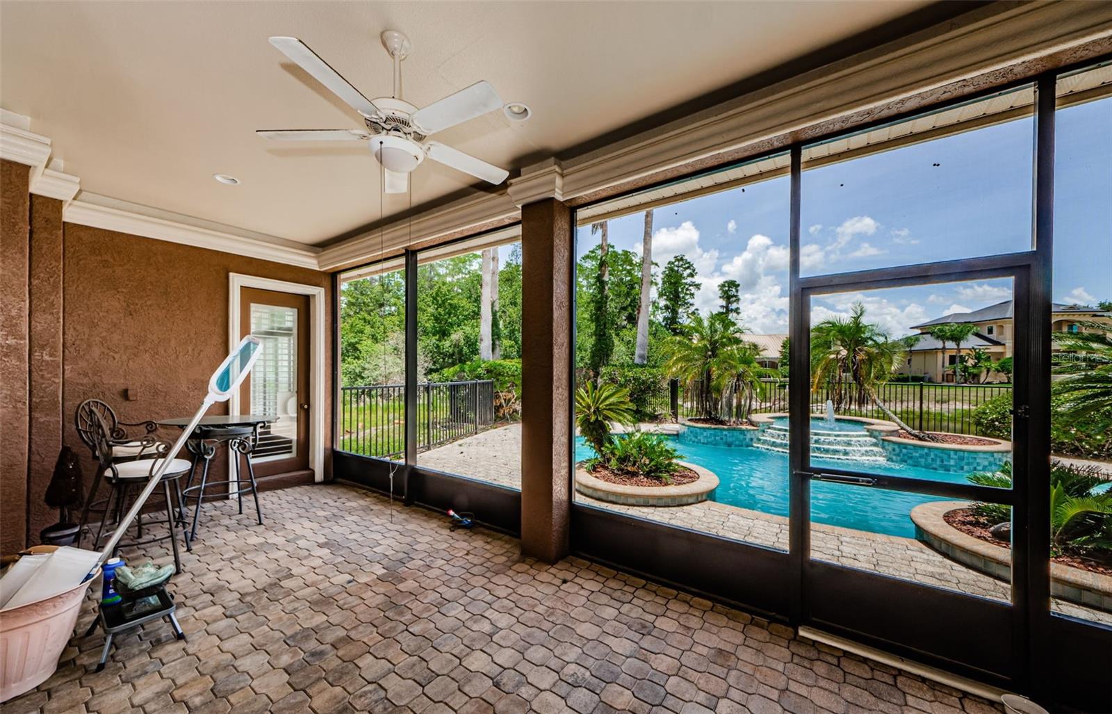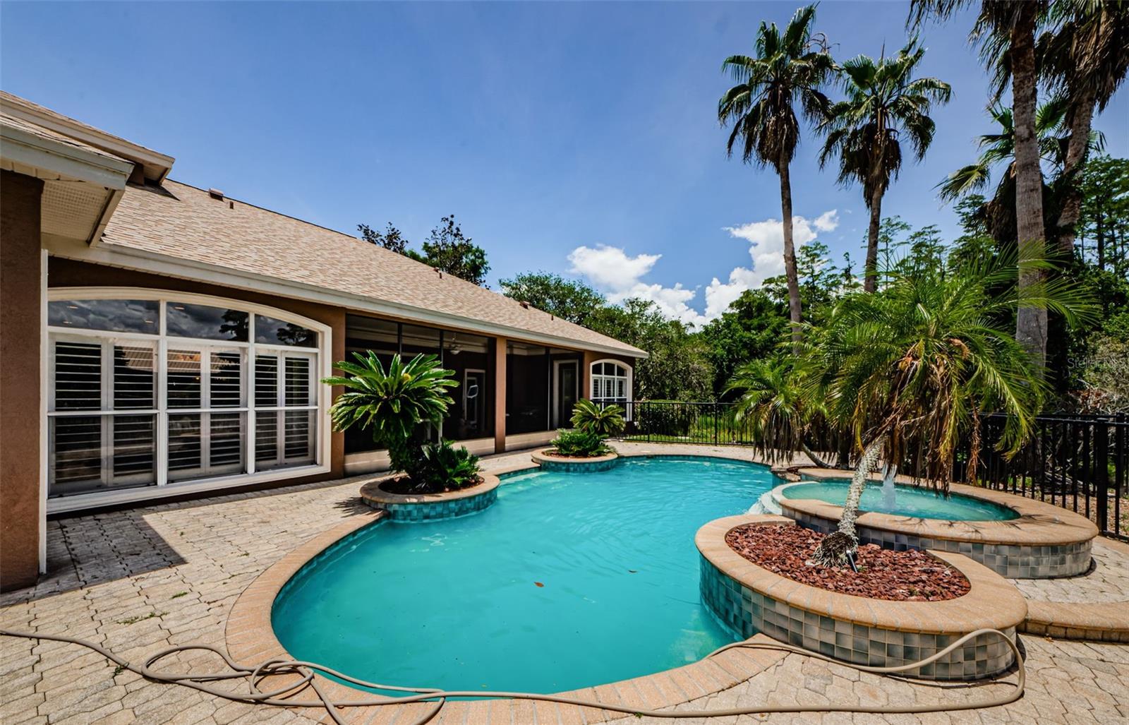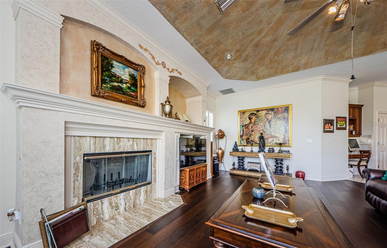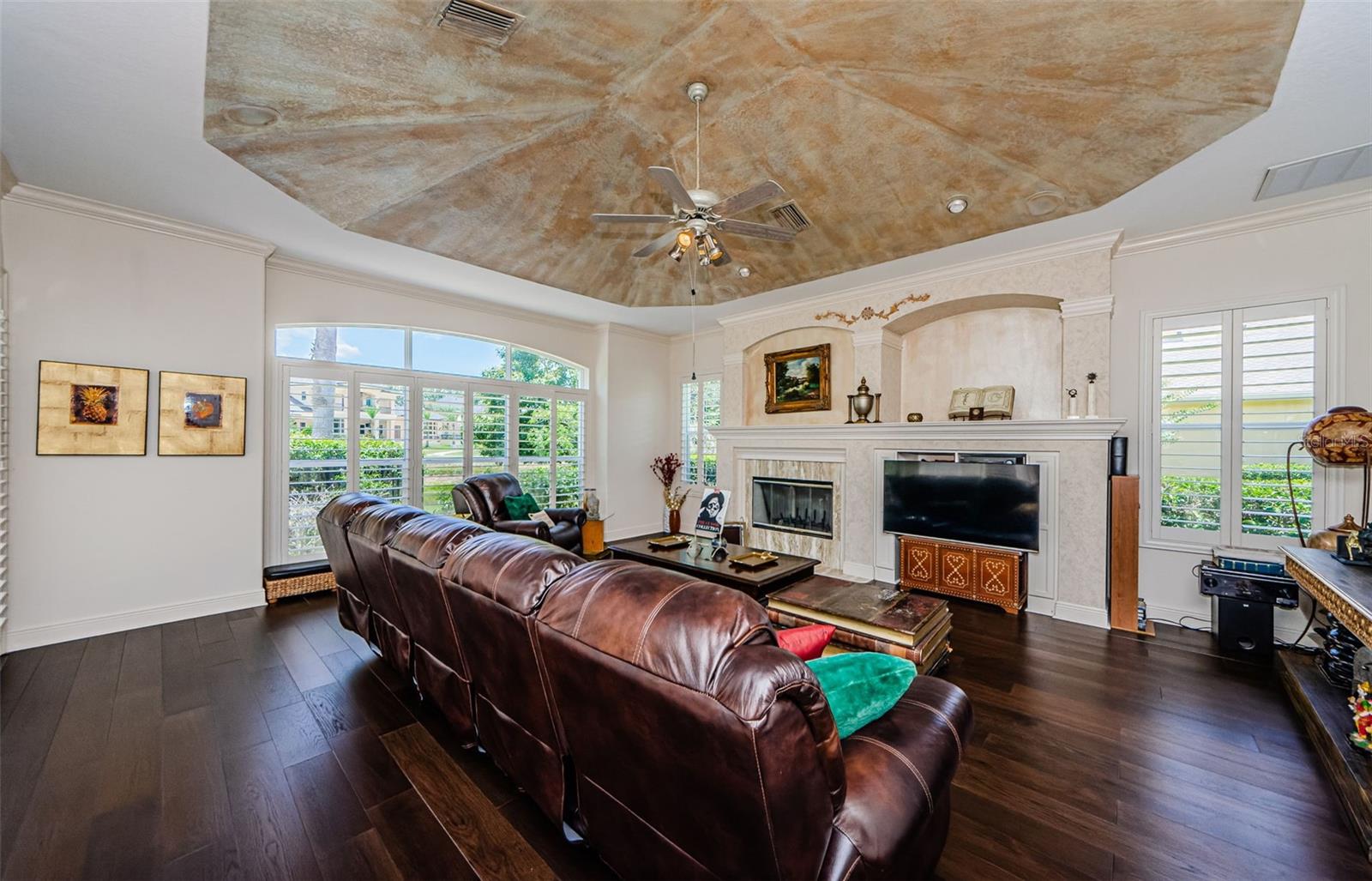 Welcome to this beautifully appointed 5-bedroom, 4-bathroom residence located in the exclusive gated golf course community of Wentworth in Tarpon Springs. Set on a generous 0.5-acre homesite with tranquil pond and golf course views, this nearly 4,000 SF home offers the perfect blend of luxury, functionality, and Florida charm. A grand double-door entry opens to sweeping views of the pool and spa, setting the tone for refined living. Inside, elegant features include crown molding throughout, tray ceilings in the formal dining and living rooms, and French doors that lead to the private outdoor oasis. The chef's kitchen is a showstopper—boasting granite countertops, stainless steel appliances, a gas range with custom hood, center island, breakfast bar, and rich wood cabinetry with crown accents. A cozy eat-in nook with plantation shutters overlooks the sparkling pool. The open floor plan flows seamlessly into the spacious family room with fireplace, perfect for entertaining. A private office at the front of the home is ideal for remote work. The luxurious primary suite includes a separate sitting area, two walk-in closets, and a spa-like ensuite bath with dual vanities, soaking tub, and oversized walk-in shower. Upstairs, you’ll find two generously sized bedrooms, a built-in desk in the loft, and a large bonus room—perfect for a media room, home gym, or play area. Step into a screened-in Florida room that overlooks the expansive pavered patio, and heated pool and spa surrounded by tropical landscaping—all with breathtaking pond and golf course views. A three-car garage offers ample storage. Wentworth residents enjoy a premier golf course, clubhouse dining, and the security of a gated community. Conveniently located near top-rated beaches, historic downtown Tarpon Springs, shopping, dining, and Tampa International Airport. This exceptional home is Florida luxury living at its finest—schedule your private showing today!