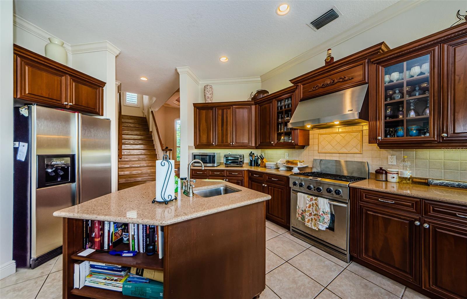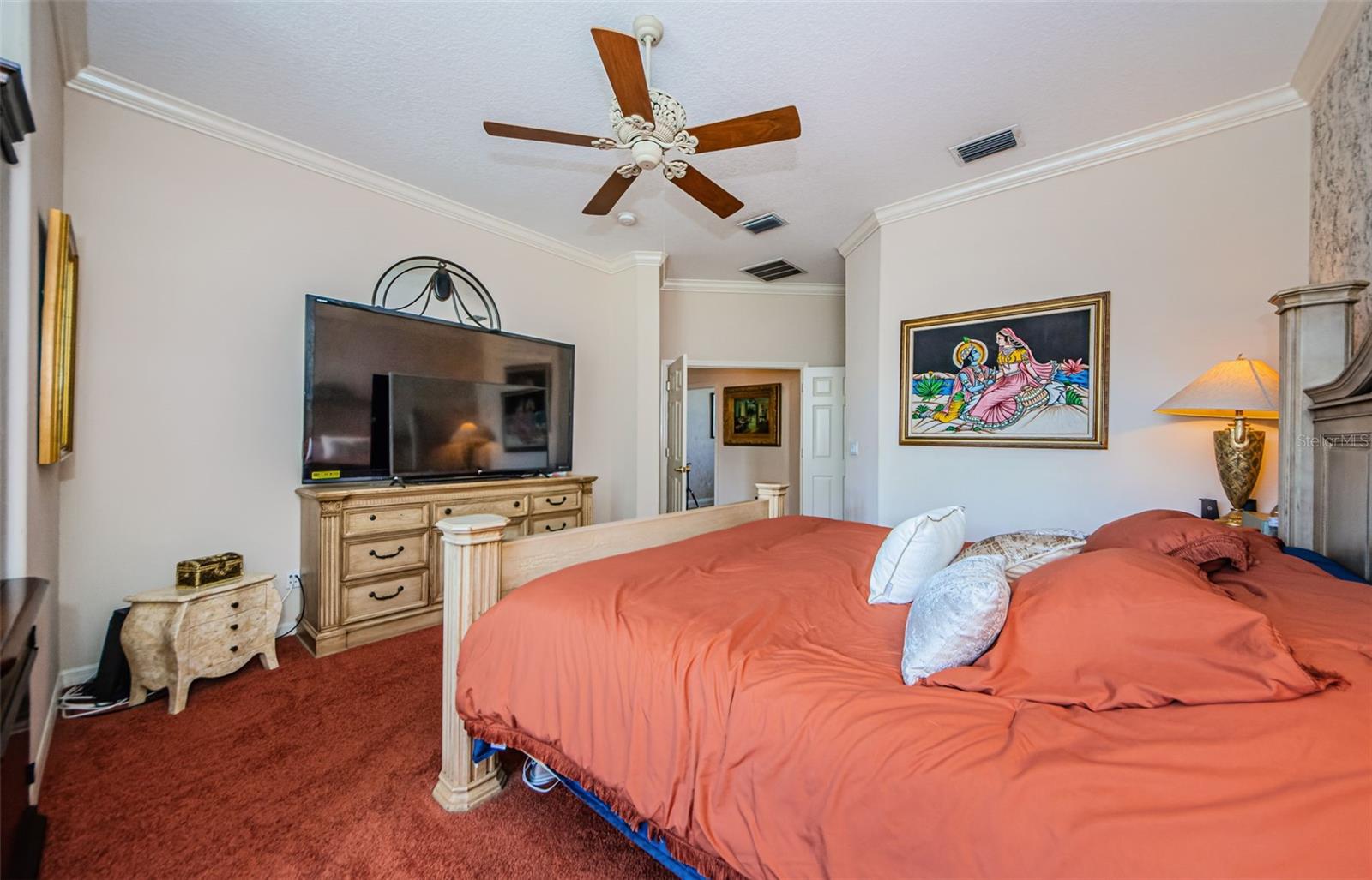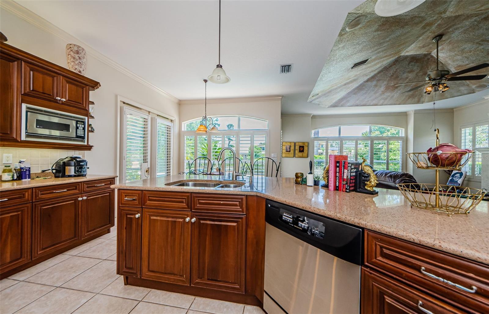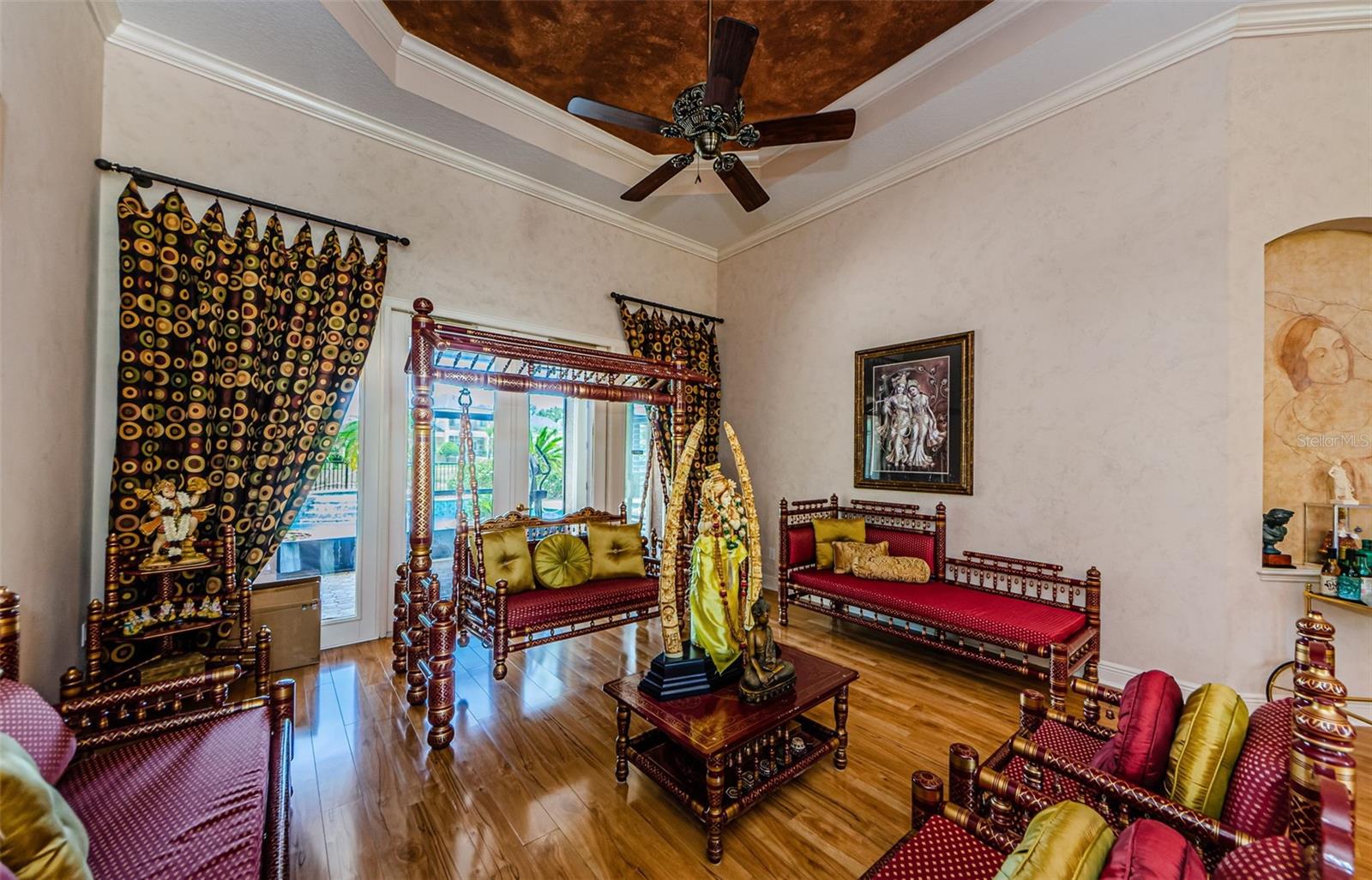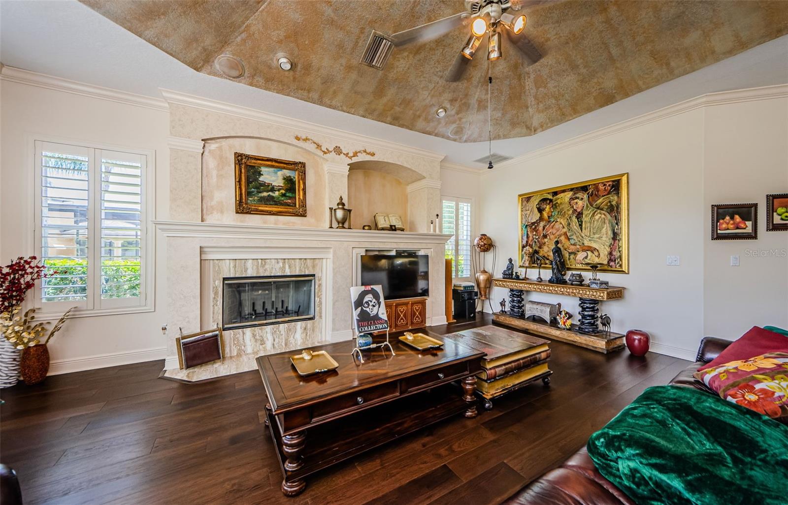 Welcome to this beautifully appointed 5-bedroom, 4-bathroom residence located in the exclusive gated golf course community of Wentworth in Tarpon Springs. Set on a generous 0.5-acre homesite with tranquil pond and golf course views, this nearly 4,000 SF home offers the perfect blend of luxury, functionality, and Florida charm. A grand double-door entry opens to sweeping views of the pool and spa, setting the tone for refined living. Inside, elegant features include crown molding throughout, tray ceilings in the formal dining and living rooms, and French doors that lead to the private outdoor oasis. The chef's kitchen is a showstopper—boasting granite countertops, stainless steel appliances, a gas range with custom hood, center island, breakfast bar, and rich wood cabinetry with crown accents. A cozy eat-in nook with plantation shutters overlooks the sparkling pool. The open floor plan flows seamlessly into the spacious family room with fireplace, perfect for entertaining. A private office at the front of the home is ideal for remote work. The luxurious primary suite includes a separate sitting area, two walk-in closets, and a spa-like ensuite bath with dual vanities, soaking tub, and oversized walk-in shower. Upstairs, you’ll find two generously sized bedrooms, a built-in desk in the loft, and a large bonus room—perfect for a media room, home gym, or play area. Step into a screened-in Florida room that overlooks the expansive pavered patio, and heated pool and spa surrounded by tropical landscaping—all with breathtaking pond and golf course views. A three-car garage offers ample storage. Wentworth residents enjoy a premier golf course, clubhouse dining, and the security of a gated community. Conveniently located near top-rated beaches, historic downtown Tarpon Springs, shopping, dining, and Tampa International Airport. This exceptional home is Florida luxury living at its finest—schedule your private showing today!