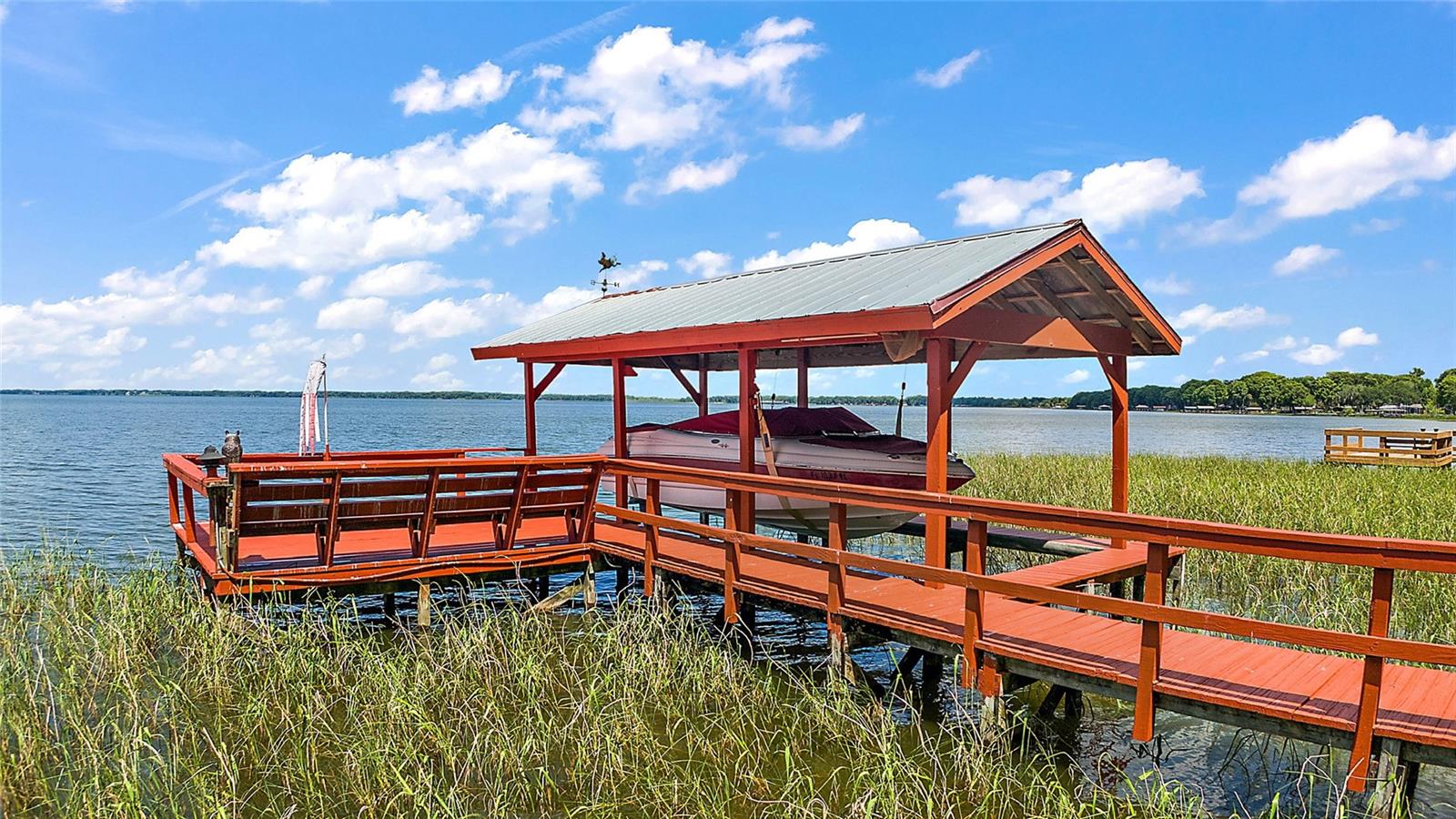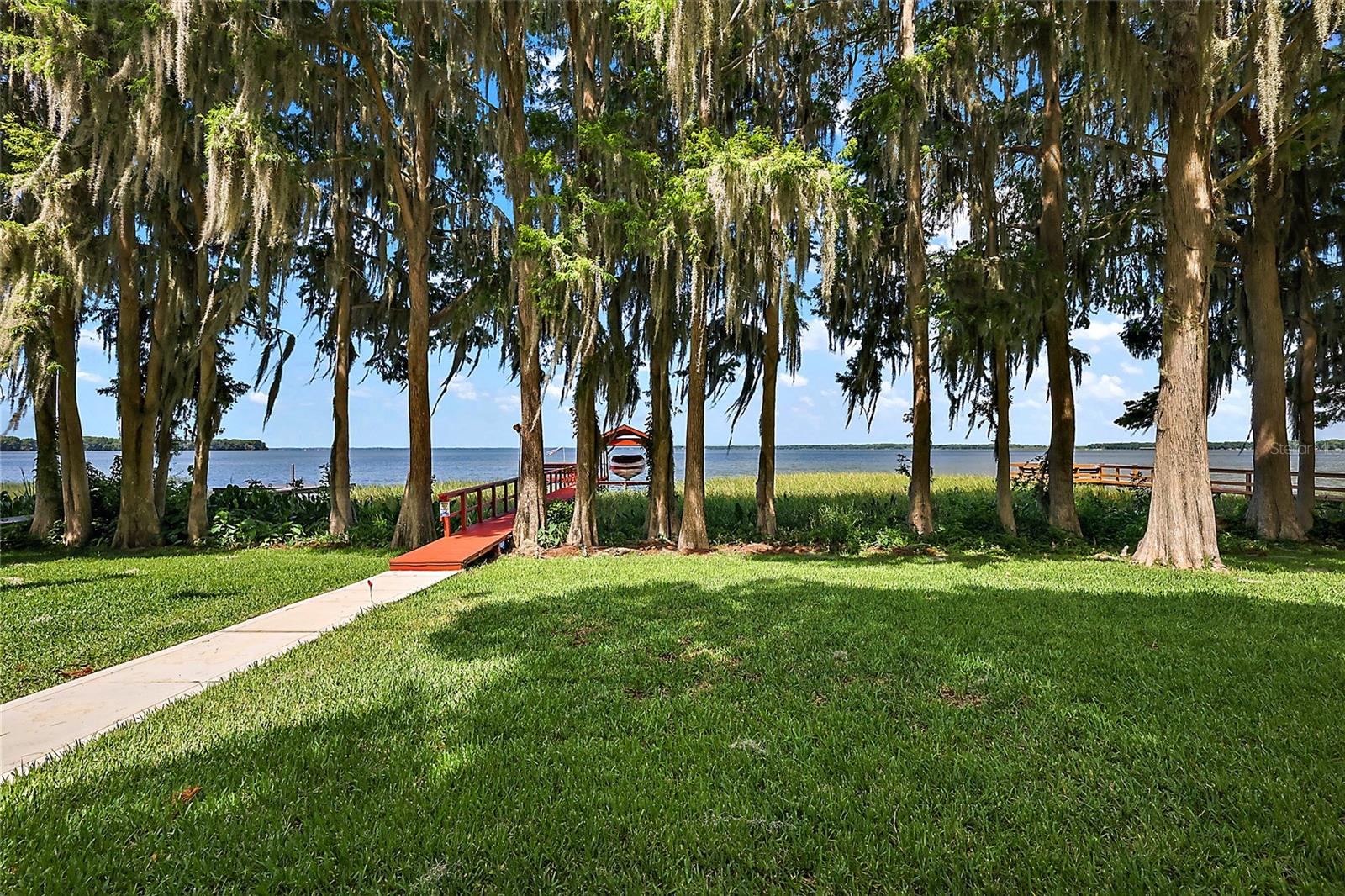 Lake Harris Lakefront Gem Experience the tranquility and beauty of this unique lakefront property on Lake Harris, complete with a canal to Dead River. Nestled on a serene peninsula, this home offers unparalleled privacy and natural surroundings. Key Features: No HOA: Enjoy the freedom and flexibility of a home with no Homeowners Association. Cost Savings: Benefit from lower county taxes, no city water bill, and irrigation from the canal that saves you thousands of dollars each year. Separate Mother-in-Law's Quarters: A rare find, the property includes a separate 432 sq ft living space perfect for guests or family, featuring a private bedroom, bathroom, and kitchenette. The main house boasts an open kitchen and family room, two bedrooms, and two bathrooms. Relax on the stunning front porch overlooking Lake Harris, perfect for enjoying breathtaking sunsets and the beauty of majestic cypress trees. Enjoy: Screened-In Above-Ground Pool: Relax with serene canal views. Nature and Entertainment: A picturesque backyard ideal for watching wildlife and entertaining guests. Prime Location: Minutes from downtown Tavares, the seaplane capital of the world, known for its vibrant festivals and diverse restaurants. Boating enthusiasts will love the well-maintained boat dock on Lake Harris, offering access to a chain of lakes, dining spots, and even the Atlantic Ocean. Situated on a peaceful dead-end street off Dead River Road, this property is perfect for those seeking luxury and seclusion. Lake Harris, is a 13,788 acre lake which is the largest lake on a chain of 5 interconnected lakes, giving you access to a great variety of wonderful restaurants in a breathtaking natural landscape. Watch an array of native birds, including herons, ibis, eagles, osprey and anhinga. You may catch a glimpse of wild otters, turkeys and foxes as you are surrounded by a setting of native trees with acres of native habitat and no homes behind you. Access the Dead River via a canal directly behind the house which is great for canoeing and kayaking. All of this just minutes from downtown Tavares. Discover the ideal blend of active living and serene comfort in this exceptional lakefront home. Don't miss out on this once-in-a-lifetime opportunity!