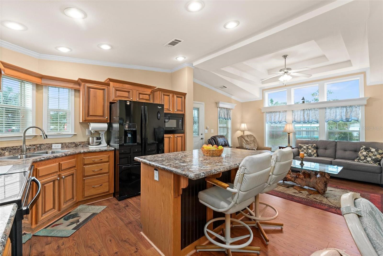WATERFRONT 2 BED/2 BATH CORNER LOT – BOATHOUSE w/ LIFT - VIBRANT 55+ COMMUNITY w/ LOW HOA~NO LOT RENT~YOU OWN YOUR LAND! The quint-essential Boater's paradise and Fisherman's dream with access to five amazing lakes in beautiful Lake County, Florida, all accessible from your back door. 2015 Manufactured Home with FRONT PORCH CHARM on FRESH WATER CANAL connects to Harris Chain of Lakes - perfect for relaxing, enjoying and living the FLORIDA LIFESTYLE you dreamed of. This lovely and well-maintained home is a NEWER MODEL with MODERN DESIGN, including HIGH CEILINGS, unique windows which allows for an OPEN, LIGHT AND BRIGHT FLOOR PLAN featuring quality Laminate Flooring (2018), beautiful tray ceilings, custom wood valance window treatments, and Crown Molding throughout. The BRIGHT and fully-equipped KITCHEN has a beautiful Island and Cabinetry Countertops, plus a Breakfast Bar overlooking both LIVING and DINING ROOM – a collectively huge, combined space for making family memories and entertaining guests. The Large PRIMARY BEDROOM has a Walk-In Closet and private en-suite bathroom with Dual-Sink Vanity Cabinetry and Walk-In Tiled Shower. The SECOND BEDROOM is spacious as well with access to a full-size BATHROOM. The enclosed FLORIDA ROOM with windows surrounding provides additional space and comfort year-round for reading, chatting, or simply enjoying morning coffee or an evening nightcap from your personal oasis of naturistic sights, sounds and water views! In Addition, you’ll appreciate the indoor LAUNDRY room and a large WORKSHOP/STORAGE area with newer built-in shelving. Another Bonus: This home has an Invisible Fence for the yard. LOCATION: Imperial Terrace East is a golf cart friendly community just minutes from downtown shopping, dining, entertainment, and medical facilities, as well as historic and iconic cities - Eustis and Mount Dora - where tourists come from near and far to enjoy the festivities. Don't miss out on this opportunity to own an amazing retreat. Schedule your private showing today!