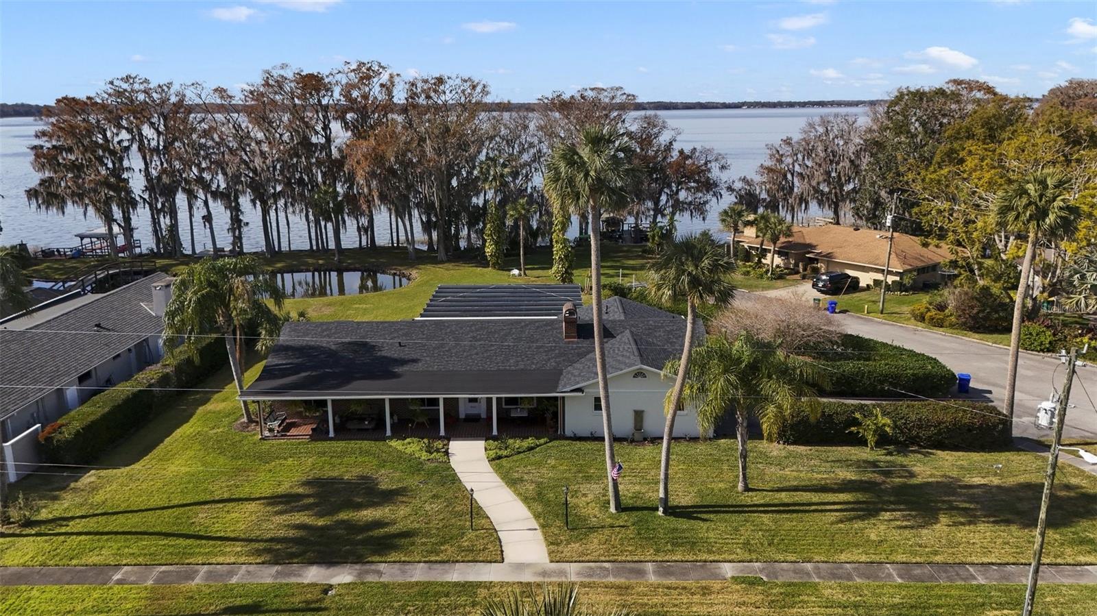 Price Reduced! Stunning Lakefront Property on the Harris Chain of Lakes! Experience the ultimate in lakeside living with this beautiful pool home located on Lake Eustis, featuring breathtaking west-facing views perfect for enjoying evening sunsets. As you enter, you'll be captivated by the charming details reminiscent of the 1950s, enhanced with modern upgrades. The home boasts new kitchen counters and cabinets, state-of-the-art Big Chill appliances, and durable Mohawk RevWood laminate flooring throughout. Additional improvements include new windows, a new roof, and elegant accordion sliding glass doors that open to your own private pool oasis. Two of the three bathrooms maintain their original retro charm and are in excellent condition, allowing you to enjoy vintage style alongside contemporary amenities. If you're in search of a home that beautifully blends classic charm with modern convenience, this property is a must-see! Don’t miss out on this exceptional opportunity!