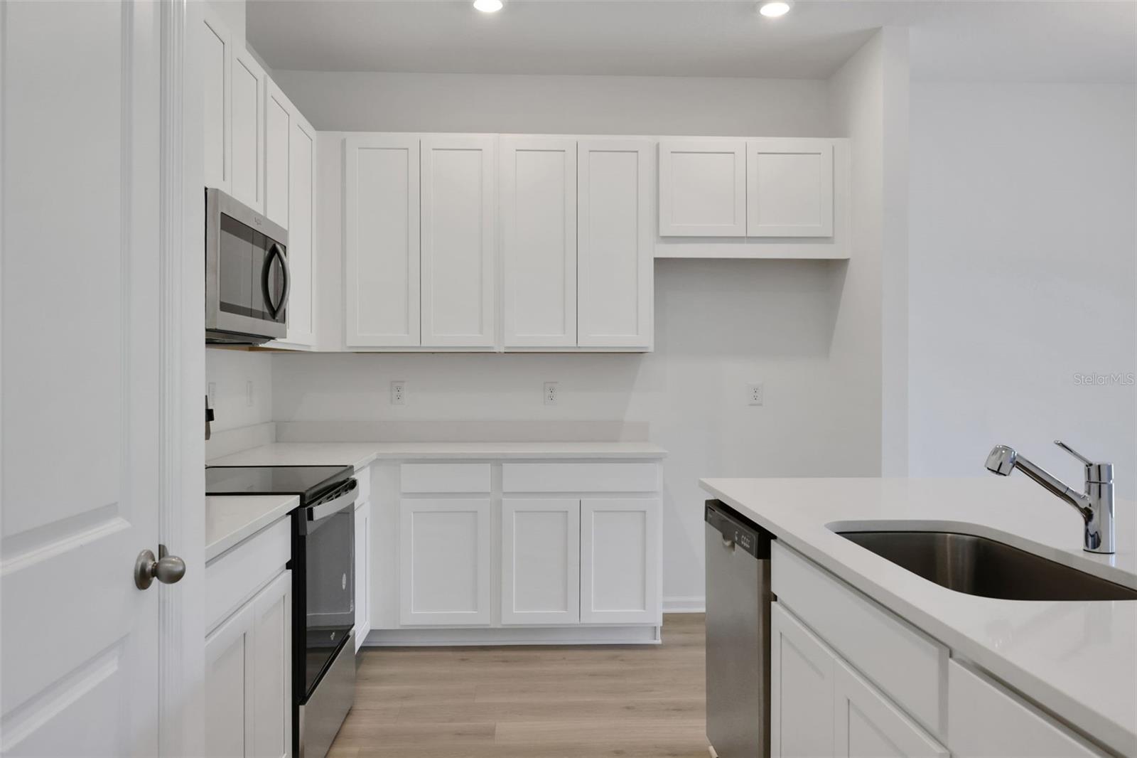 One or more photo(s) has been virtually staged. Under Construction. Welcome to this beautiful 1,598-square-foot, single-story home in the desirable Seaport Village community of Tavares. This spacious 4-bedroom, 2-bath home boasts a 2-car garage and a thoughtfully designed layout, perfect for modern living. The kitchen is a standout feature, with stunning 42" Linen Cabinets and sleek Quartz Countertops that offer both style and functionality. Upgraded laminate flooring flows throughout all living areas, creating a seamless and elegant feel. The home also features soaring 9' ceilings and 8' exterior doors, adding to the sense of openness and luxury. Enjoy peaceful outdoor living on your cozy, covered lanai—ideal for entertaining or simply relaxing. As part of the vibrant Seaport Village community, you'll have easy access to local amenities, including shopping and dining in historic downtown Tavares. Explore nearby nature trails or spend a day at one of the local golf courses in the Seaport Capital. The community’s prime location near major highways ensures a quick commute while offering the serenity of suburban living. Experience the best of both worlds in this inviting, well-connected home.