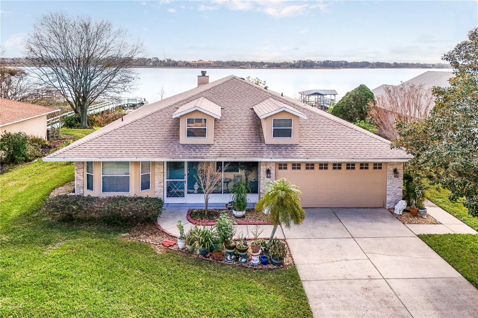 LAKEFRONT LUXURY WITH PRIVATE DOCK IN LAKE SAUNDERS POINTE- Discover the perfect blend of elegance and tranquility in this stunning 3-bedroom, 2-bathroom home with a private den, nestled in the highly sought-after Lake Saunders Pointe community. Offering gorgeous lake view and a long private dock this home is a true waterfront retreat. Step inside to find a spacious, light-filled living area featuring French doors that open onto the screened lanai, inviting in the gentle lake breeze. A wood-burning fireplace creates a cozy ambiance, perfect for cooler evenings. The well-appointed kitchen is an entertaining dream, boasting granite countertops, ample cabinetry, and a breakfast bar, making it the heart of the home. The primary suite is a sanctuary with a jacuzzi tub, separate tiled shower, dual sinks, and a dedicated makeup vanity. A private den with lanai access offers flexibility as a home office, media room, or even a fourth bedroom. Outside, follow the long dock that stretches over the water, leading to the ultimate lakeside retreat—perfect for boating, fishing, or simply soaking in the stunning sunset views. Located just minutes from downtown Tavares and Mount Dora, this home is in the heart of Florida’s Golden Triangle, offering easy access to restaurants, shopping, and entertainment. The low HOA fee includes access to the community clubhouse, pool, shuffleboard, and private boat ramp. Don’t miss this rare opportunity to own a lakefront paradise in a vibrant yet peaceful neighborhood. Call today for your private tour!