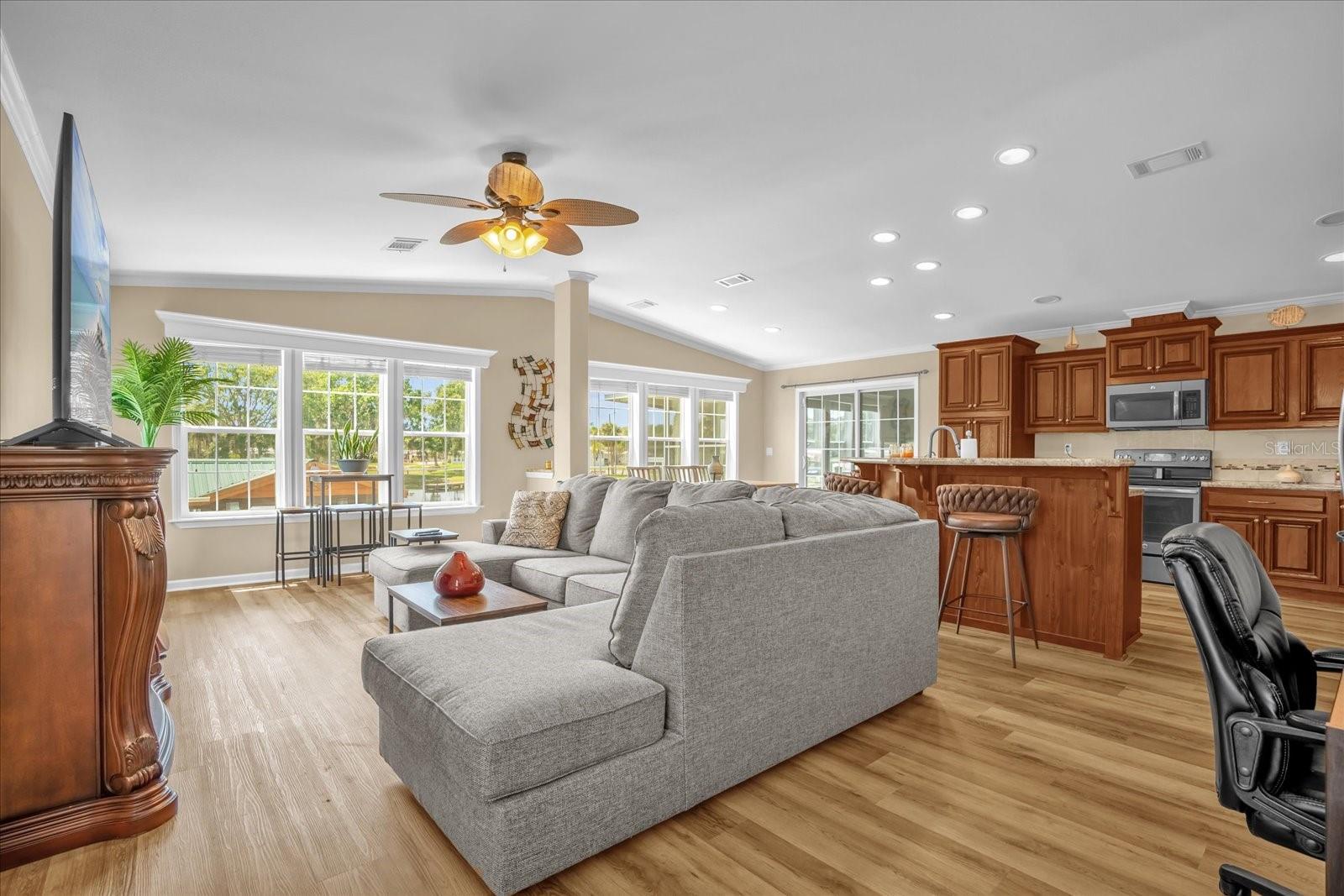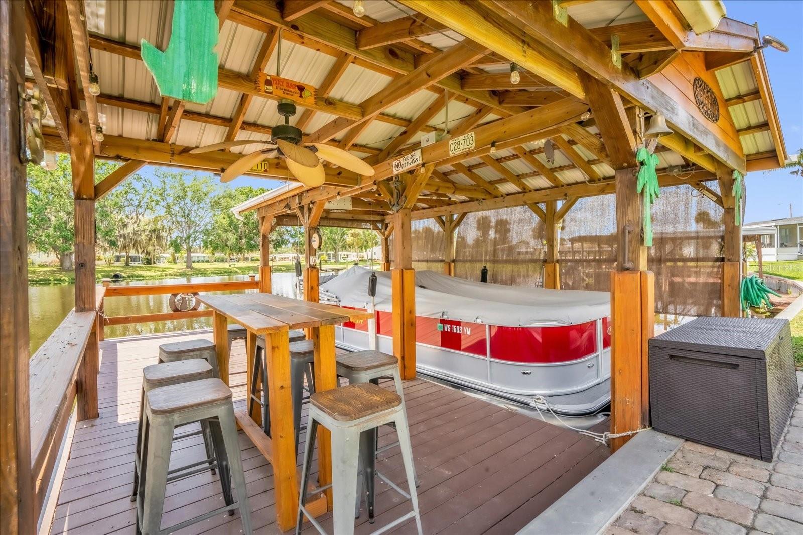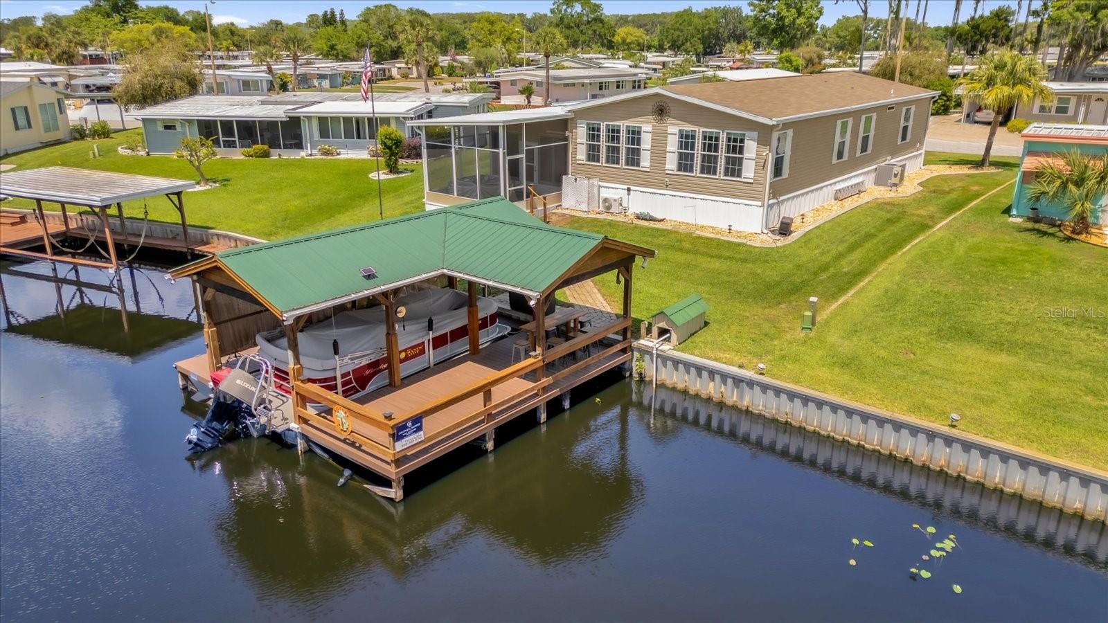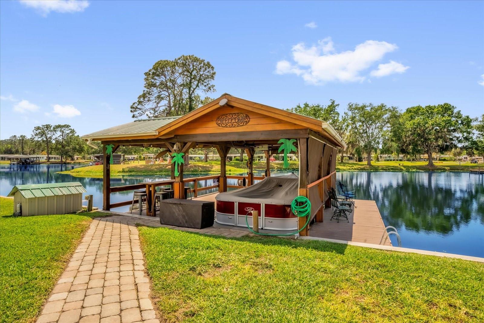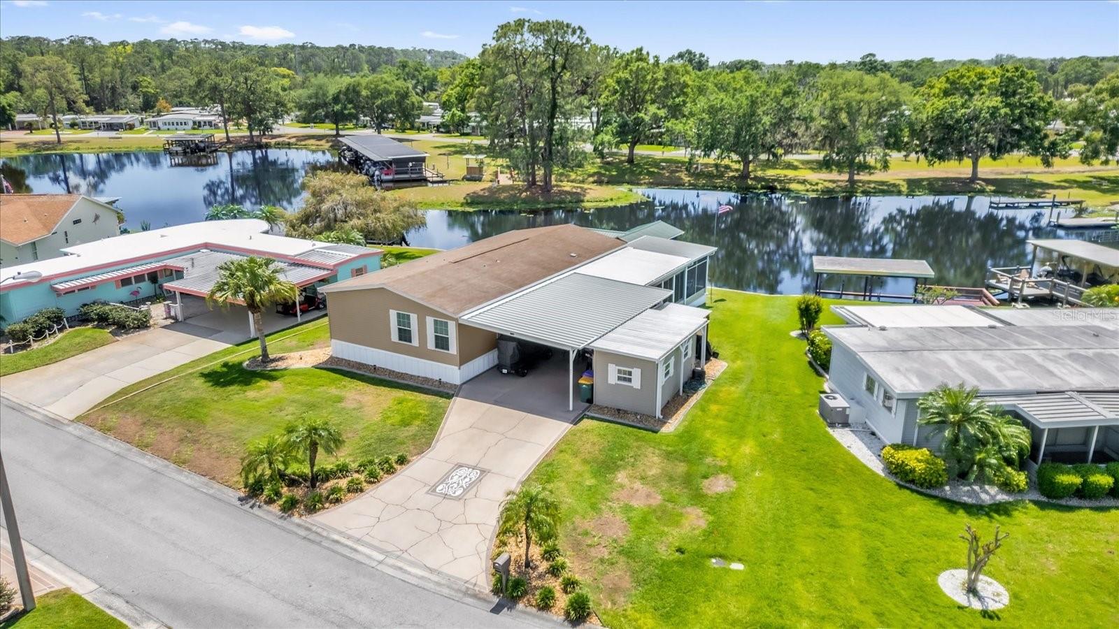 LIVE THE FLORIDA DREAM — AMAZING SUNSETS INCLUDED! (Warning: You may never want to leave.) Wake up every day to "wow" views of a peaceful lagoon that flows right into the beautiful Harris Chain of Lakes. This immaculate 2-bedroom, 2-bath retreat also has a bonus room currently living its best life as a 3rd bedroom (no closet, but full of potential). Use it for guests, hobbies, or finally start that podcast you've been talking about. Got a boat? Bring it! Got a favorite drink? Bring two! The private boathouse includes a covered seating area that's practically begging for sunset selfies and lazy afternoons. Tucked into the highly sought-after Imperial Terrace East 55+ waterfront community, this gem checks all the right boxes: LOW HOA, NO LOT RENT, YOU OWN THE LAND. Inside, you'll find a 2016-built, turnkey furnished home with 1,650 sq ft of total comfort, including a heated/cooled lanai and a screened-in hot tub area—Ideal for unwinding as you watch the sky light up in sunset colors—and maybe wave to the gator who’s totally convinced you're besties. Love entertaining? You're in luck! The brand-new 20x32 carport is your personal party pavilion—complete with a storage room 18x9, covered grilling station (10x9 -4 grills, yes FOUR), lighting, and a flat-screen TV. You'll be hosting backyard BBQs for up to 18 friends faster than you can say, “pass the potato salad.” Soak in the magic from your provate-lagoon-view jacuzzi, the perfect front row seat to breathtaking sunsets. Unwind, relax and let every day feel like a getaway. Storm season? No sweat. This home has hurricane tie-downs rated to 100 mph, plus a RP6500 CAT Generator—because you should always be able to keep the lights (and blender) on. And thanks to the Osmosis - Culligan water system, your water is clean, delicious, and fancy enough to impress yoor neighbors. Irrigation is also covered with a well—your lawn will thank you. Seriously, just bring your clothes, a bathing suit, and an attitude ready for living your best life. The golf cart-friendly community offers a pool, clubhouse, and fun activities all year long. Plus, you're just minutes from shopping, restaurants, medical care, and entertainment. Easy access to both coasts' beaches, Orlando’s attractions, and major airports means you're never far from your next adventure—or your grandkids. Sun, fun, and freedom await—come claim your slice of paradise before someone else does!