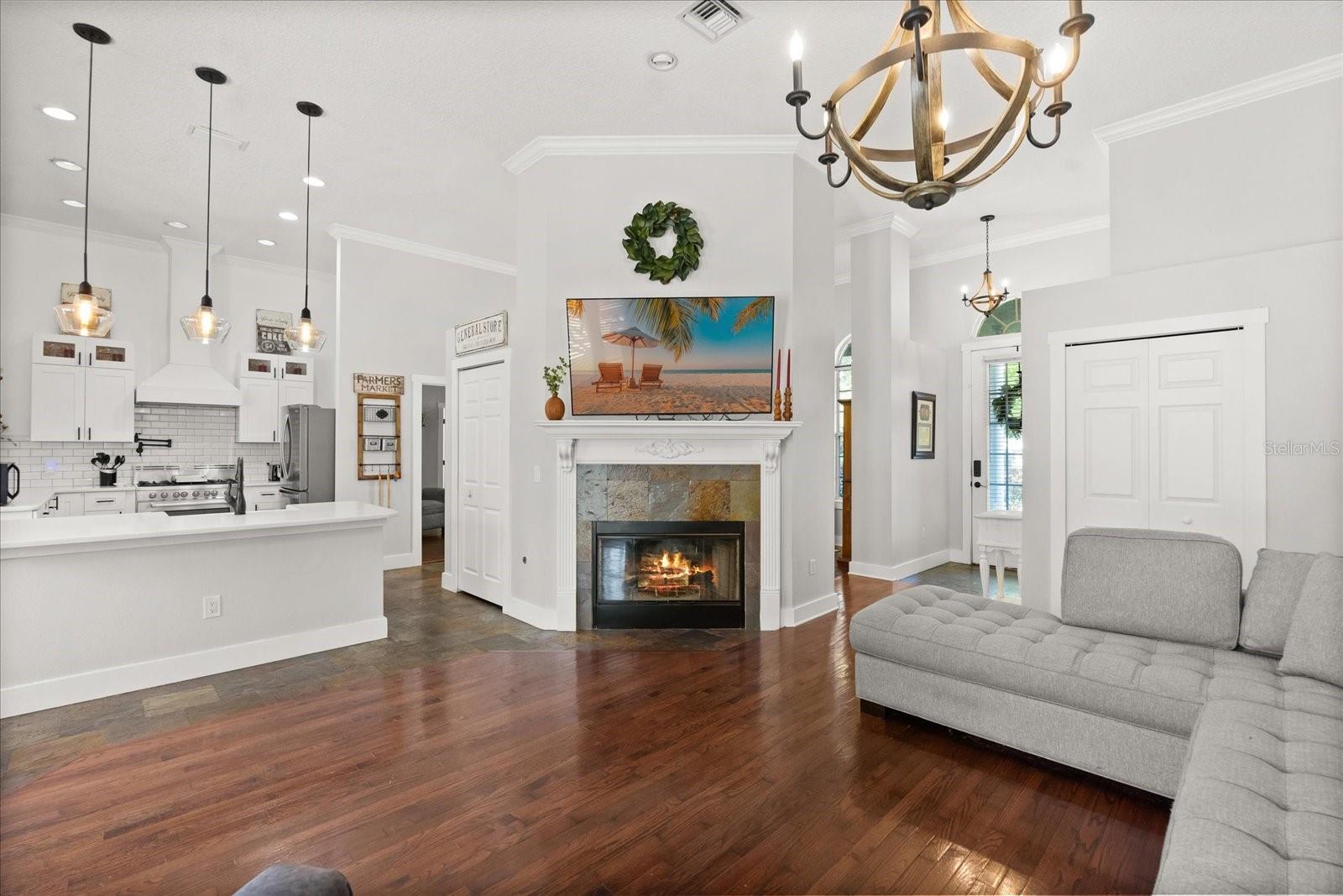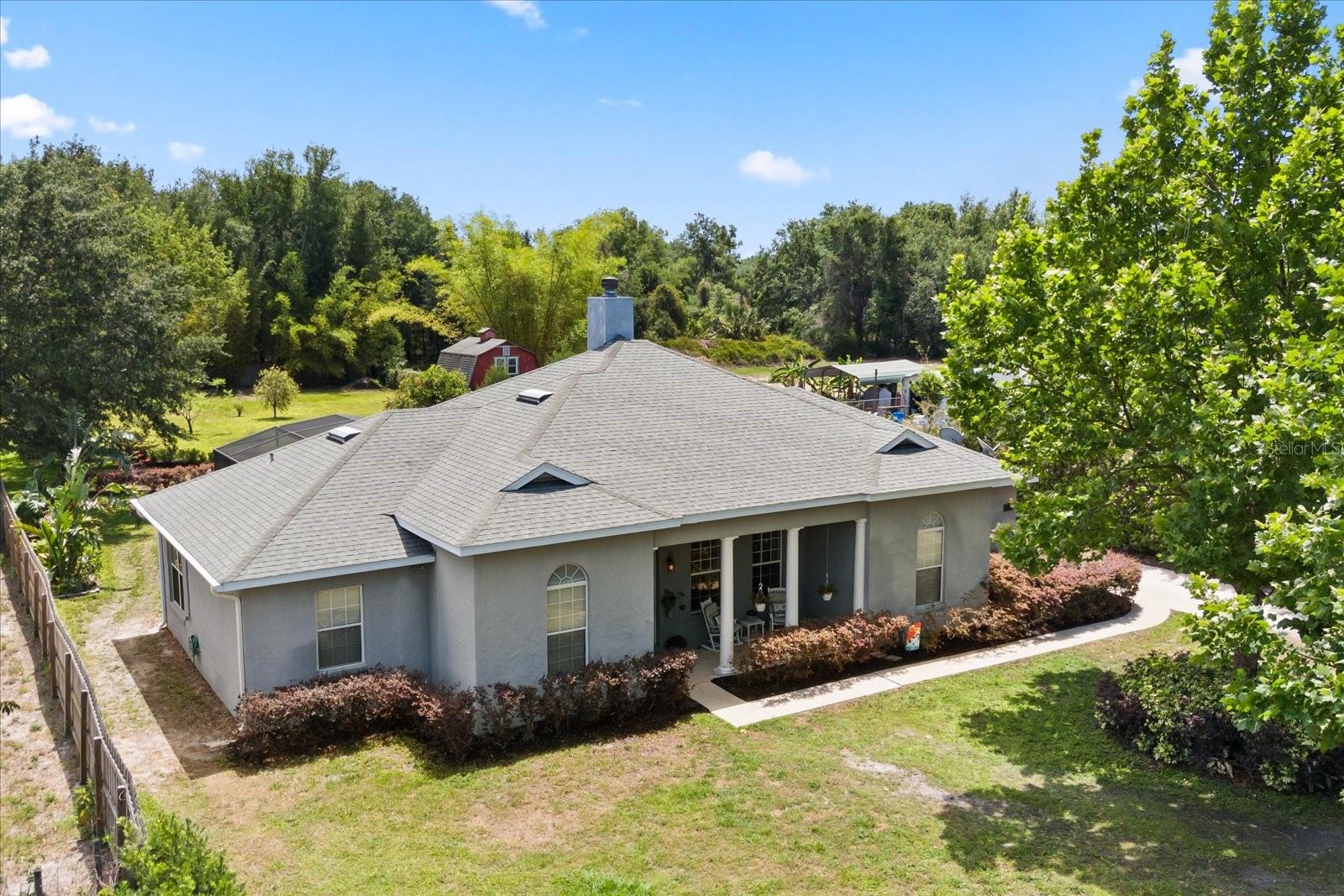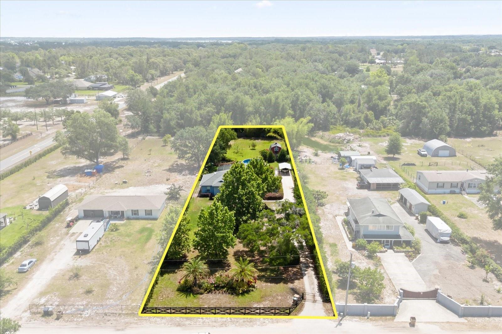 Welcome to your private retreat—free from HOA restrictions—where comfort, functionality, and outdoor living come together on a beautifully maintained 1-acre property. This charming 3-bedroom, 2.5-bath home was completely remodeled in 2018 and shines with quality craftsmanship both inside and out. Step outside and soak in the Florida lifestyle on the expansive screened-in porch, featuring a stunning tongue-and-groove ceiling, dual ceiling fans, and space to dine, relax, or entertain. Just beyond, enjoy summer days in the saltwater above-ground pool, newly installed in 2022, or unwind in the shade of mature trees. The fully fenced and gated yard includes a storage shed and an irrigation system covering both the front and back yards—making outdoor maintenance a breeze and the lush surroundings a year-round delight. Inside, the open-concept living space centers around a cozy gas fireplace and features rich wood flooring and crown molding throughout. The chef’s kitchen impresses with 42-inch custom cabinetry, a center island, granite countertops, pot filler, and a premium Verona gas range. The dining area is ideal for gatherings, with tasteful details that elevate everyday meals. The primary suite is a true sanctuary, offering a spacious walk-in closet, wood flooring, crown molding, and a cozy sitting area. Connected to a private office—with its own entrance—this layout is perfect for working from home or welcoming guests. The ensuite bath boasts a dual-sink vanity and a large walk-in shower with dual showerheads for a spa-like experience. Two additional bedrooms, a well-appointed guest bath, and a dedicated laundry room round out this move-in-ready home. Located with no HOA restrictions, you’ll appreciate the peace and privacy of large neighboring lots while still being minutes from Lake Dora, State Road 441, and Interstate 429—providing easy access to Orlando, the attractions, and even the east coast beaches. Don't miss the chance to enjoy this beautifully upgraded home with exceptional outdoor living—schedule your private tour today!