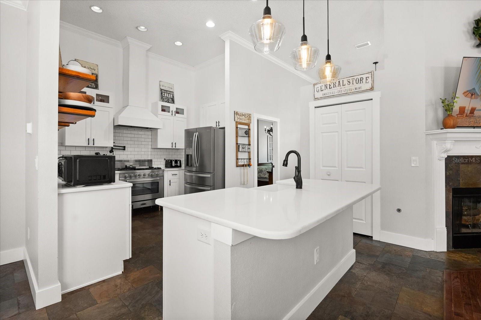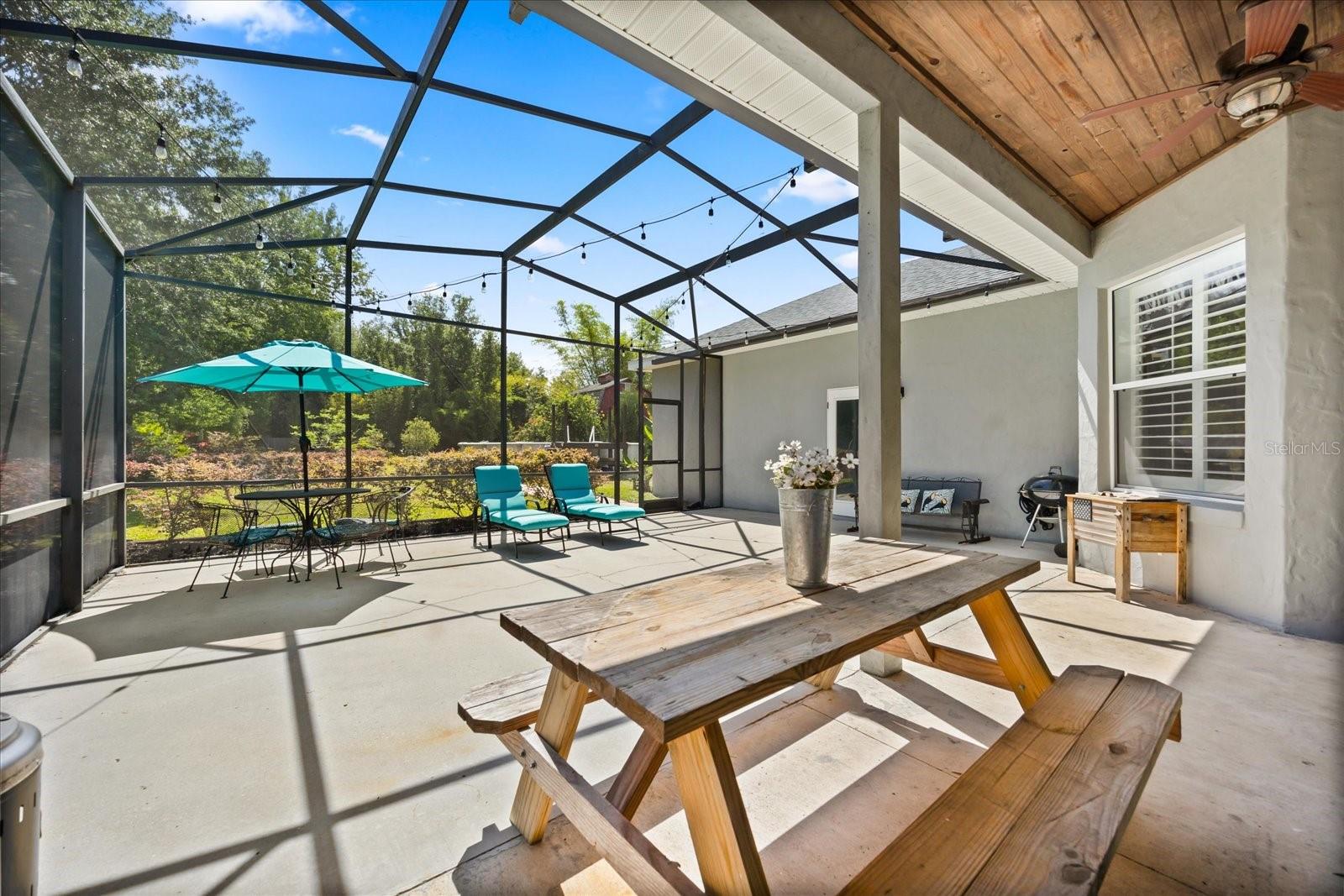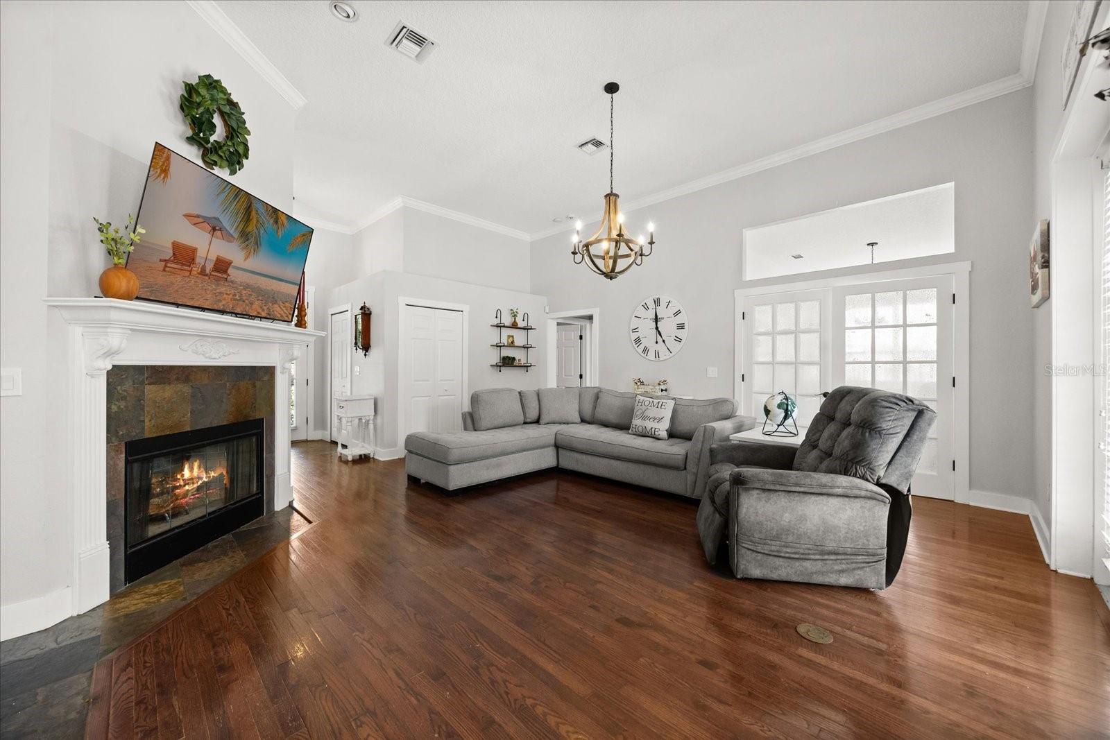 Welcome to your private retreat—free from HOA restrictions—where comfort, functionality, and outdoor living come together on a beautifully maintained 1-acre property. This charming 3-bedroom, 2.5-bath home was completely remodeled in 2018 and shines with quality craftsmanship both inside and out. Step outside and soak in the Florida lifestyle on the expansive screened-in porch, featuring a stunning tongue-and-groove ceiling, dual ceiling fans, and space to dine, relax, or entertain. Just beyond, enjoy summer days in the saltwater above-ground pool, newly installed in 2022, or unwind in the shade of mature trees. The fully fenced and gated yard includes a storage shed and an irrigation system covering both the front and back yards—making outdoor maintenance a breeze and the lush surroundings a year-round delight. Inside, the open-concept living space centers around a cozy gas fireplace and features rich wood flooring and crown molding throughout. The chef’s kitchen impresses with 42-inch custom cabinetry, a center island, granite countertops, pot filler, and a premium Verona gas range. The dining area is ideal for gatherings, with tasteful details that elevate everyday meals. The primary suite is a true sanctuary, offering a spacious walk-in closet, wood flooring, crown molding, and a cozy sitting area. Connected to a private office—with its own entrance—this layout is perfect for working from home or welcoming guests. The ensuite bath boasts a dual-sink vanity and a large walk-in shower with dual showerheads for a spa-like experience. Two additional bedrooms, a well-appointed guest bath, and a dedicated laundry room round out this move-in-ready home. Located with no HOA restrictions, you’ll appreciate the peace and privacy of large neighboring lots while still being minutes from Lake Dora, State Road 441, and Interstate 429—providing easy access to Orlando, the attractions, and even the east coast beaches. Don't miss the chance to enjoy this beautifully upgraded home with exceptional outdoor living—schedule your private tour today!