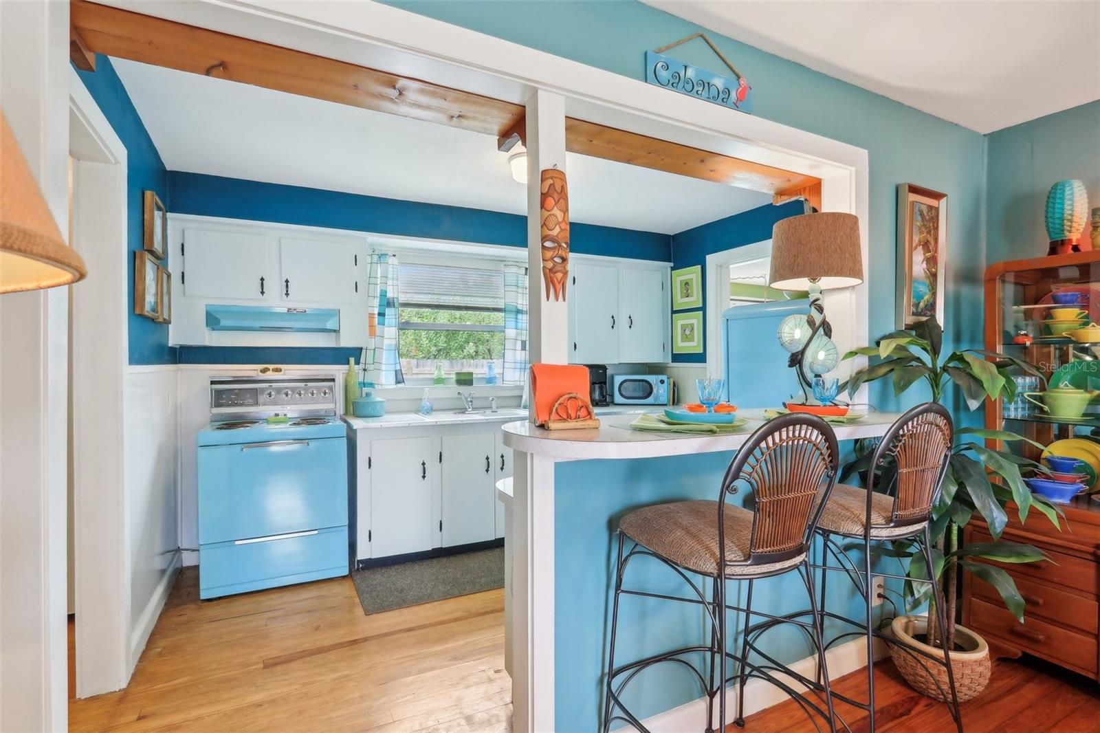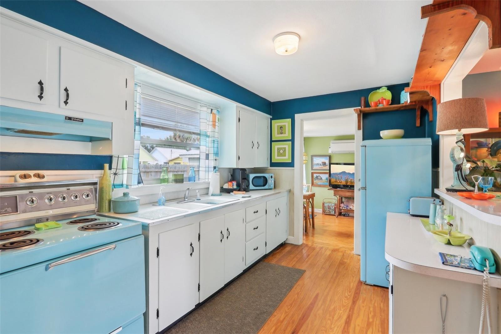 Welcome to 1301 North Avenue—a stylishly preserved mid-century cottage that perfectly blends vintage charm with modern updates. Nestled on a quiet street just one mile from the lively Tavares Entertainment District, this move-in-ready 2-bedroom, 1-bath home is full of character, flexibility, and the kind of Florida lifestyle buyers dream about. Step inside and you’ll be greeted by original hardwood floors, an abundance of natural light, and a flowing layout that feels both cozy and open. The kitchen is a true conversation starter, featuring a vintage aqua-blue stove, matching retro-style refrigerator and microwave, and tasteful updates that marry nostalgic style with everyday functionality. One of this home’s most versatile features is the oversized second bedroom—complete with a private exterior entrance, making it ideal for a guest suite, home office, or short-term rental. With its proximity to the utility room, there's even potential to add a second bathroom or create a full in-law suite, offering room to grow and boost long-term value. Recent updates deliver comfort and efficiency: 2020 Roof, 2021 Mini-split AC systems (x3), 2021 Hot water heater. The private backyard is perfect for weekend gardening, entertaining friends, or simply enjoying a quiet escape outdoors. With no HOA and the ability to golf cart to nearby waterfront dining, live music, and year-round festivals, this home invites you to enjoy life at a slower pace—without sacrificing location. Just minutes from Downtown Mount Dora, AdventHealth Waterman Hospital, and an easy drive to Orlando-area attractions, this one-of-a-kind home is ready for its next chapter. Don't miss your chance to own this character-filled gem in one of Central Florida’s most vibrant small towns. Schedule your private tour today!