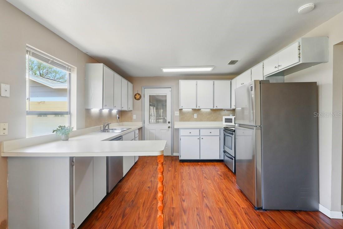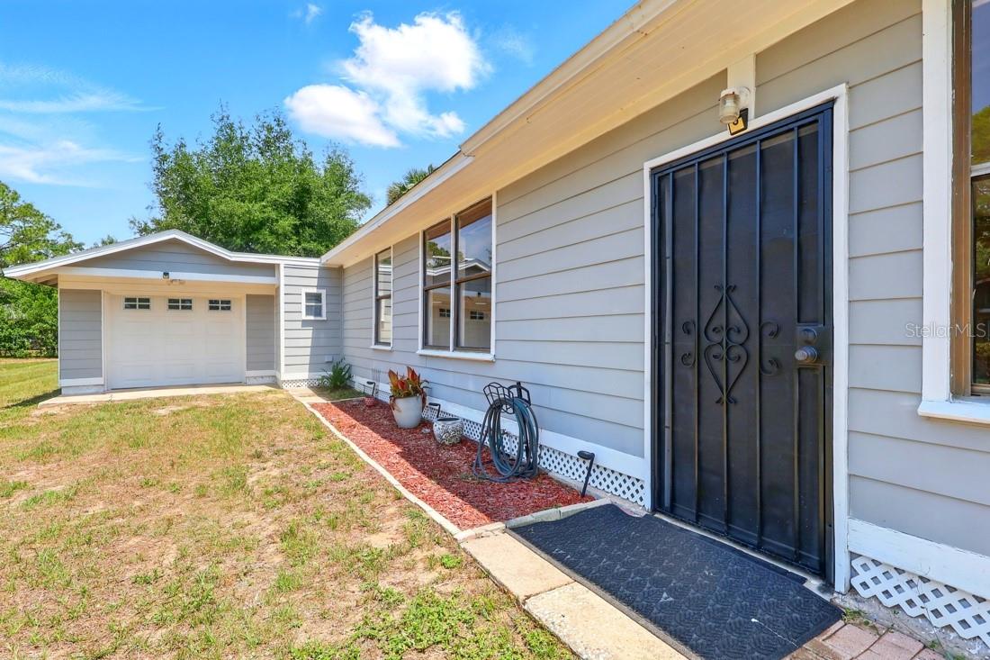 Welcome to your cozy Florida retreat! This charming 2-bedroom, 1-bath home sits on a fully fenced quarter-acre+ lot in the heart of America’s Seaplane City, just minutes from downtown Tavares. One of the best things about living here? You can hop in your golf cart and cruise straight into town for waterfront dining, live music, and weekend festivals. Inside, the home features a well-equipped kitchen with stainless steel appliances and ample cabinet and counter space. The two spacious bedrooms share a full hall bath, and the open layout offers comfort and flexibility. Step out back to enjoy the oversized screened rear porch, perfect for relaxing evenings or entertaining friends and two exterior sheds for extra storage space. Additional highlights include an attached one-car garage with a newer door and opener, a dedicated laundry room with storage cabinets, and a newer roof, replaced approximately 3 years ago. Located in the peaceful Tavares Heights neighborhood, just one mile from Wooten Park and a short drive to Eustis, Mount Dora, and AdventHealth Waterman Hospital, this home also comes with no HOA, so bring your boat or RV and make yourself at home!