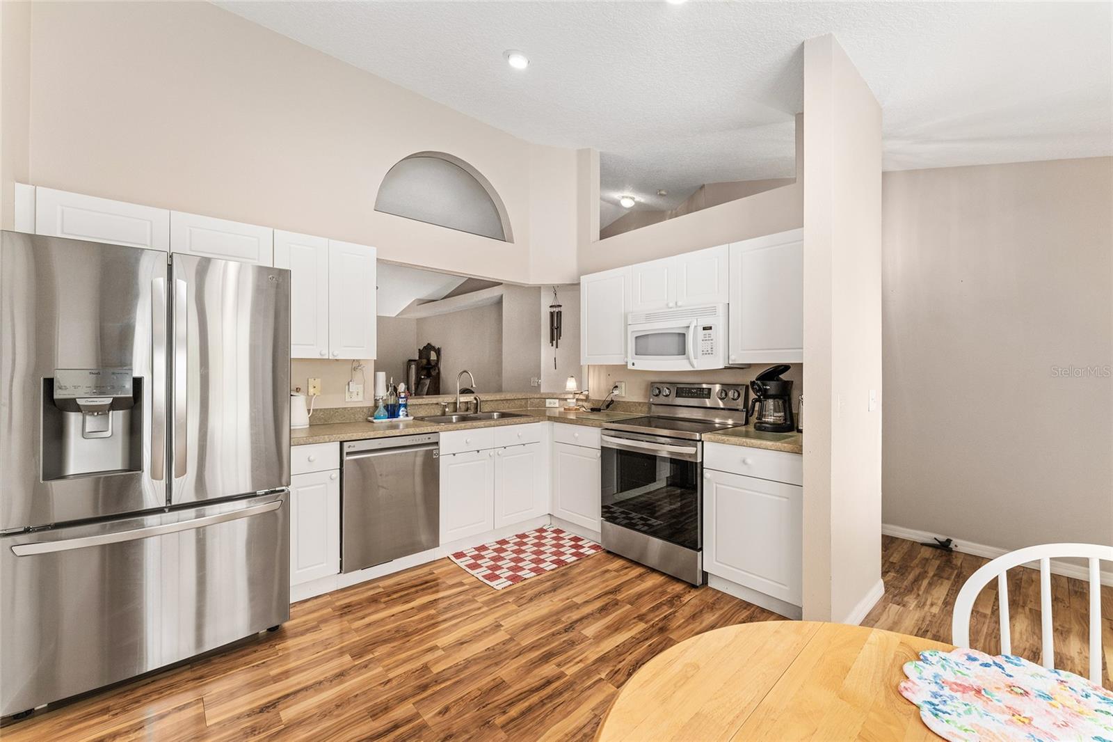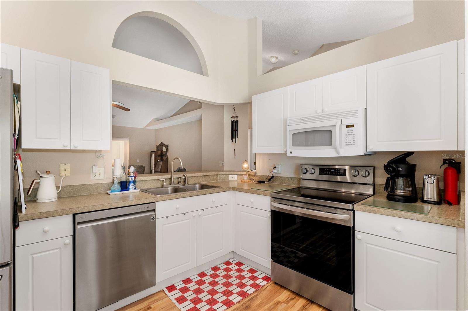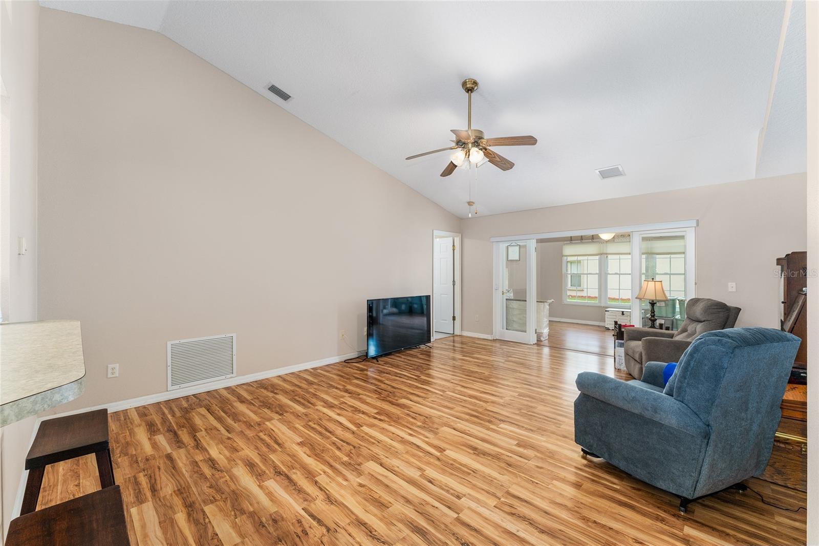 Beautiful BLOCK & STUCCO Home -- In a SUPER LOCATION!! Tavares Imperial Village (HOA neighborhood) is across the street from LAKE EUSTIS BOAT LAUNCH and Behind “Salsa” Restaurant on 441!! -- ** This home is on a CORNER LOT – 3 Bedrooms, 2 Baths and FLORIDA ROOM!! -- 2022 Roof – 2019 HVAC -- Safe-Step WALK-IN JACUZZI TUB in Hall Bath!!! -- Vaulted & High Ceilings – PLANTATION SHUTTERS - Ceiling Fans – Laminate Flooring thru out and Carpet in Primary Bedroom!! – Kitchen with White Cabinets & Stainless Appliances, LG “ThinQ” Refrigerator (French Door/Bottom Freezer) and “ThinQ” Flat top Electric Range, LC Stainless Dishwasher, and Mounted Microwave. Kitchen Closet Pantry and Eating Space in Kitchen with a Breakfast Bar Overhang /Pass thru to Dining Room -- BBQ Pad with Pergola Cover in Back, Gutter & Downspouts, and Landscape Beds with fresh Mulch! – Primary Bedroom (carpet) with a Walk-in Closet & Private En Suite Bath with Step-in Shower. -- Laminate Flooring in the Guest Wing! Hall with Linen Closet and Bedroom 2 with French-Door Entry and Bedroom 3 with an extra nook space for a sitting area! – Guest Bath has the Safe-Step WALK-IN JACUZZI TUB. – FLORIDA ROOM with Top-Down/Bottom-Up Levelor Blinds on Windows, and Door to BBQ Pad. – Garage with Work-Bench, GE Washer & Electric Dryer, Stairs to Attic, irrigation System, and GARAGE DOOR SLIDER SCREENS. – LOCATION IS KEY!!! (HOA is $300/year)
