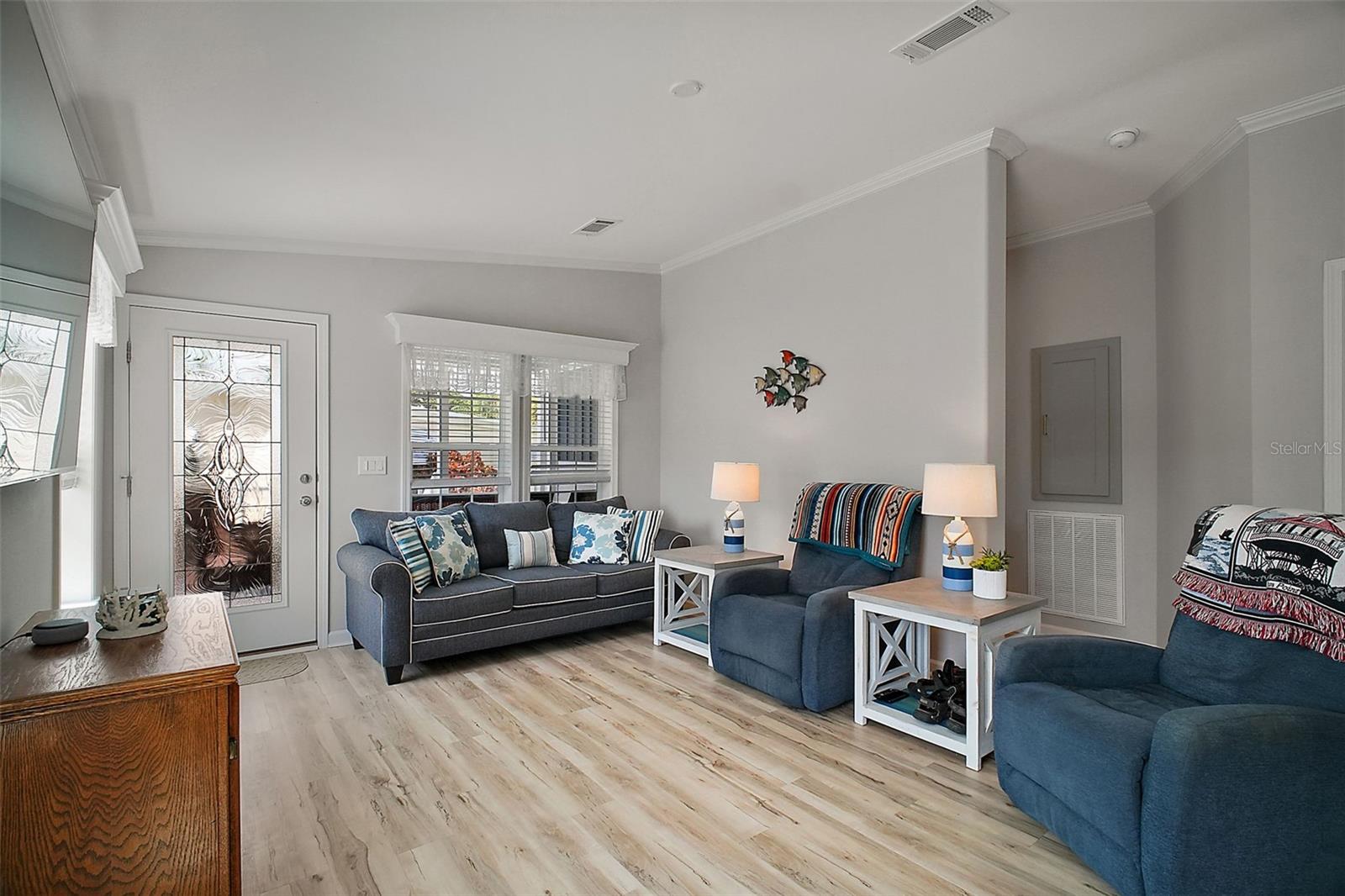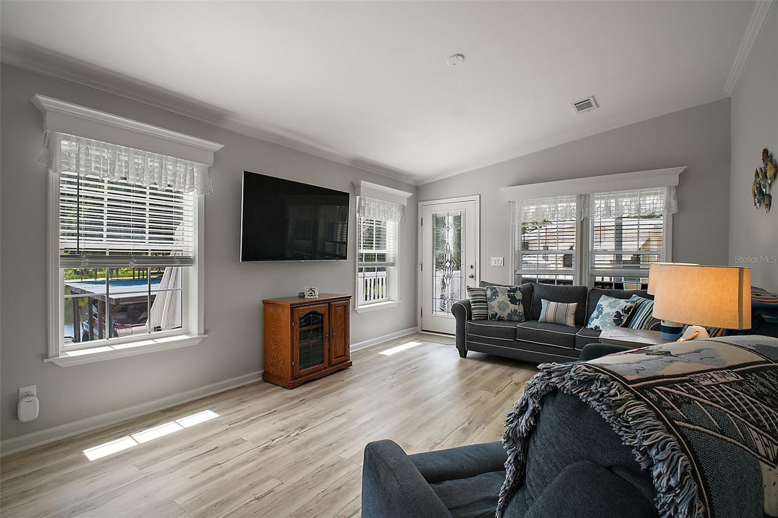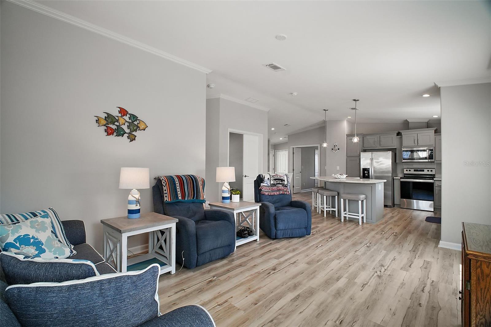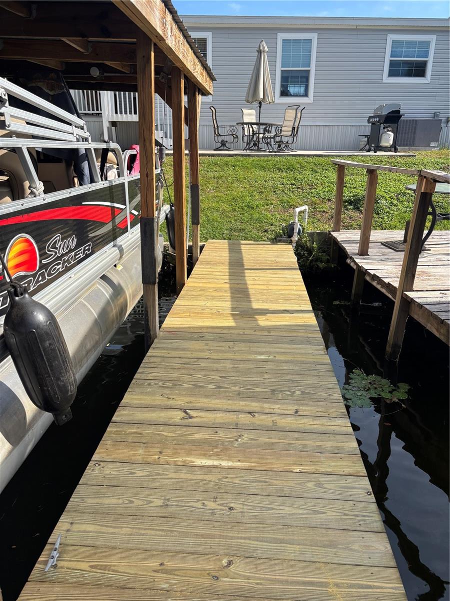 THIS HOME IS GREATLY REDUCED AND PRICED TO SELL!! Come see this WATERFRONT 2 BED / 2 BATH / BONUS ROOM (UNFURNISHED) MODULAR HOME in the highly sought after IMPERIAL TERRACE WEST 55+ COMMUNITY IN TAVARES. This 2021 TURNKEY home boasts CANAL FRONT living with Covered Boat House and Lift. The BACK PATIO allows for serene canal views and gathering of friends. A SIDE PORCH allows for shade to enjoy your cup of coffee and relax! The natural light streams into a spacious recessed-lighted KITCHEN with FORMICA COUNTERTOPS, including the BREAKFAST BAR, open floor plan LIVING ROOM and DINING ROOM. CROWN MOLDING and WOODEN VALANCES accent throughout the home. All Whirlpool APPLIANCES - ELECTRIC STOVE, REFRIGERATOR WITH ICEMAKER, MICROWAVE, DISHWASHER, WASHER and DRYER are four years old. The PRIMARY BEDROOM/ENSUITE is spacious, including Sink/Vanity, Walk-In Shower and Closet. The BONUS ROOM is an added extra! WASHER and DRYER are inside the home. The exterior has TWO SPACIOUS SHEDS - one attached to the home and the other bolted down to a concrete slab, a CARPORT and driveway with enough room for THREE VEHICLES and a GOLF CART. The BOAT LIFT and REINFORCED BOATHOUSE were recently upgraded. The BOAT DOCK has been upgraded. A WELL on the property backside allows for grass watering with the in-ground SPRINKLER SYSTEM. There is also a PEST GUARD SYSTEM in-place around the outside perimeter. TIE-DOWNS complete the home along with "YOU OWN THE LAND" for ease in insuring. The neighborhood includes a Community Clubhouse, an In-Ground Swimming Pool, Jacuzzi Tub, and plethora of COMMUNITY ACTIVITIES throughout the year - all for the LOW HOA of $25/MONTHLY. Within a short driving distance are Dining, Shopping, Medical Providers and Quaint Shoppes. Call to schedule your tour today!