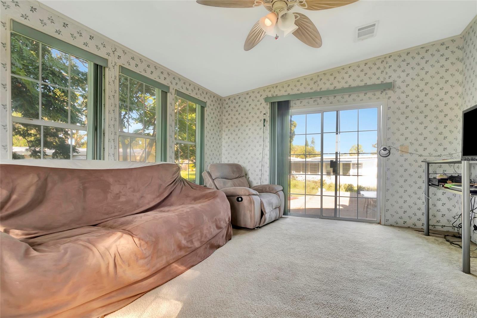 RARE "3" BED / 2 BATH - VIBRANT 55+ IMPERIAL TERRACE! *Seller is offering a $3,000 Flooring Credit at Closing with an Accepted Contract!* This charming double-wide mobile home is a haven of comfort and convenience, offering a delightful blend of serene living and active lifestyle opportunities. “Welcome” begins at curb appeal with easy maintenance landscaping and massive tree shade. Step inside to a spacious Open Floor Plan with an abundance of natural light flooding throughout the home. The main Living areas flow seamlessly for entertaining guests; a wood-burning fireplace brings cozy comfort on chilly days and winter eves - perfect for snuggling, reading a book, or watching a movie! The ‘eat-in’ Kitchen boasts ample counter space and storage for culinary enthusiasts. The Florida Room is always a fav 'go to' with French doors opening up to the main living areas, and a sliding glass door to access the outdoors. The Primary Bedroom provides a peaceful sanctuary, featuring warm wood-grain plank flooring, and EnSuite Bath with Soaking Tub, a separate Walk-in Shower, and Single-sink with oversized Vanity Cabinetry. Split Plan-Two additional Bedrooms and a full-size Bathroom provide flexibility for guests or alternate use ensuring ample space for your needs. EXTERIOR: Built-in Oversized Storage Shed with Front Access and Back Access with Double Doors for Golfcart and/or Mower Parking; Covered Carport and Circle Drive for additional parking. IN ADDITION: Brand New Roof (March 2025) New Back Staircase; Double-Pane Storm Windows (2017). HOA/COMMUNITY: Imperial Terrace is a highly desirable retirement community offering AMENITIES galore! The beneficiary of this fantastic land perk? The OWNER reaps the sweet rewards with a Low HOA Fee – No LOT Rent – You OWN Your Land - for REAL! The Clubhouse is a favorite with resident gatherings, BBQs, swimming, shuffleboard, and so much more. A community Boat Ramp provides easy access to the HARRIS CHAIN OF LAKES - perfect for Owners not living on the canal front to enjoy fishing, boating and water sports. Imperial Terrace is located off Hwy 441, just minutes from the best in Shopping, Dining, Entertainment, County Offices, and state-of-the-art Medical Facilities, PLUS, renowned local destinations - Mount Dora and The Villages! Easily commute to the Beach Coasts, Orlando Attractions, Airports and everywhere exciting that makes Floridians love living ‘central’ in the Sunshine State, year ‘round or Seasonal. Call to schedule your personal tour today!