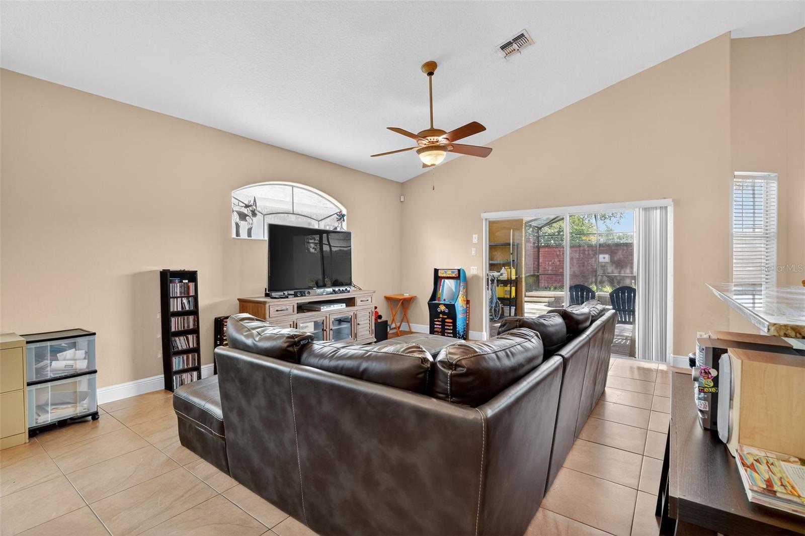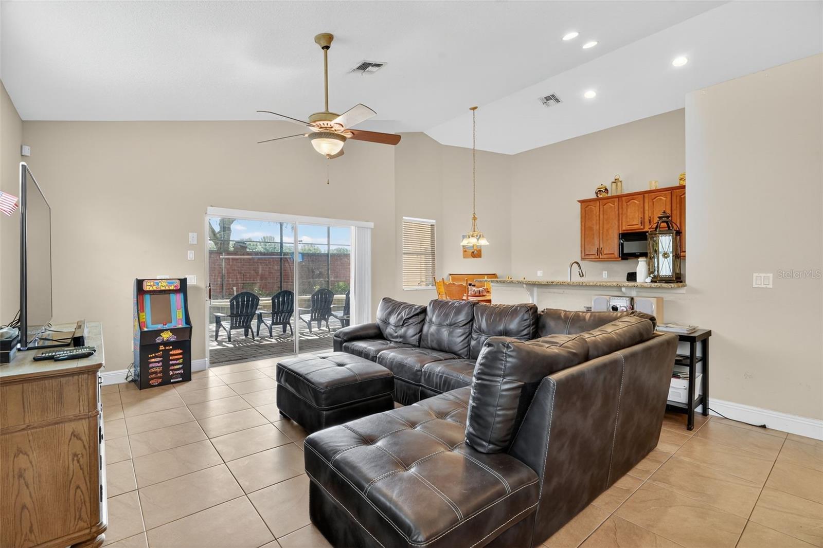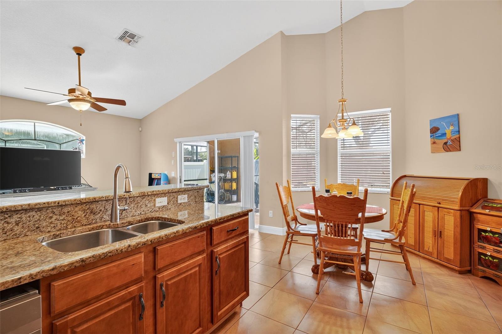 This 4-Bed, 3-Bath Pool Home Has It All! Located in a desirable gated community, this beautifully maintained home offers a functional layout with thoughtful upgrades throughout. Enjoy granite countertops in the kitchen and all bathrooms, adding a touch of luxury to every space. The home features vaulted ceilings, enhancing the open, airy feel of the main living areas. Tile flooring in the open-concept living space provides easy upkeep, while sliding glass doors in the family room lead to a screened lanai and private pool—perfect for relaxing or entertaining. The split-bedroom floor plan ensures privacy for the primary suite, which includes direct pool access, dual sinks, a garden tub, and a walk-in shower. A cozy dining nook off the kitchen offers the perfect spot for casual meals, and a centrally located indoor laundry room adds everyday convenience. Don’t miss your chance to own this beautiful home that perfectly combines comfort, style, and security!