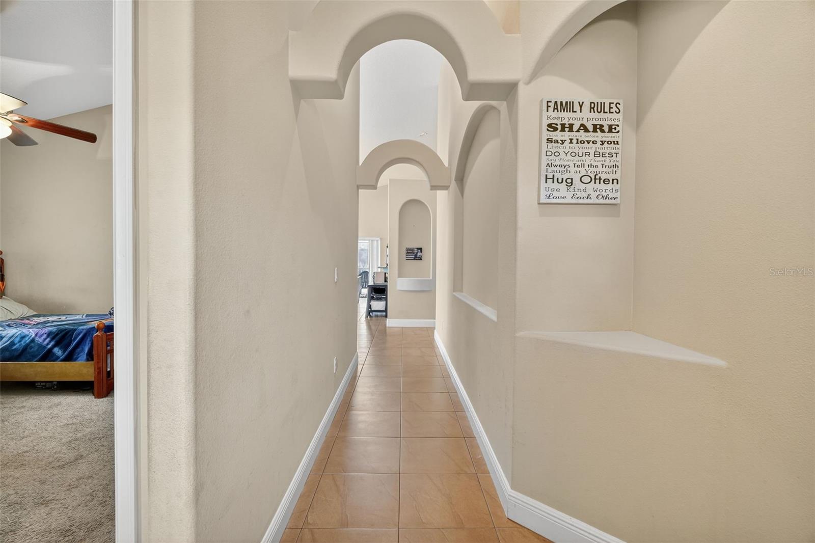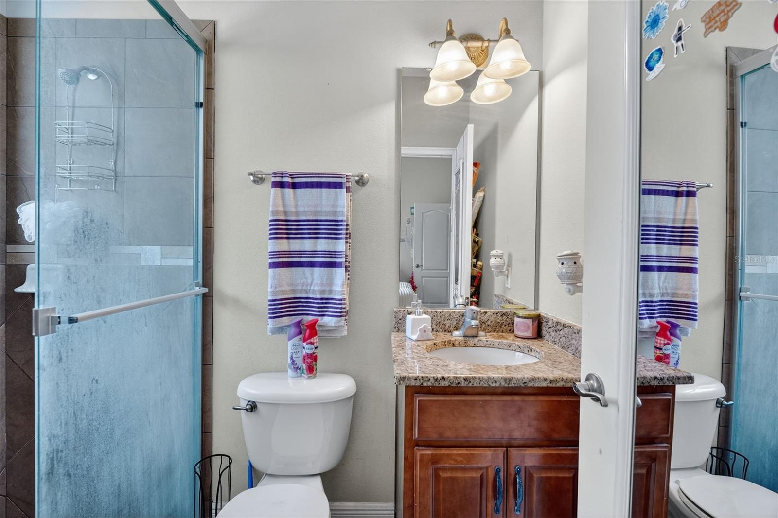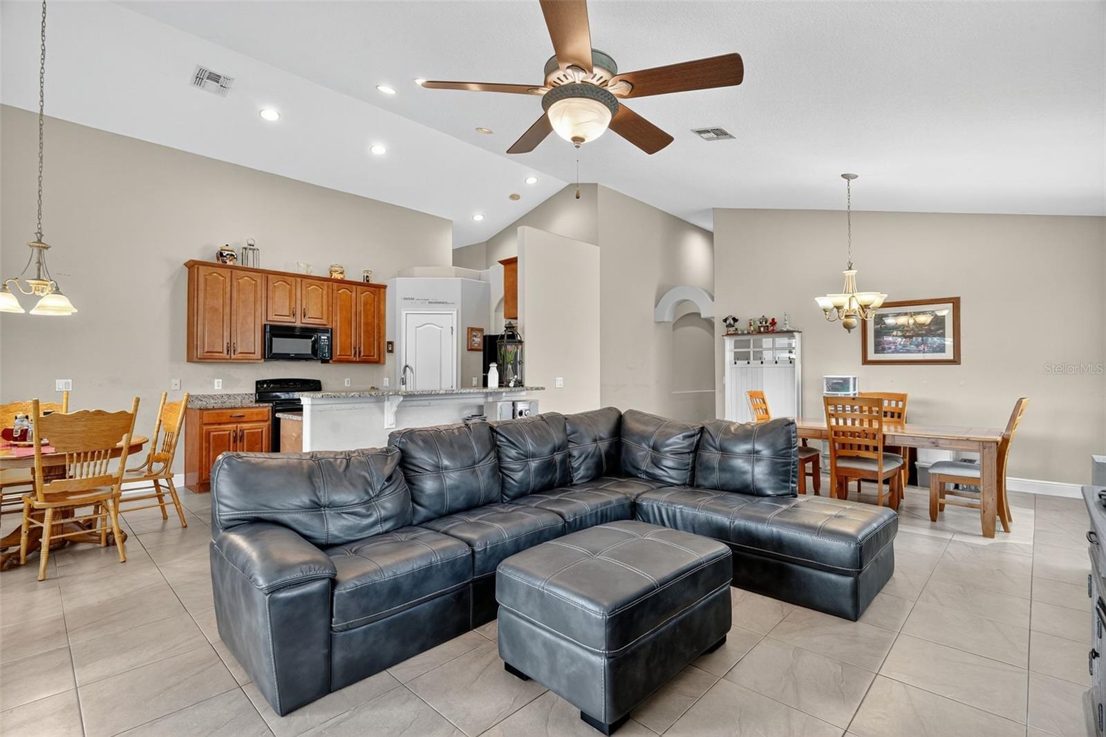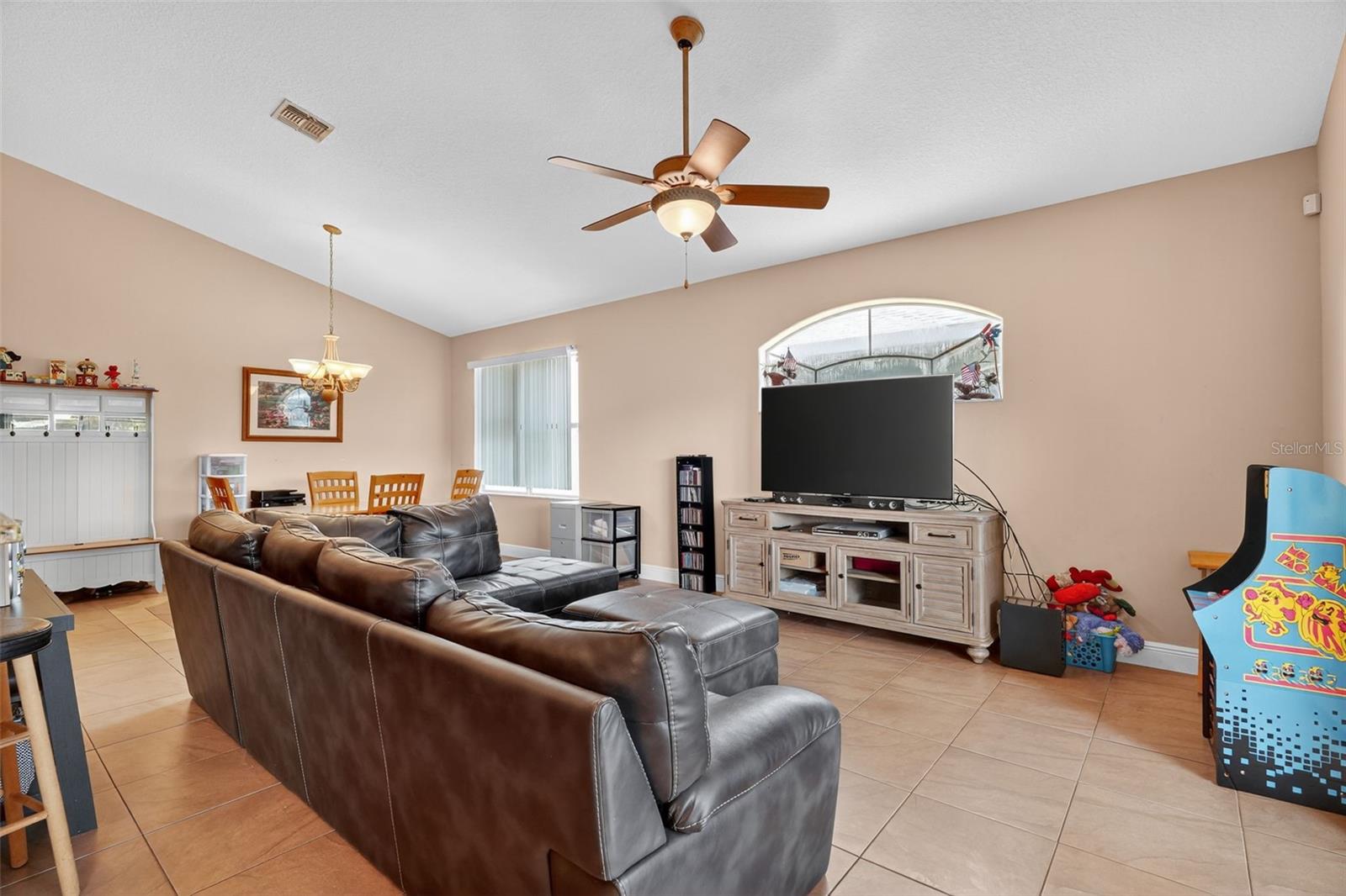 This 4-Bed, 3-Bath Pool Home Has It All! Located in a desirable gated community, this beautifully maintained home offers a functional layout with thoughtful upgrades throughout. Enjoy granite countertops in the kitchen and all bathrooms, adding a touch of luxury to every space. The home features vaulted ceilings, enhancing the open, airy feel of the main living areas. Tile flooring in the open-concept living space provides easy upkeep, while sliding glass doors in the family room lead to a screened lanai and private pool—perfect for relaxing or entertaining. The split-bedroom floor plan ensures privacy for the primary suite, which includes direct pool access, dual sinks, a garden tub, and a walk-in shower. A cozy dining nook off the kitchen offers the perfect spot for casual meals, and a centrally located indoor laundry room adds everyday convenience. Don’t miss your chance to own this beautiful home that perfectly combines comfort, style, and security!