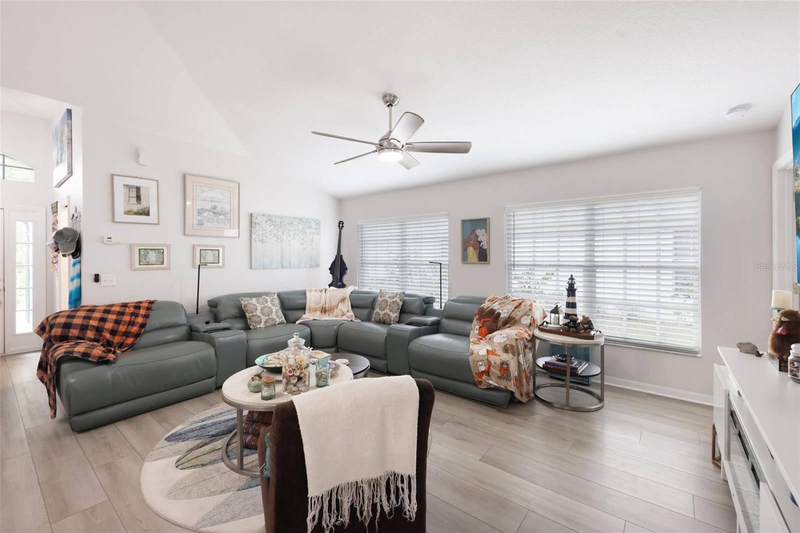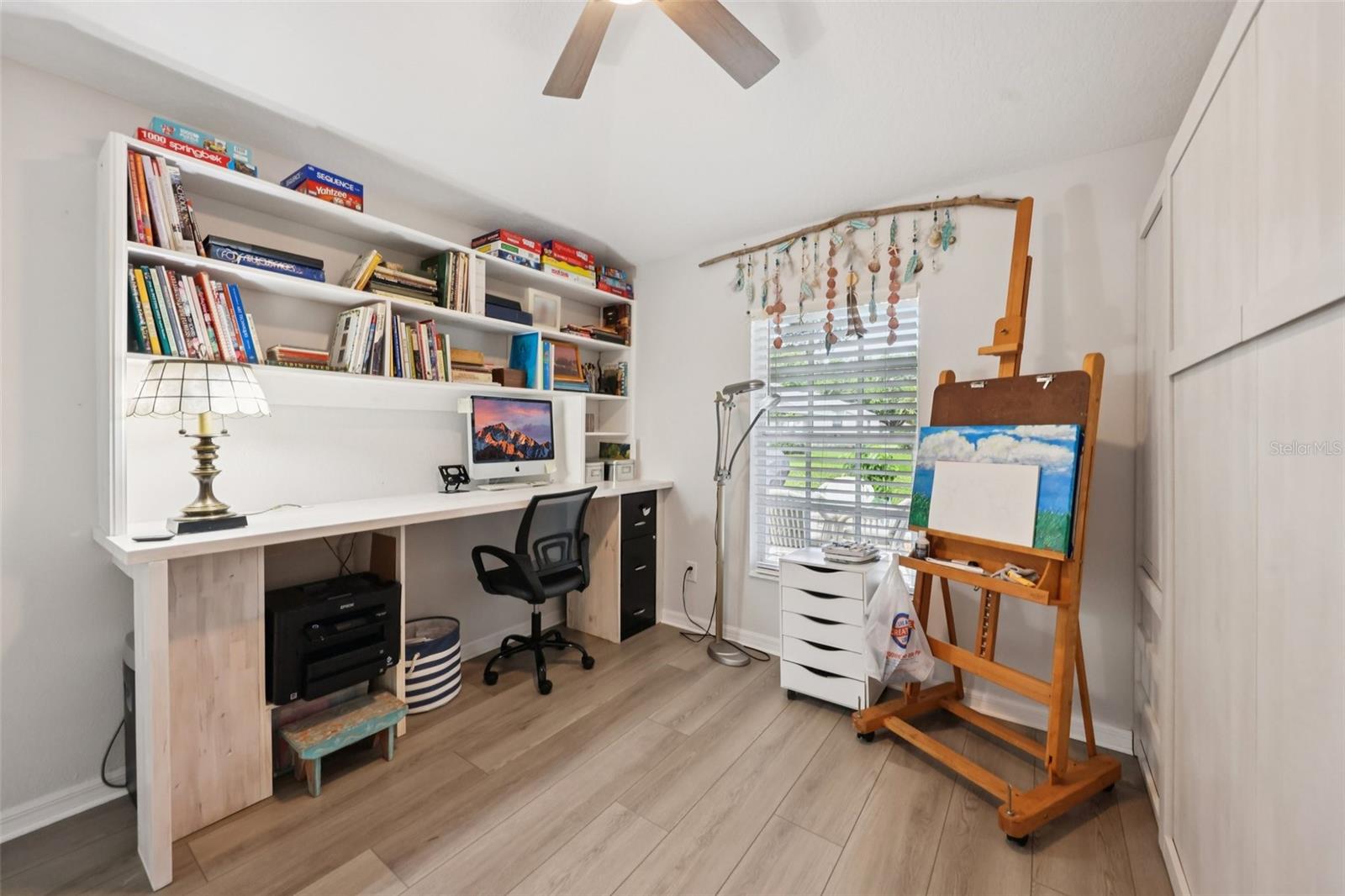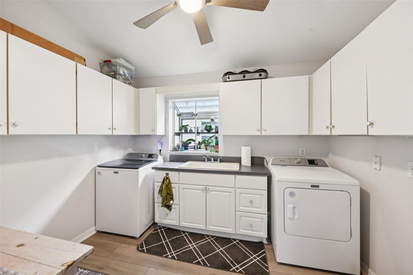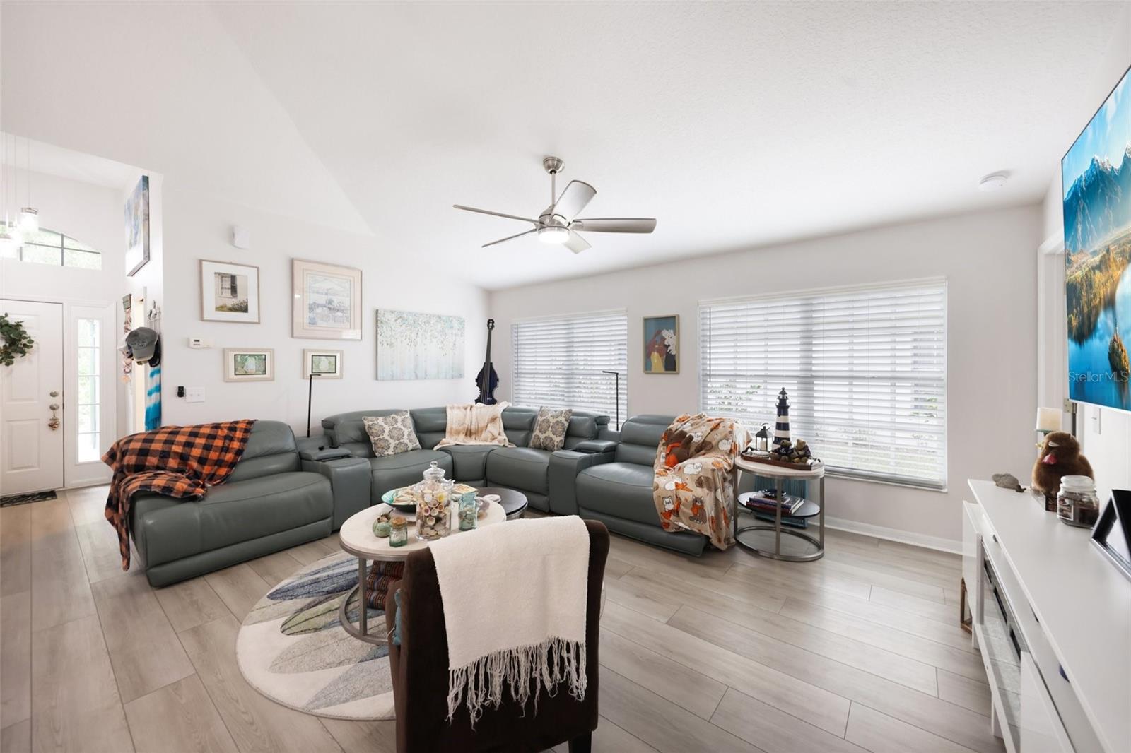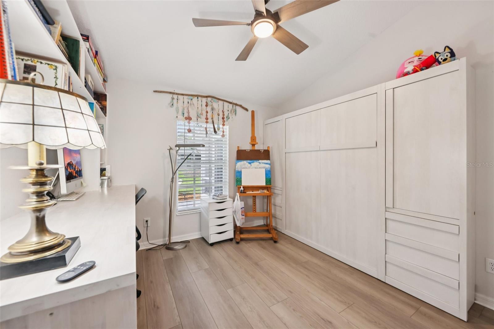 Like New Baytree 55 plus community home with open floor plan. This home has been totally updated with a redesigned kitchen that has an island with stone countertops that looks over the living room and dining room with all new appliances. New paint inside and out the home, waterproof luxury vinyl flooring throughout, new 200-amp electric panel, on demand electric tankless hot water heater, new ceiling fans with lights throughout, murphy bed with shelves and a built in desk in third bedroom, new window treatments throughout, laundry room with added storage cabinets and a new washer and dryer. Pavers have widened the driveway, made a front and back patio as well as a sidewalk leading to the back. New landscaping adds beauty and a greenhouse for that green thumb. The Seller has an assumable VA loan with a great interest rate. The home has new furniture and is being offered furnished if desired. The affordable HOA includes lawn mowing, irrigation, landscape trimming around the home, and power washing of the outside yearly. Amenities include greenspace for outdoor enjoyment, a club house with a pool, library, exercise room, pickle ball court and a great rec room where you can enjoy many activities which include water aerobics, multiple card games, and monthly dinners. It is close to the downtown entertainment district, lakes, shopping, and great dining choices. Come make this your piece of Paradise.
