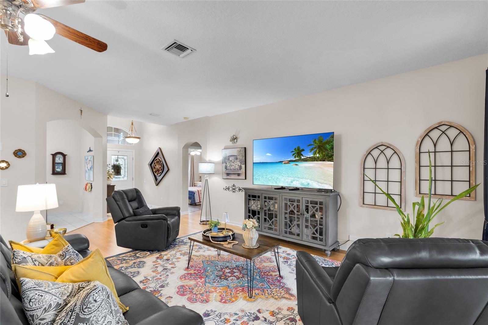Royal Harbor Community look at this well-maintained 3 Bedroom 2 Bathroom nestled on the shores of Lake Harris. The Kitchen has lots and lots of cabinets and counter space. The Livingroom is ideal for entertaining that leads to the Dining room area or the enclosed Lanai area.The Primary Suite features walk-in closet and dual sinks, The Two guest rooms and a second bathroom has plenty of space for visitors or hobbies. Enjoy also the front screened area I front of the home as well. The Community offers clubhouse, fitness center, walking trails, a fishing pier, and Boat/RV storage. Just minutes from Downtown Tavares(America's Seaplane City) with waterfront dining and plenty of shopping. Appliances all have a warranty. Roof 2023