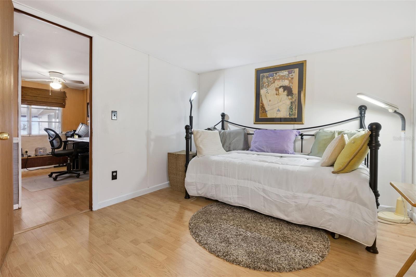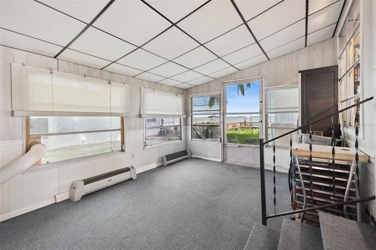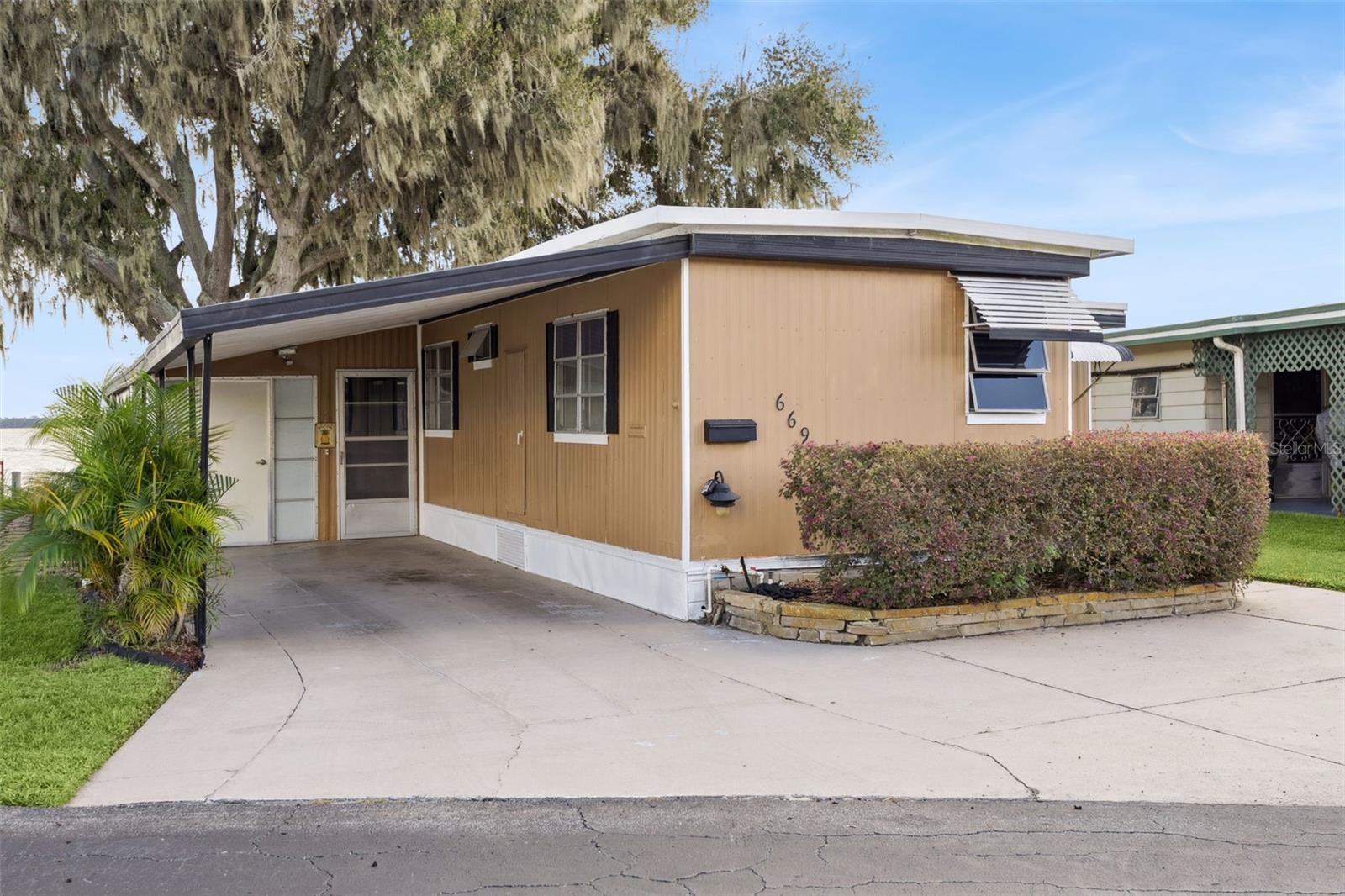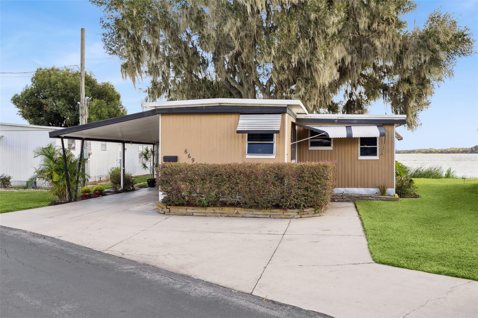 Welcome new forever home on Lake Dora! Peaceful waterfront living meets everyday comfort in this beautifully maintained 2-bedroom, 2-bathroom home with 1,044 sq ft of bright, open living space designed to capture panoramic lake views from nearly every angle. The spacious kitchen provides plenty of counter space for cooking and entertaining, while the open living and dining areas glow with natural light from sliding glass doors that frame the stunning waterfront. Additionally, you'll find a bonus home office space in the home, perfect for those working from home, to turn into a hobby room or anything else to suit your needs! Step into the Florida room, complete with heating and A/C, to enjoy the sunshine and lake breeze year-round, without the Florida heat or pests. Both bedrooms include ample storage, natural light and space to ensure everyone feels right at home in this cozy lakefront retreat. Outside, your personal dock with electricity and water invites endless days of boating, fishing, or simply relaxing by the water’s edge. Thoughtful upgrades include double-pane windows and an irrigation system. The community allows golf carts and features gas lines for built-in BBQs (included in utilities), plus HOA coverage for water, trash, and sewage to provide you added peace of mind. Perfectly situated near the Dora Canal, you’ll have easy access to Lake Dora, Lake Eustis, and Lake Harris, along with all the dining, recreation, and charm of nearby downtown Tavares. Experience lakeside living at its best in this amazing 55+ community, schedule your private showing TODAY!