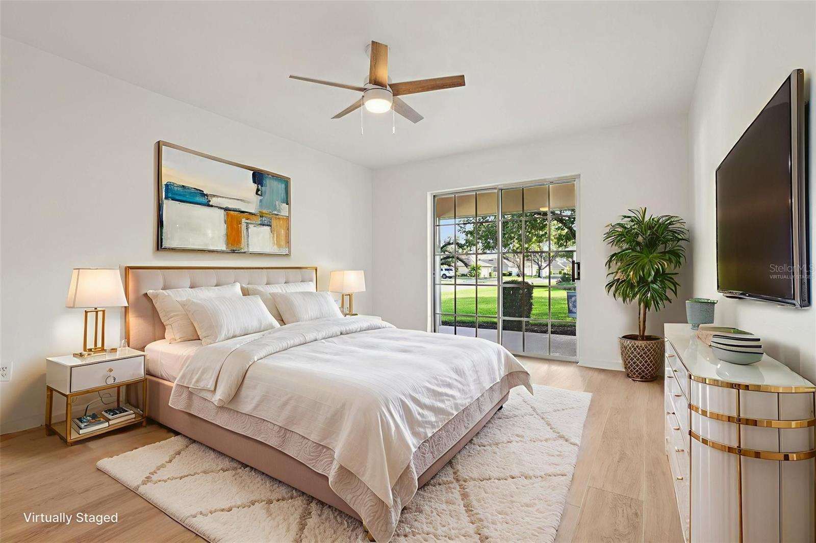 One or more photo(s) has been virtually staged. Experience the best of Florida living in this inviting home on a spacious corner lot in the desirable 55+ community of Baytree. Graceful oak trees, a circular driveway, and lush landscaping create a warm welcome. Inside, natural light and soaring vaulted ceilings enhance the open, flowing layout. New luxury vinyl plank flooring in soft, neutral tones and freshly painted interiors give the home a bright, modern feel. The thoughtfully designed kitchen features a cozy breakfast nook for easy mornings, while the adjacent dining room is ideal for entertaining. The open concept connects seamlessly to the family room and covered lanai, blending indoor and outdoor living for year-round enjoyment. The spacious owner’s suite is a private retreat with dual vanities, a walk-in shower, generous walk-in closet, and separate water closet. Two additional bedrooms, each with a walk-in closet, provides flexibility for guests, hobbies, or a home office. A separate laundry room and abundant storage add convenience. Recent updates include new ceiling fans, updated electrical and GFI outlets, smart thermostat, garbage disposal, water heater (2022), and roof (2018). At Baytree, everyday living feels like a getaway. The low-maintenance HOA covers lawn care, irrigation, landscaping, and annual exterior power washing, giving you more time to enjoy resort-style amenities, swimming, pickleball, fitness, and community gatherings at the clubhouse. Ideally located near downtown Tavares, you’ll be close to waterfront dining, boutique shopping, and lively entertainment. Whether you’re downsizing, wintering in the sunshine, or simply embracing a slower pace, 512 Juniper Way offers comfort, community, and carefree living.