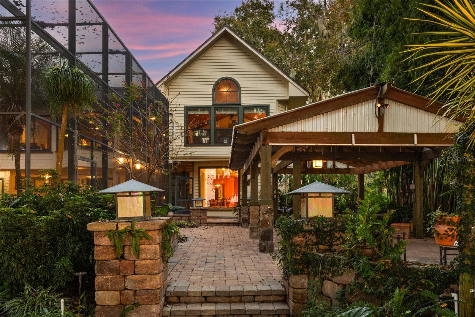 Experience breathtaking sunsets over Lake Dora, a prized gem of the Harris Chain of Lakes, from this exceptional luxury estate where over 120 feet of pristine shoreline set the stage for an elevated waterfront lifestyle. Set on approximately 0.76 acres within the impressive Squirrel Point community, the property blends elegance and tranquility in a setting designed for both beauty and relaxation. A private boathouse and dock with boat lift provide effortless access to the water, inviting spontaneous afternoons on the lake and memorable cruises with friends and family. Outdoor living is nothing short of extraordinary. A spacious screened-in lanai overlooks the lake and showcases a resort-style pool, hot tub, and fully equipped summer kitchen complete with a gas grill, smoker, sink, and refrigerator—ideal for entertaining or unwinding at the end of the day. Beyond the lanai, an expansive paver patio extends the outdoor experience with both a covered pavilion and open-air seating areas, creating versatile gathering spaces for everything from lively celebrations to quiet evenings by the water. Lush, mature landscaping envelops the property, enhancing privacy and transforming the grounds into a tranquil retreat that feels worlds away while remaining conveniently connected. Designed to maximize the views, the main living spaces are elevated on the second floor, where soaring ceilings and expansive windows in the living and dining rooms frame the shimmering waters of Lake Dora. The living room is anchored by a wood-burning fireplace, adding warmth and character to the refined setting. The open kitchen is both stylish and functional, with ample space for a breakfast table—perfect for relaxed mornings with the lake as your backdrop. The home features a thoughtful and flexible layout with two primary suites—one upstairs and one downstairs—each serving as a private retreat. The downstairs primary bathroom was remodeled in 2022, as was the bathroom in one of the additional bedroom suites. Three additional bedrooms, an office, and multiple gathering spaces provide comfort and versatility for family and guests alike. A spiral staircase connects the upstairs primary suite to an entertainment room below, complete with a wet bar and full bathroom, and offering direct access to the lanai and pool area—an ideal setting for hosting or relaxed evenings by the water. Practical luxury continues with a 22kW Generac whole-house generator, three recently replaced A/C units, and three water heaters, all replaced in 2025—delivering peace of mind alongside modern efficiency. By boat, enjoy an approximately 10-minute cruise to downtown Tavares, “America’s Seaplane City,” or to the charming historic streets of Mount Dora, celebrated for its exceptional dining, boutique shopping, and year-round festivals. Closer to home, Deer Island Golf Course—a privately owned, 18-hole championship course—is located approximately 3½ miles away and easily accessible by golf cart. Convenient access to Interstate 429 allows for effortless travel to Orlando’s business, shopping, and entertainment districts, as well as Florida’s east coast beaches. This is a home that must be experienced in person—schedule your private tour today.