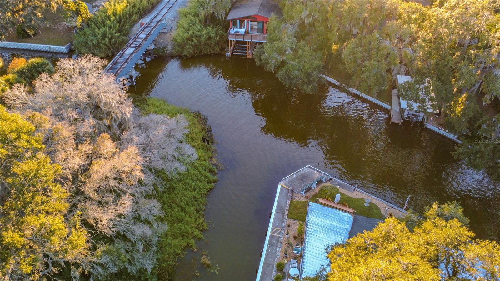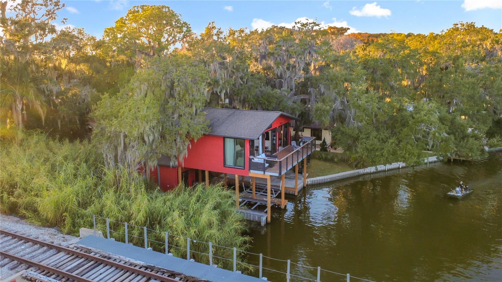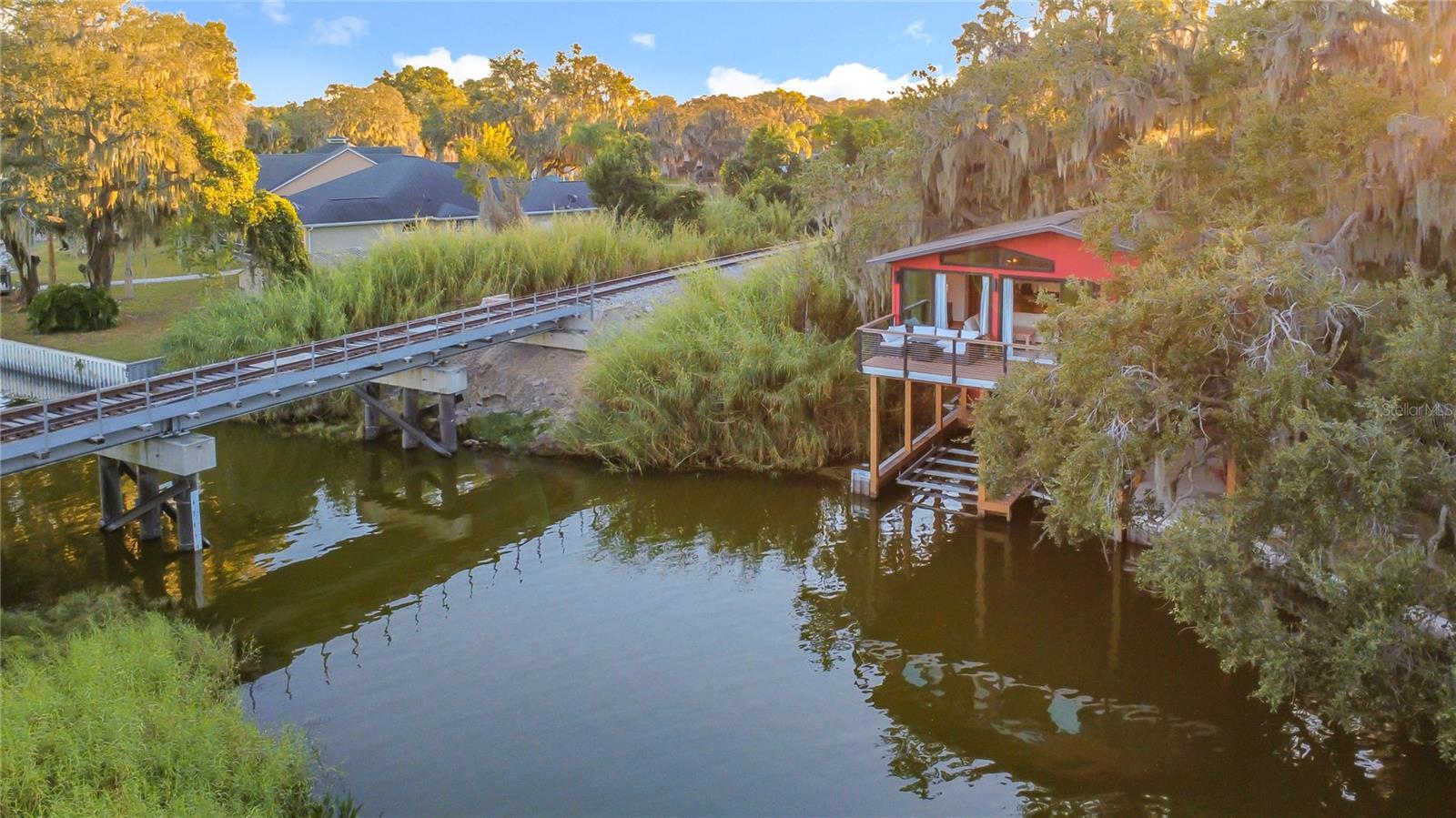 One or more photo(s) has been virtually staged. LOCATION!!!!! - A beautifully appointed 2 Bedroom 1.5 Bath home located on the Historic Dora Canal just feet away from Lake Dora a part of the Harris Chain of Lakes. The Dora Canal is a very popular 1.2 miles of Florida nature that links Lake Eustis and Lake Dora. This house was built in 2016 and modeled after the original home that was here on this property. Breathtaking views can be enjoyed from inside the house as well as the 30' balcony which provides plenty of room for watching nature plus amazing sunrises over Lake Dora. Balcony access is available from the primary bedroom as well as the great room through sliding glass doors. The ground floor of the house boast an 8X8 workshop, 1/2 bathroom and indoor laundry. Two boatlifts equipped with electric motors and aluminum cradles to lift your boats out of the water and an 8X30 concreted and covered patio.