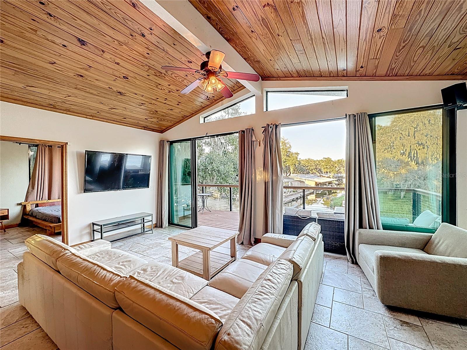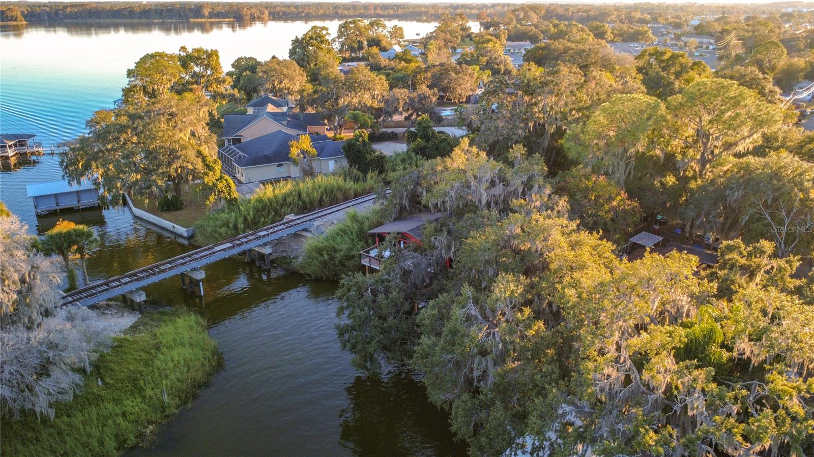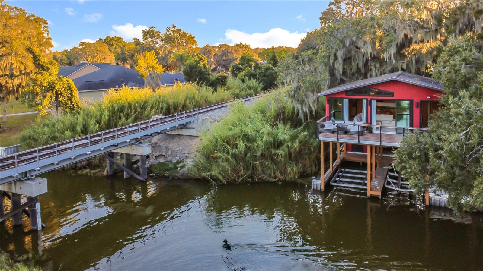 One or more photo(s) has been virtually staged. LOCATION!!!!! - A beautifully appointed 2 Bedroom 1.5 Bath home located on the Historic Dora Canal just feet away from Lake Dora a part of the Harris Chain of Lakes. The Dora Canal is a very popular 1.2 miles of Florida nature that links Lake Eustis and Lake Dora. This house was built in 2016 and modeled after the original home that was here on this property. Breathtaking views can be enjoyed from inside the house as well as the 30' balcony which provides plenty of room for watching nature plus amazing sunrises over Lake Dora. Balcony access is available from the primary bedroom as well as the great room through sliding glass doors. The ground floor of the house boast an 8X8 workshop, 1/2 bathroom and indoor laundry. Two boatlifts equipped with electric motors and aluminum cradles to lift your boats out of the water and an 8X30 concreted and covered patio.
